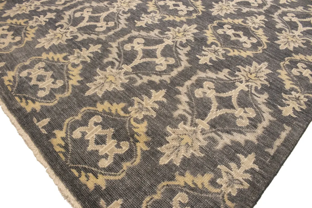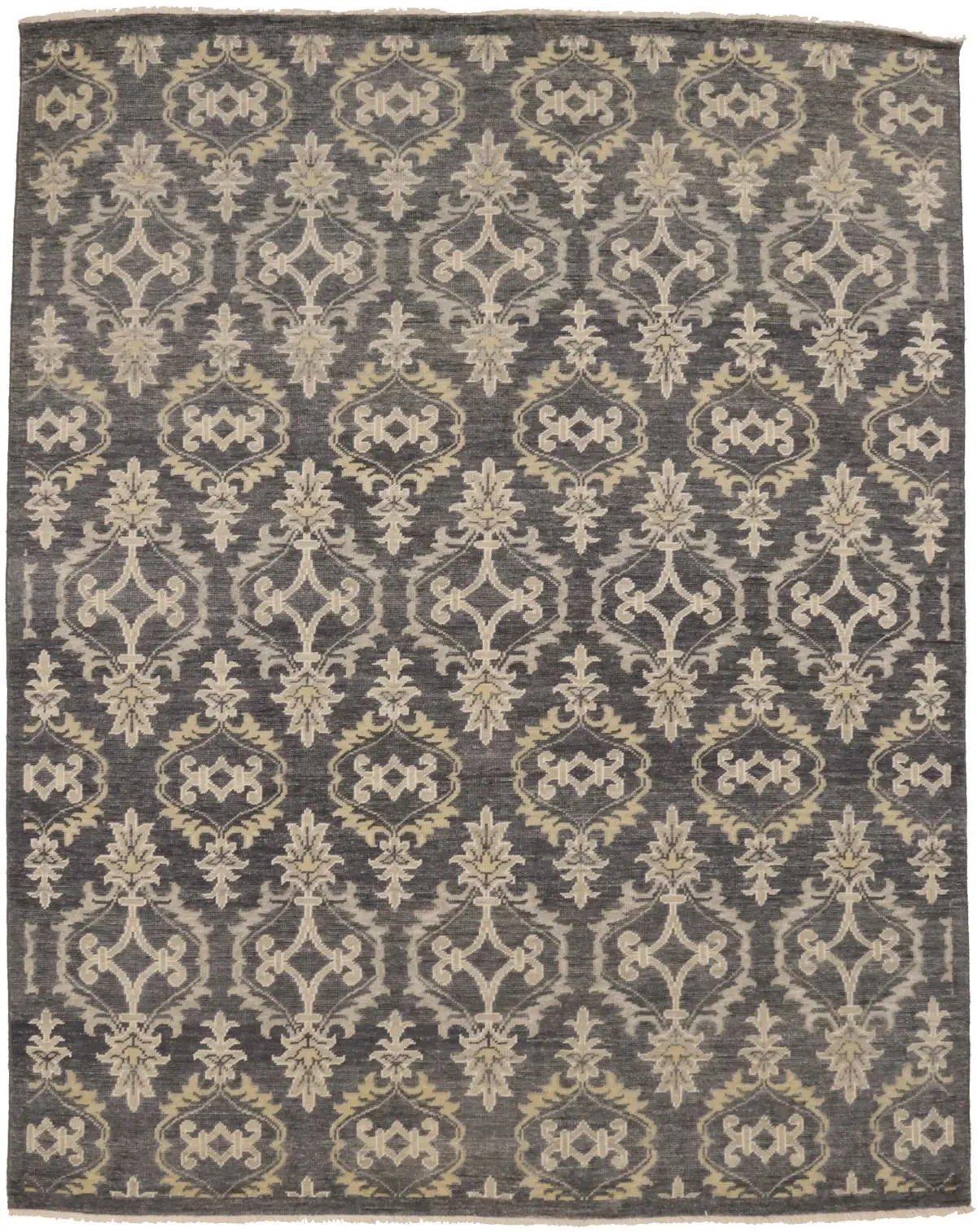 This authentic 8X10 gray new Oriental rug was crafted by the hands of skilled weavers enthused by a variety of lovely artistic designs, to recreate the aged look of the unique piece with a richness of color and beautifully elaborated background field. What set this vintage style Oriental area rug from the others are the material and dye used (wool pile and cotton foundation), knot count, ancient designs, fantastic grades, and its regional historical connection: it has deep roots, from the story of the people who produced it to the meaning of the symbols and colors displayed across its canvas that have been praised for centuries. This Indian home décor carpet will be completely cozy and inviting that never will go out of style! Also, this Oriental rug would be among your most valuable treasures, it is a great investment that increase in value over time, and it will last for generations because was woven with high-quality, all-natural wool. Environmentally friendly, opulent yet affordable; this rug will give you a thorough amount of character to help define your living space with sophistication and warmth that will capture the eyes and attention of your audience (homeowners, designers, decorators, family and friends). OT-6814