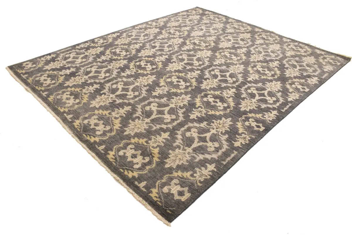 Handmade 8X10 gray Oriental rug made with vegetable dyes (fine wool pile and cotton foundation), superior knot count, and alluring ancient designs. This Oriental rug never will go out of style and would be among your most valuable treasures.