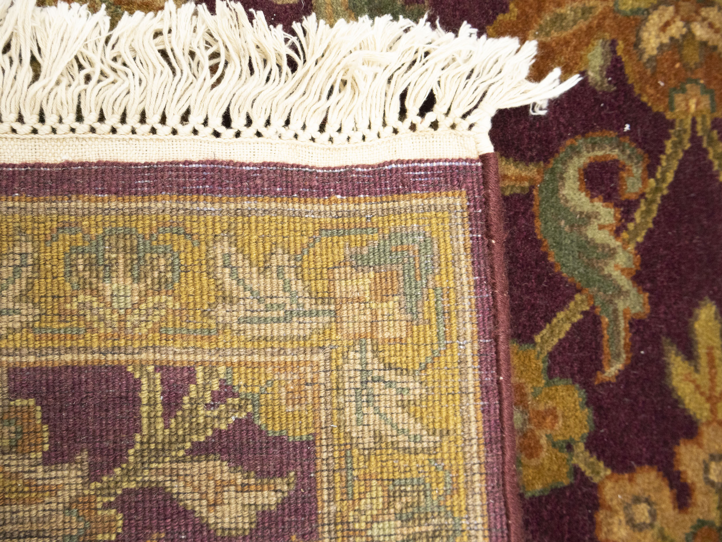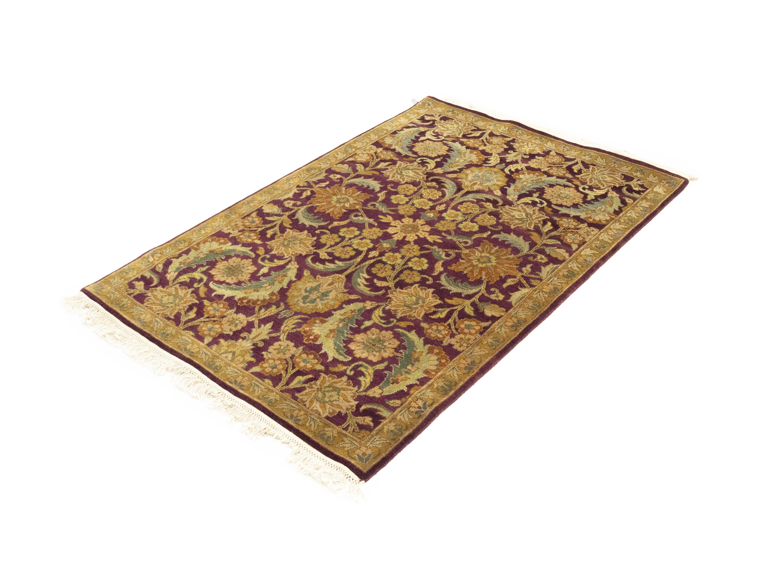 Handmade 4X6 burgundy oriental rug made with vegetable dyes (fine wool pile and cotton foundation), exceptional knot count, and appealing ancient designs. This Oriental rug never will go out of style and would be among your most valuable treasures.