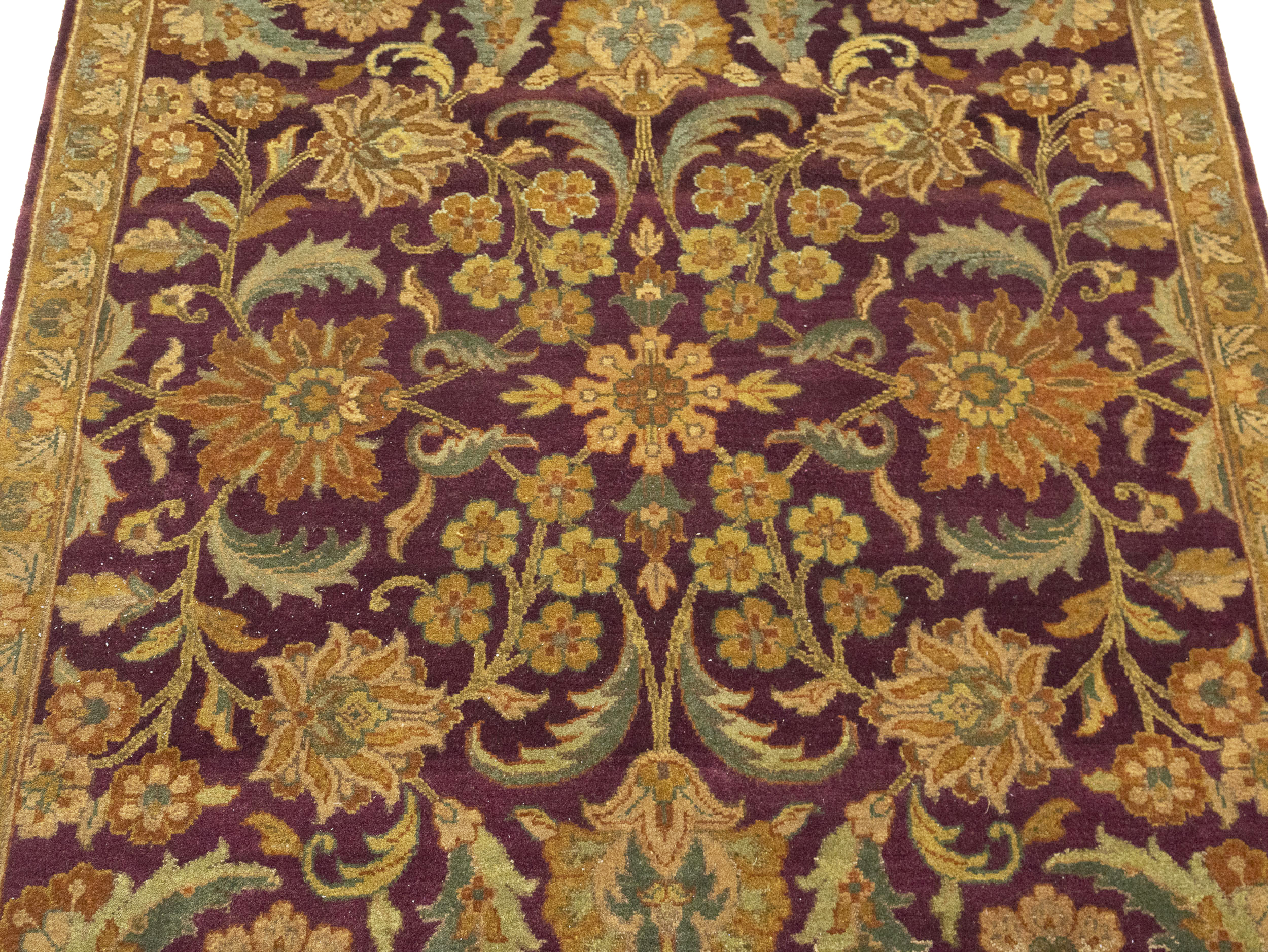 This authentic 4X6 burgundy new Oriental rug was crafted by the hands of skilled weavers enthused by a variety of lovely artistic designs, to recreate the aged look of the unique piece with a richness of color and beautifully elaborated background field. What set this vintage style Oriental area rug from the others are the material and dye used (wool pile and cotton foundation), knot count, ancient designs, fantastic grades, and its regional historical connection: it has deep roots, from the story of the people who produced it to the meaning of the symbols and colors displayed across its canvas that have been praised for centuries. This Indian home décor carpet will be completely cozy and inviting that never will go out of style! Also, this Oriental rug would be among your most valuable treasures, it is a great investment that increase in value over time, and it will last for generations because was woven with high-quality, all-natural wool. Environmentally friendly, opulent yet affordable; this rug will give you a thorough amount of character to help define your living space with sophistication and warmth that will capture the eyes and attention of your audience (homeowners, designers, decorators, family and friends).