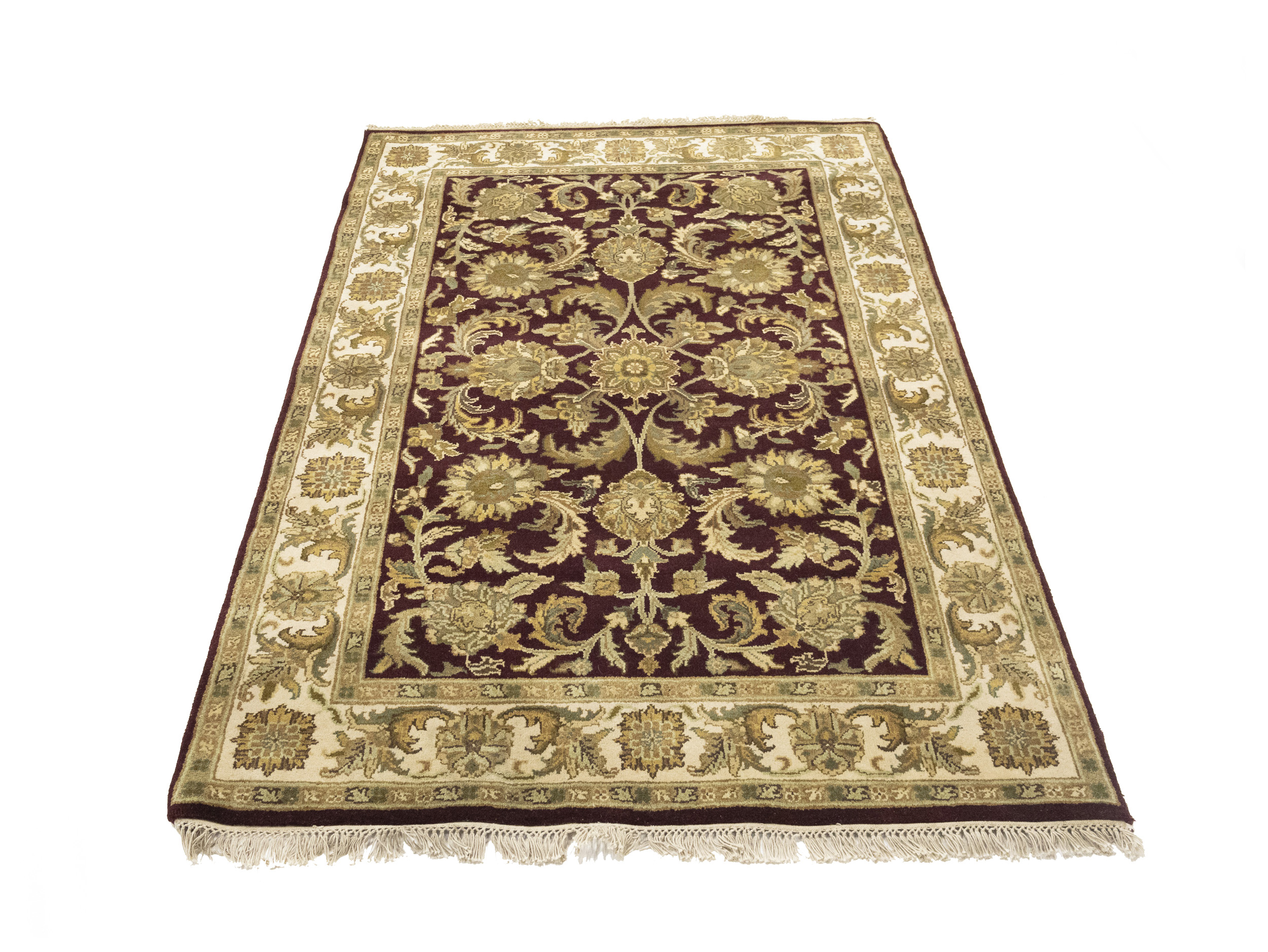 Handmade 4X6 burgundy oriental rug made with vegetable dyes (fine wool pile and cotton foundation), exceptional knot count, and appealing ancient designs. This Oriental rug never will go out of style and would be among your most valuable treasures.