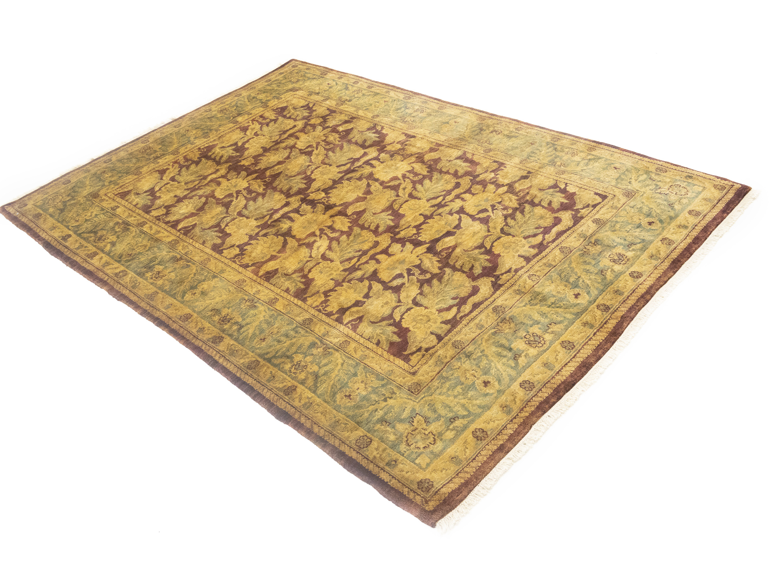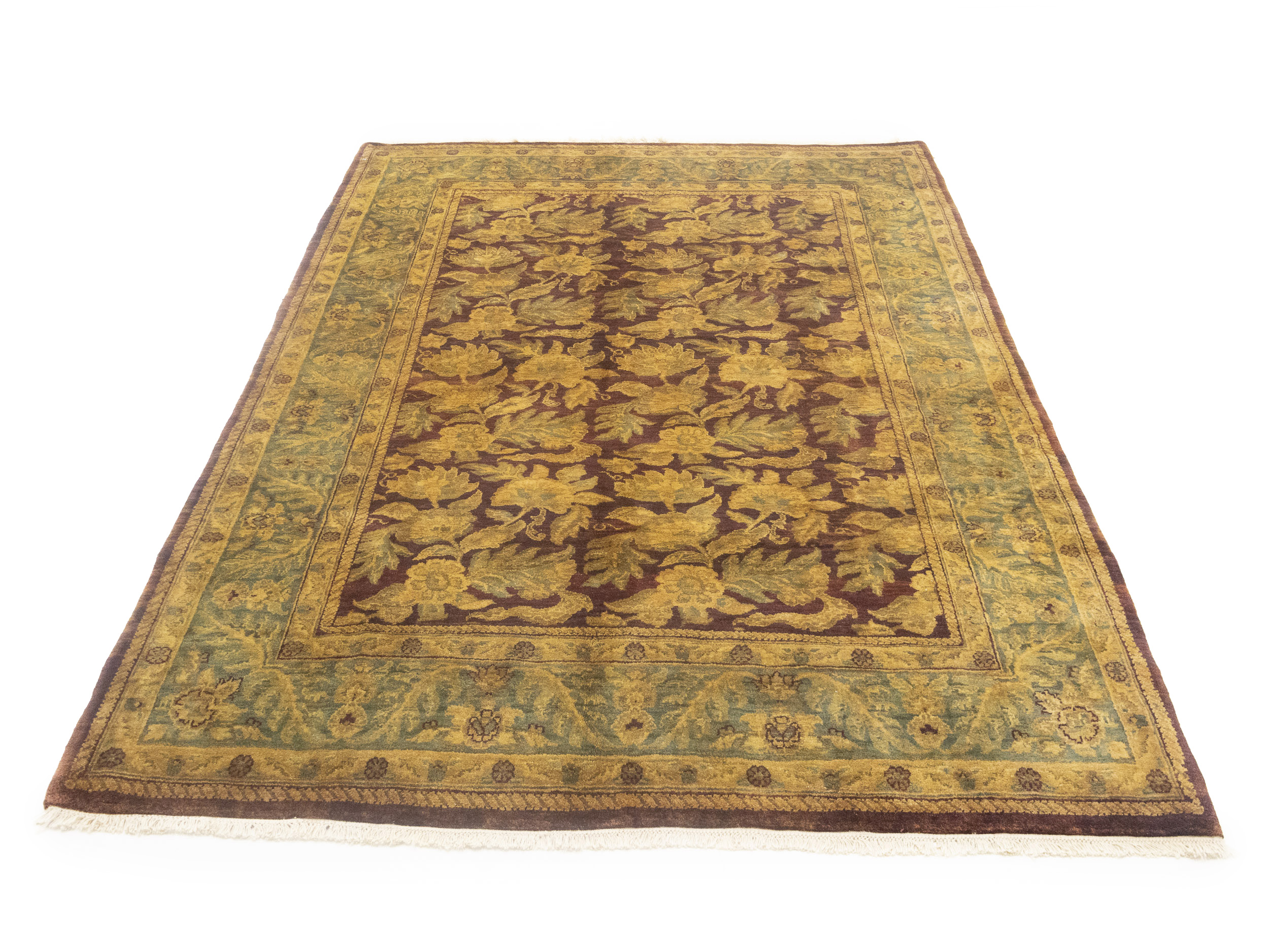 This authentic 6X9 Burgundy new Oriental rug was crafted by the hands of skilled weavers enthused by a variety of lovely artistic designs, to recreate the aged look of the unique piece with a richness of color and beautifully elaborated background field. What set this vintage style Oriental area rug from the others are the material and dye used (wool pile and cotton foundation), knot count, ancient designs, fantastic grades, and its regional historical connection: it has deep roots, from the story of the people who produced it to the meaning of the symbols and colors displayed across its canvas that have been praised for centuries. This Indian home décor carpet will be completely cozy and inviting that never will go out of style! Also, this Oriental rug would be among your most valuable treasures, it is a great investment that increase in value over time, and it will last for generations because was woven with high-quality, all-natural wool. Environmentally friendly, opulent yet affordable; this rug will give you a thorough amount of character to help define your living space with sophistication and warmth that will capture the eyes and attention of your audience (homeowners, designers, decorators, family and friends).