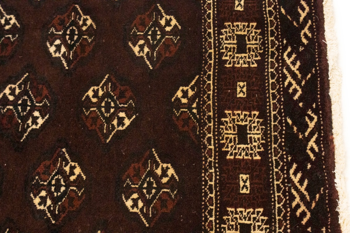 This authentic 3'6X6'4 burgundy vintage Persian rug was masterly knotted by the hands of weavers inspired by a variety of wonderful artistic designs, to recreate the aged look of the original piece with a richness of color and intricate patterned background field. What set this tribal Oriental area rug from the others are the material and dye used (wool pile and cotton foundation), knot count, antique designs, fantastic grades, and its regional historical connection: it has deep roots, from the story of the people who produced it to the meaning of the symbols and colors displayed across its canvas that have been praised for centuries. This home décor carpet will be completely cozy and inviting that never will go out of style! Also, this Oriental rug would be among your most valuable treasures, it is a great investment that accrues value over time, and it will last for generations because was woven with high-quality, all-natural wool; it won’t rip, tear, or shed. Environmentally friendly, opulent yet affordable; this Persian rug will give you a thorough amount of character to help define your living space with luxury and warmth that will capture the eyes and attention of your audience (homeowners, designers, decorators, family and friends). RT-1858