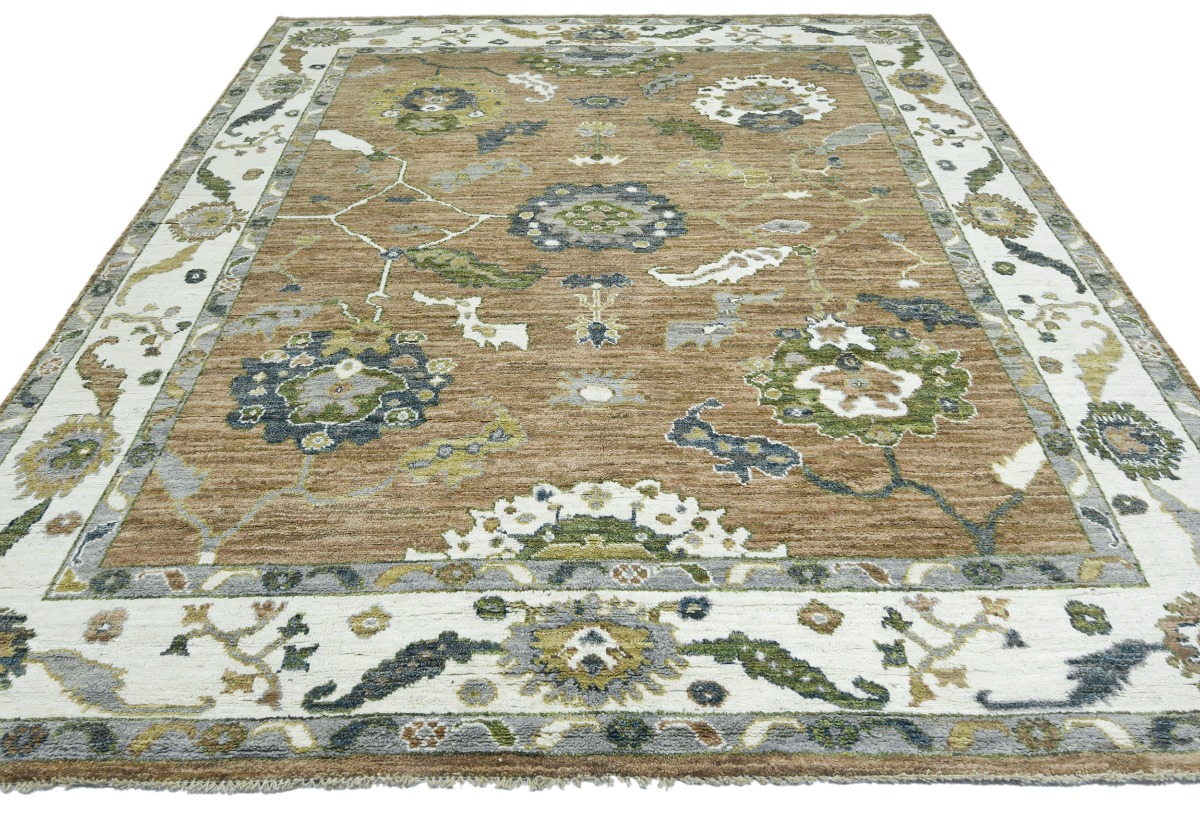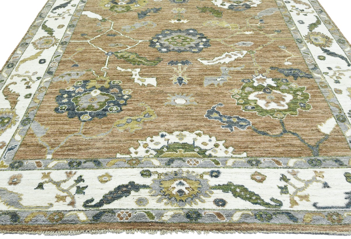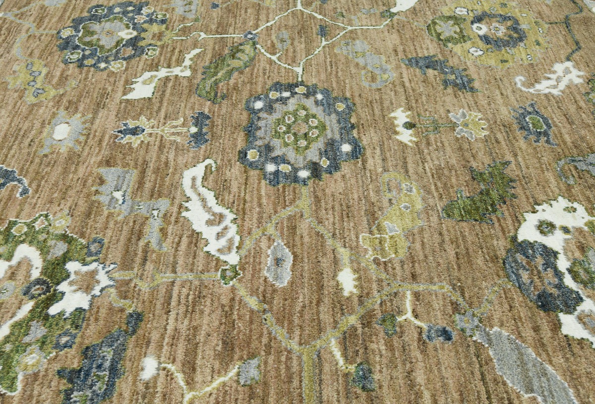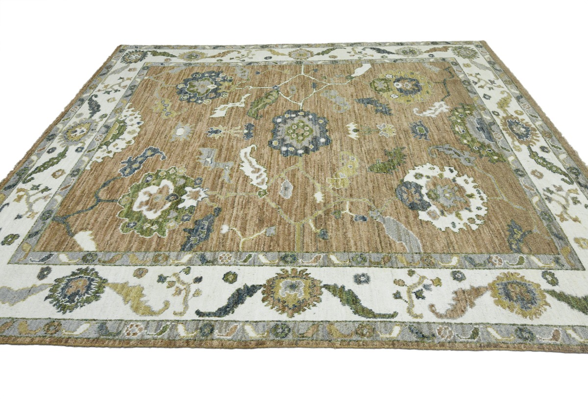 Caramel Brown Floral Oushak Peshawar 8'5X9'8 Pakistan Oriental Rug