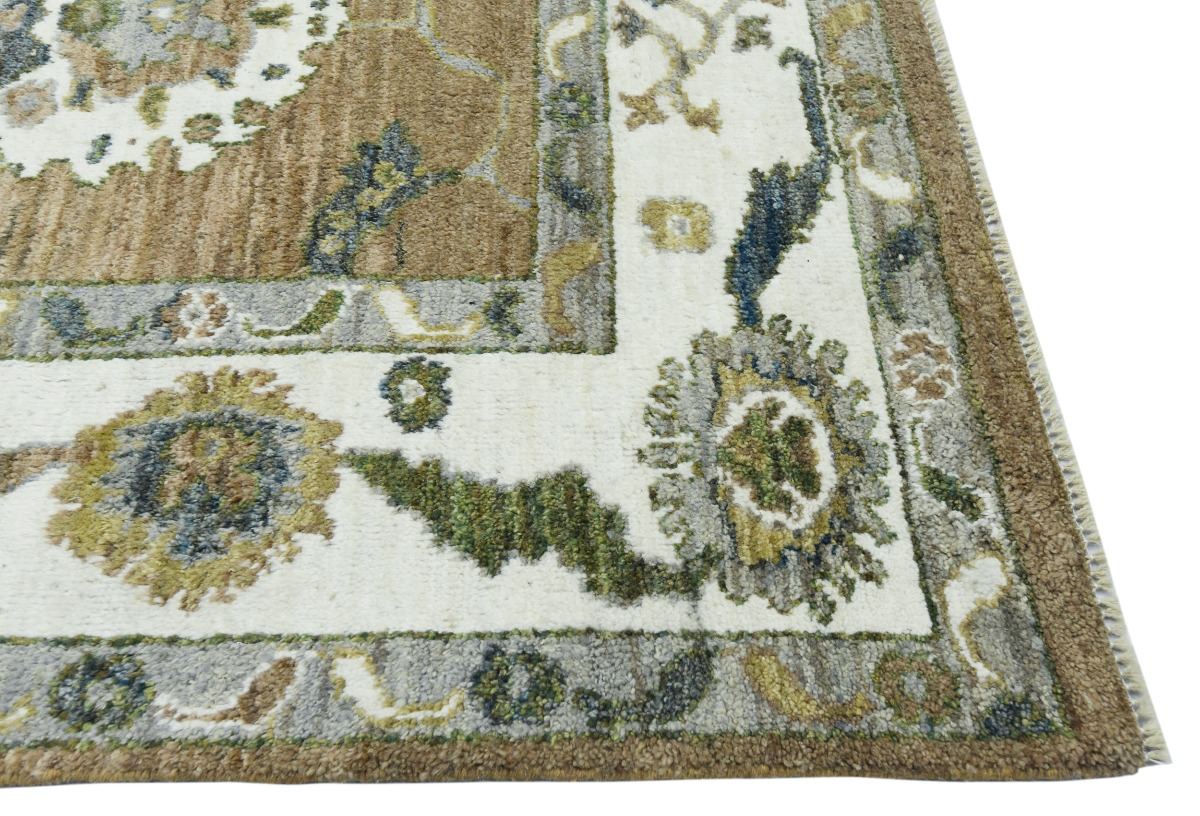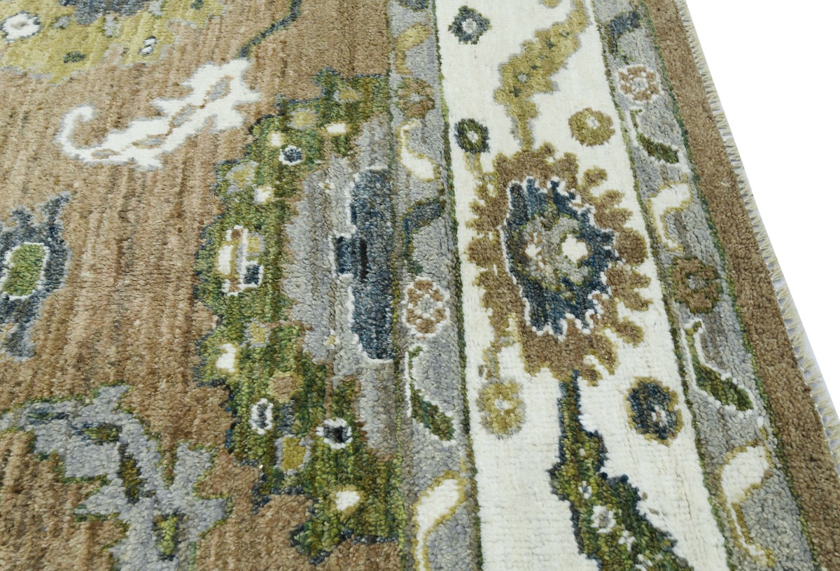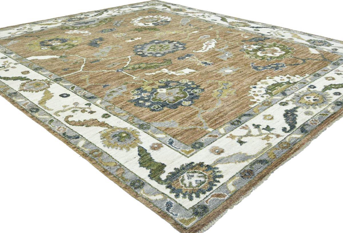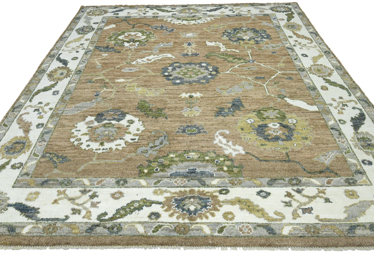 Caramel Brown Floral Oushak Peshawar 8'5X9'8 Pakistan Oriental Rug