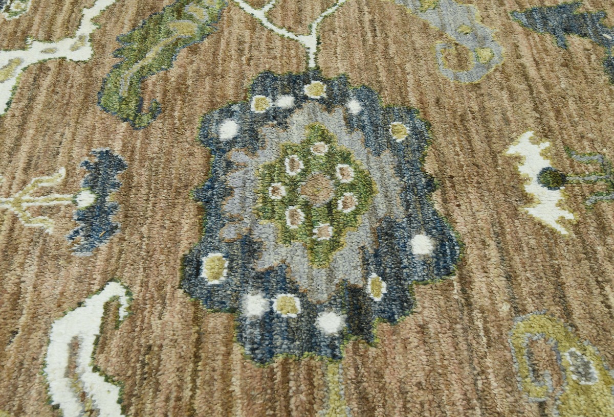 This authentic 8'5X9'8 brown new Oriental rug was crafted by the hands of skilled weavers enthused by a variety of lovely artistic designs, to recreate the aged look of the unique piece with a richness of color and beautifully elaborated background field. What set this vintage style Oriental area rug from the others are the material and dye used (wool pile and cotton foundation), knot count, ancient designs, fantastic grades, and its regional historical connection: it has deep roots, from the story of the people who produced it to the meaning of the symbols and colors displayed across its canvas that have been praised for centuries. This Indian home décor carpet will be completely cozy and inviting that never will go out of style! Also, this Oriental rug would be among your most valuable treasures, it is a great investment that increase in value over time, and it will last for generations because was woven with high-quality, all-natural wool. Environmentally friendly, opulent yet affordable; this rug will give you a thorough amount of character to help define your living space with sophistication and warmth that will capture the eyes and attention of your audience (homeowners, designers, decorators, family and friends). RT-5374