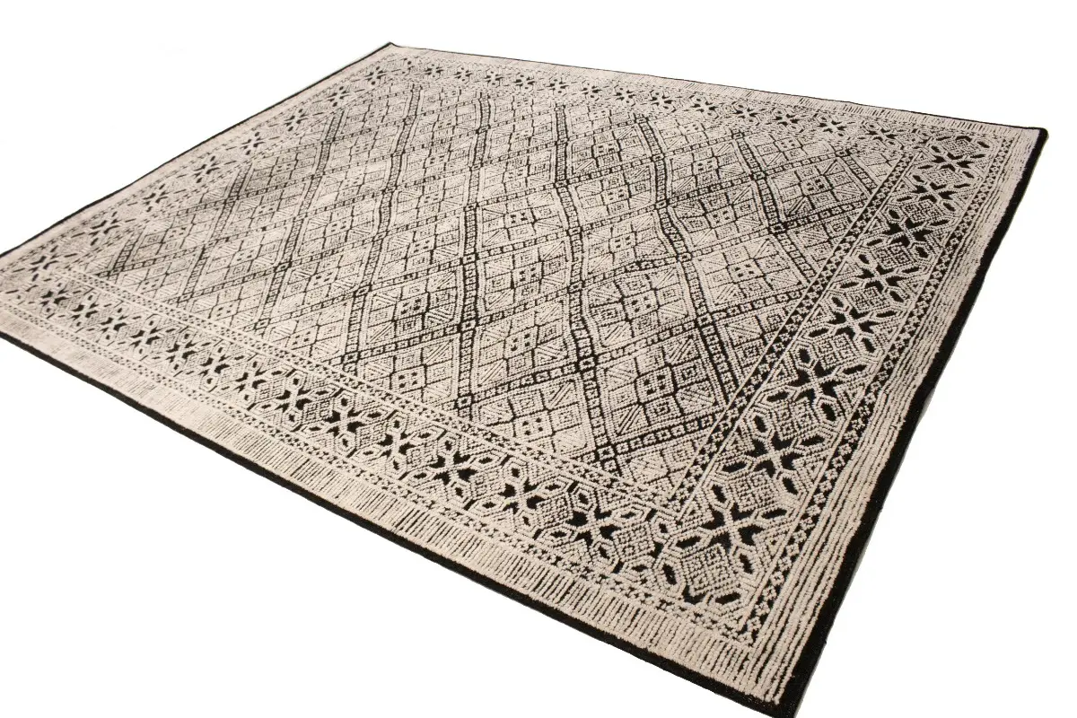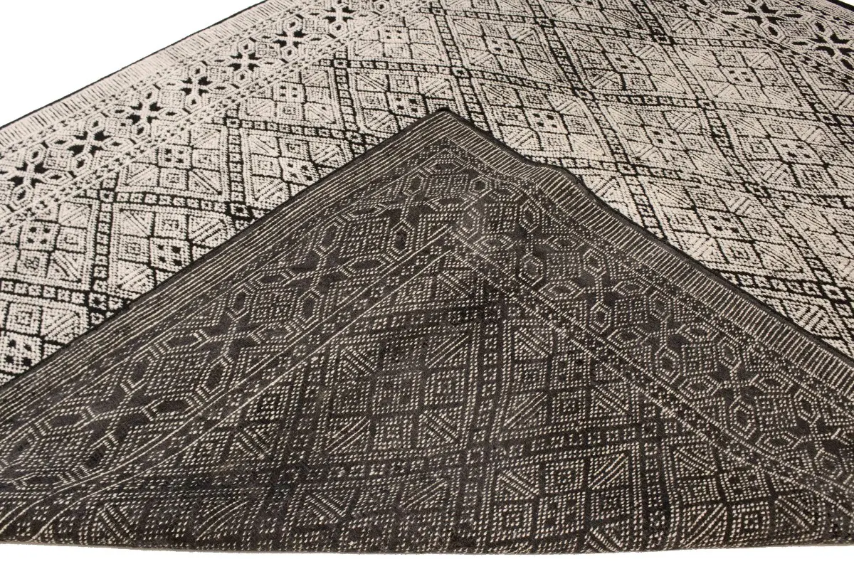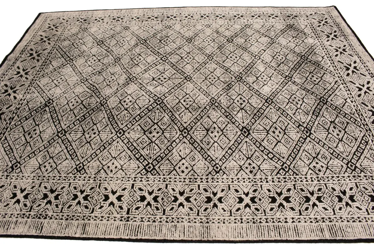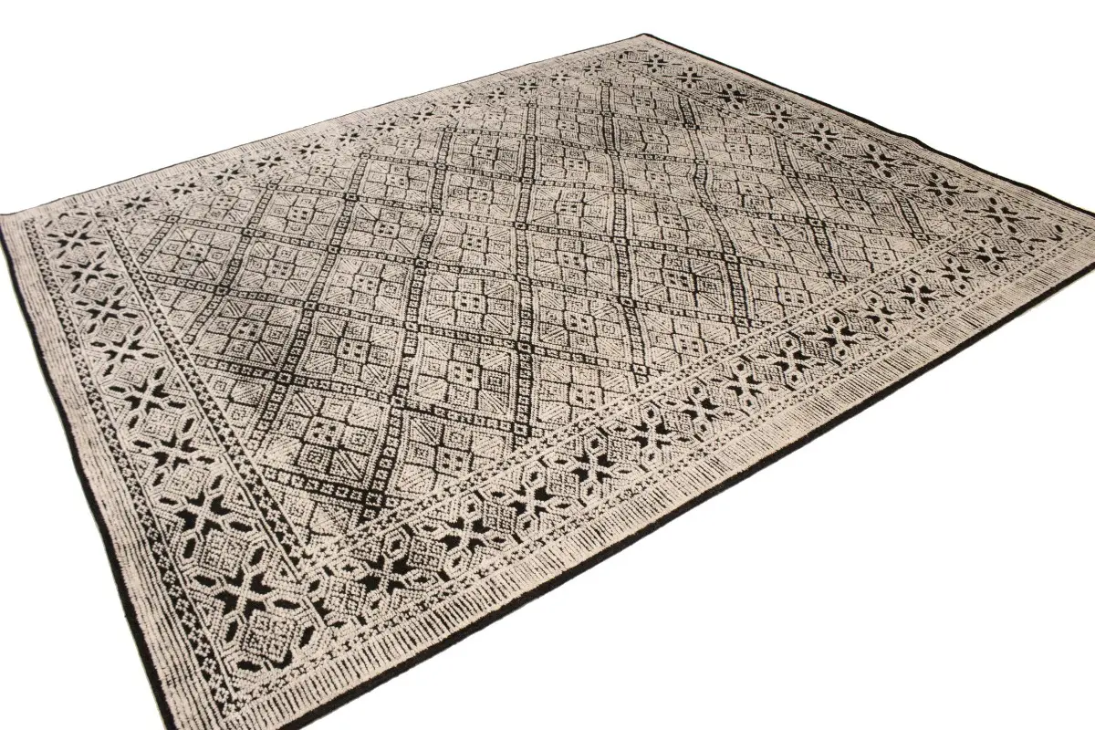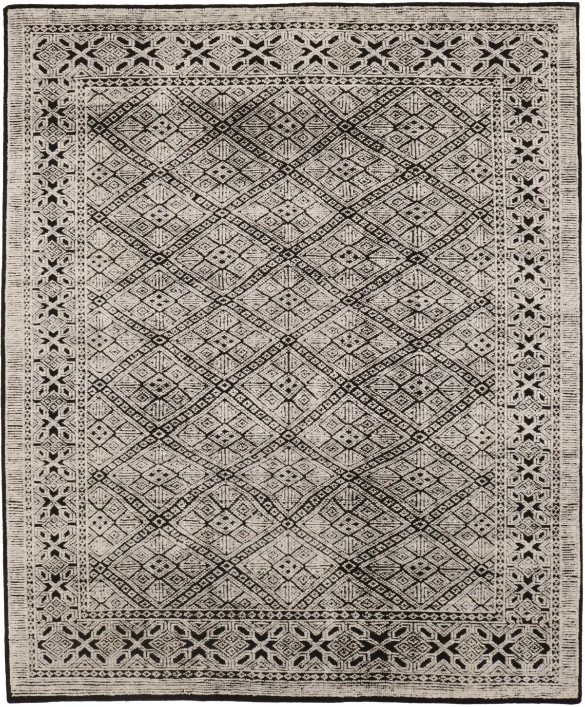 Charcoal & Cream Geometric 8X10 Oriental Modern Rug