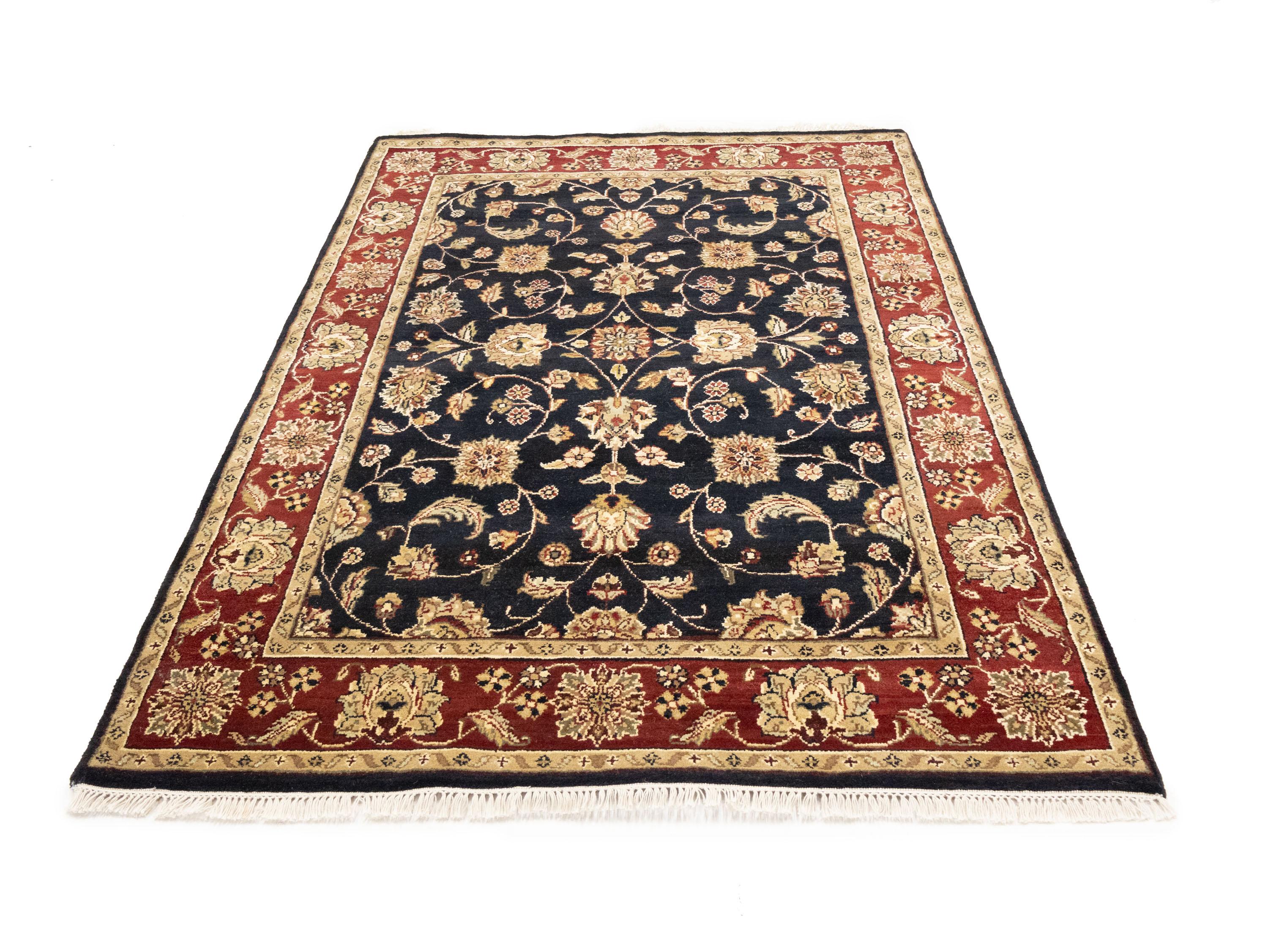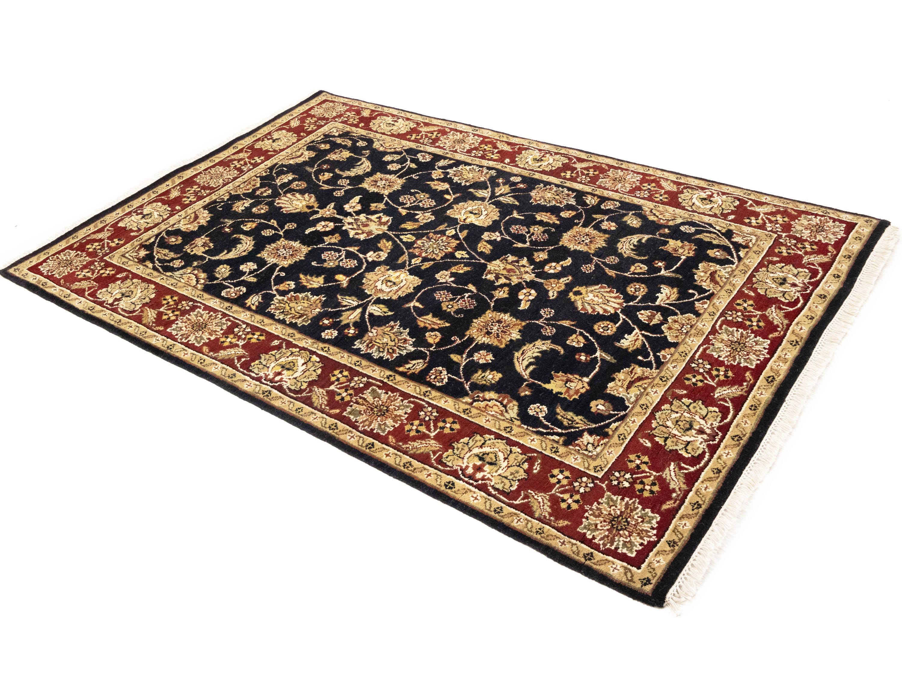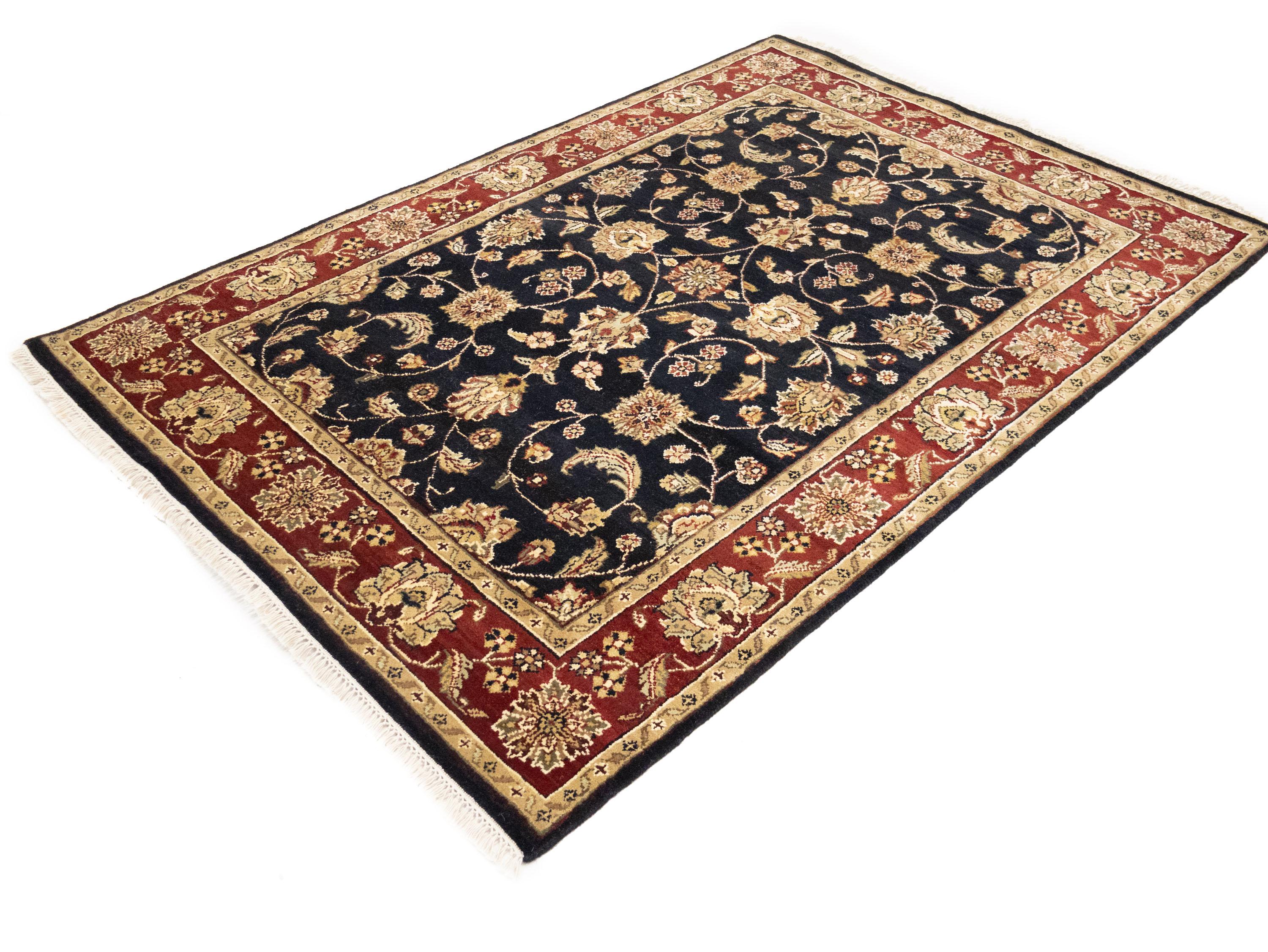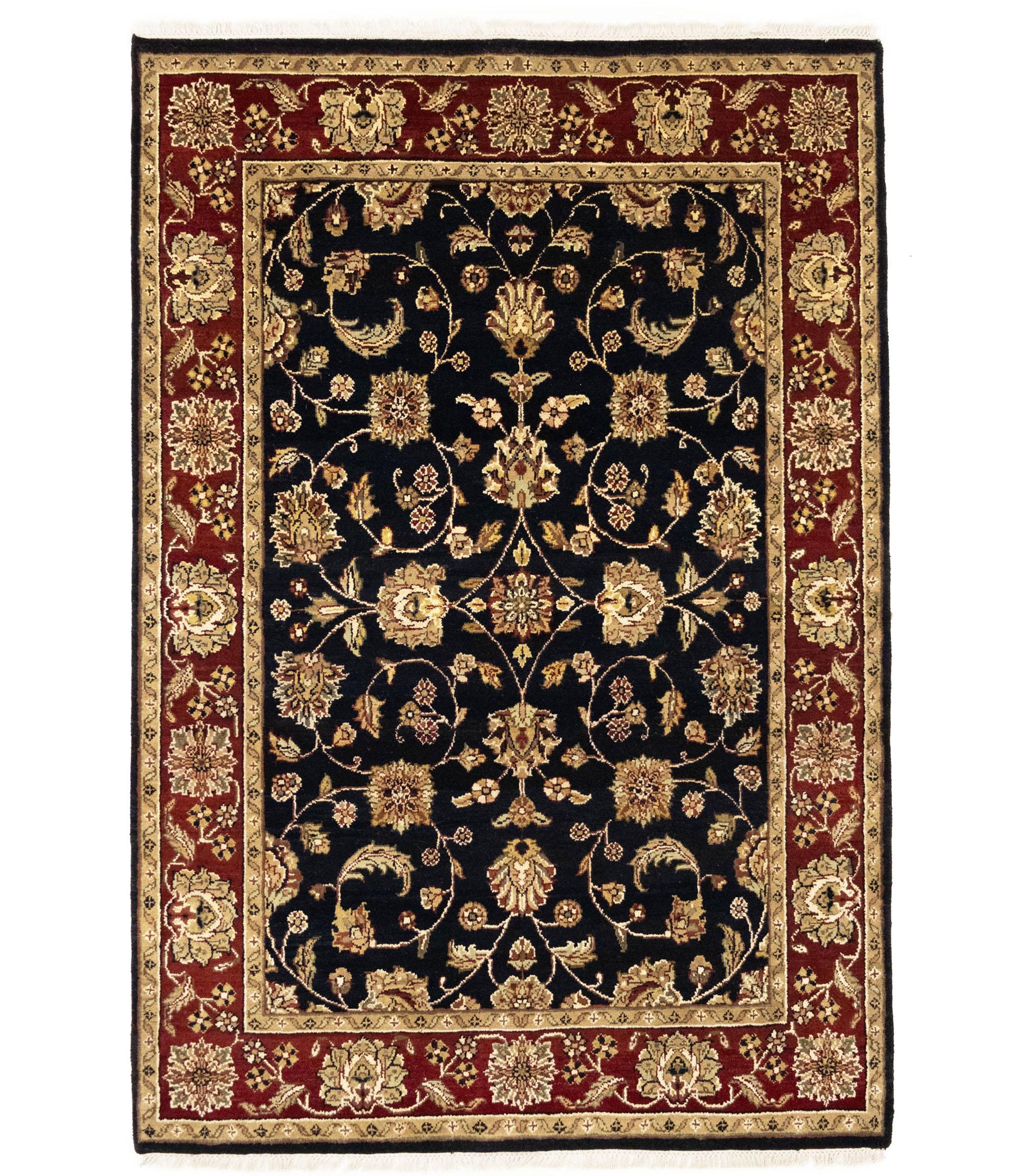 Charcoal Floral Traditional 5X7 Indo-Kashan Oriental Rug