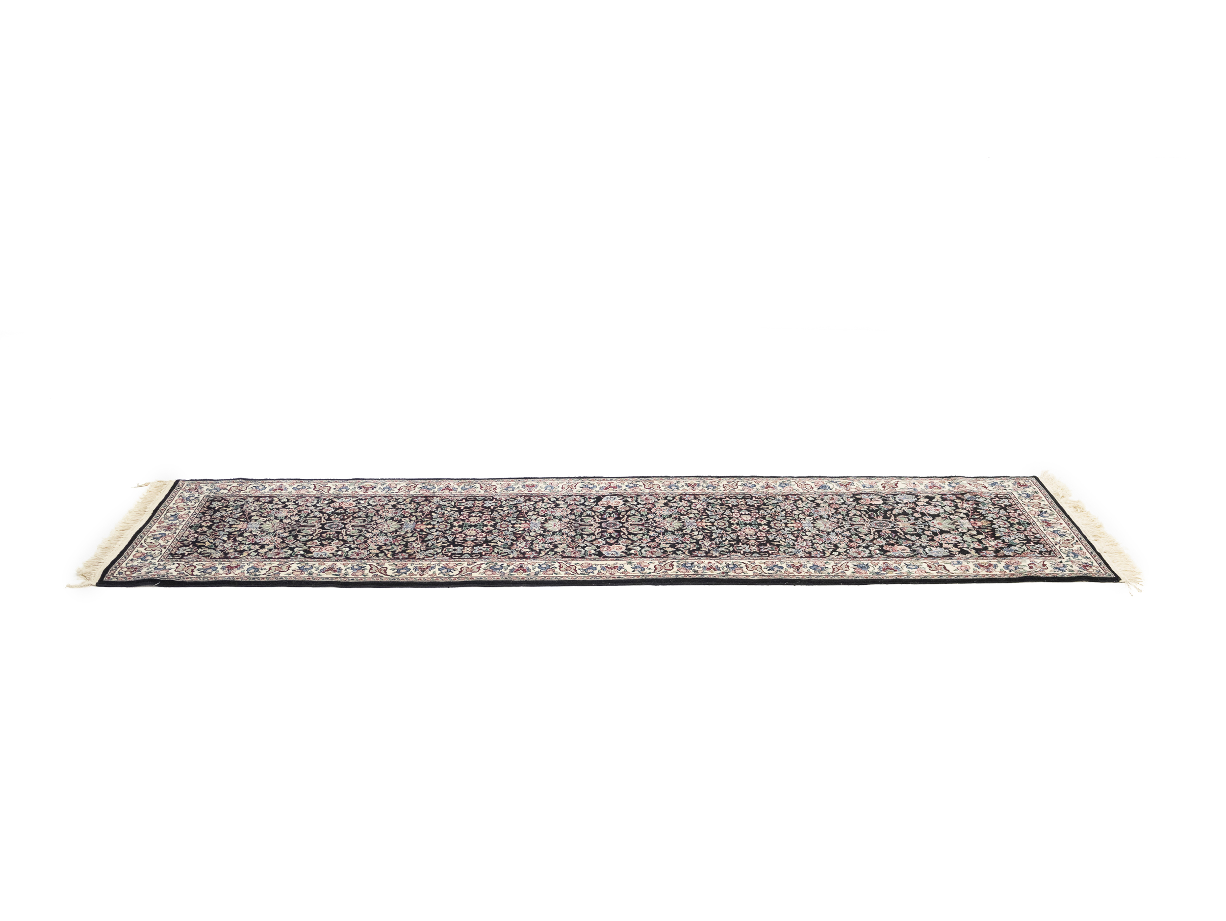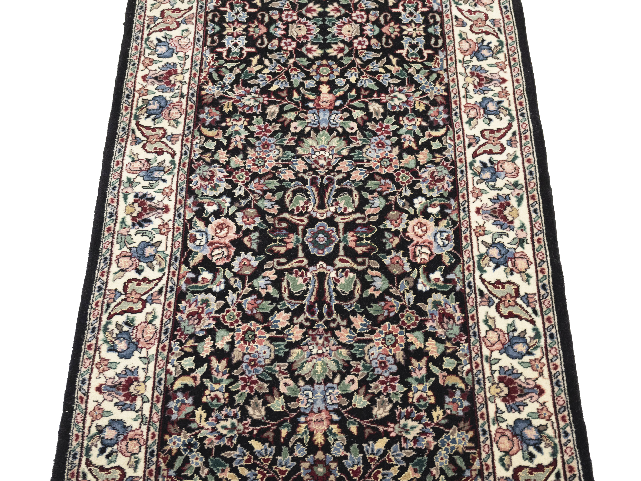 Charcoal Floral Tribal 2'6X9'9 Indo-Kashan Oriental Runner Rug