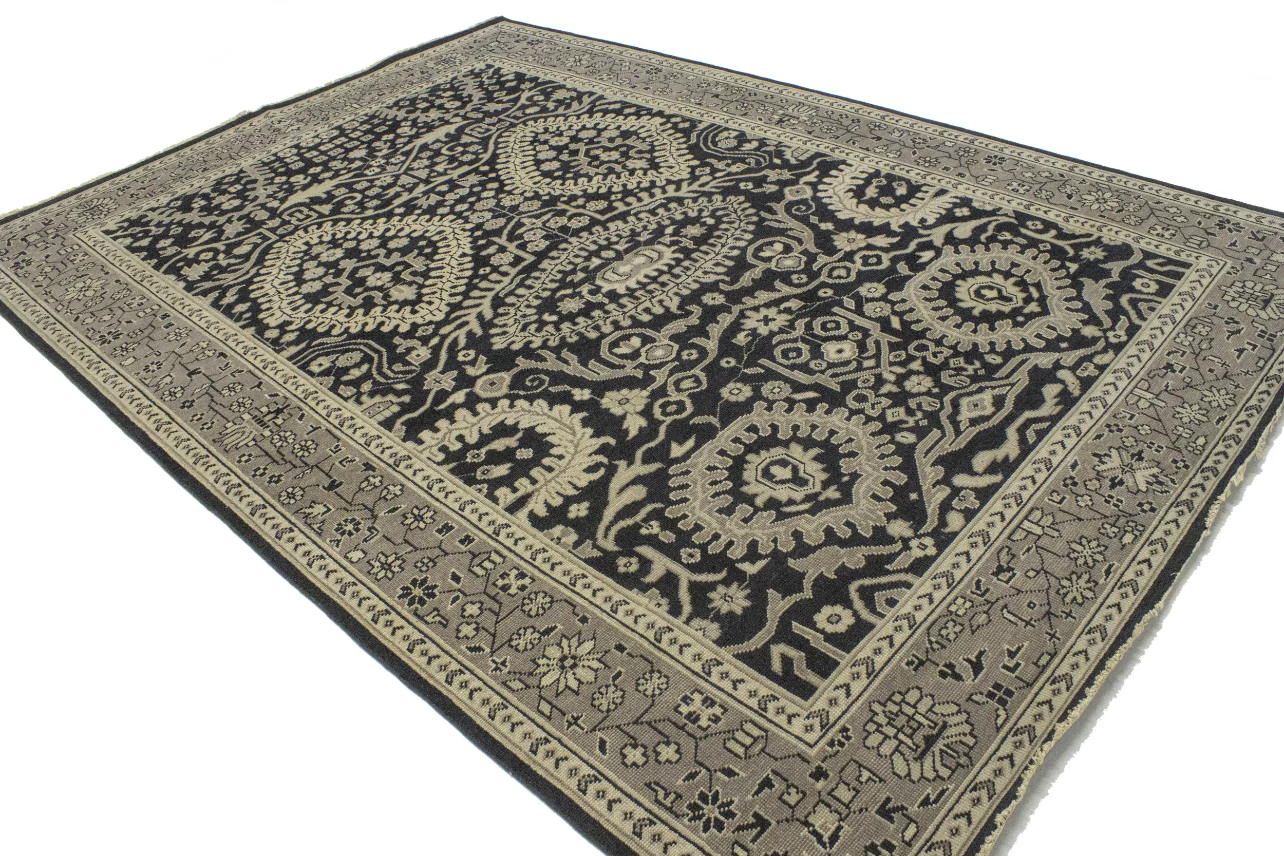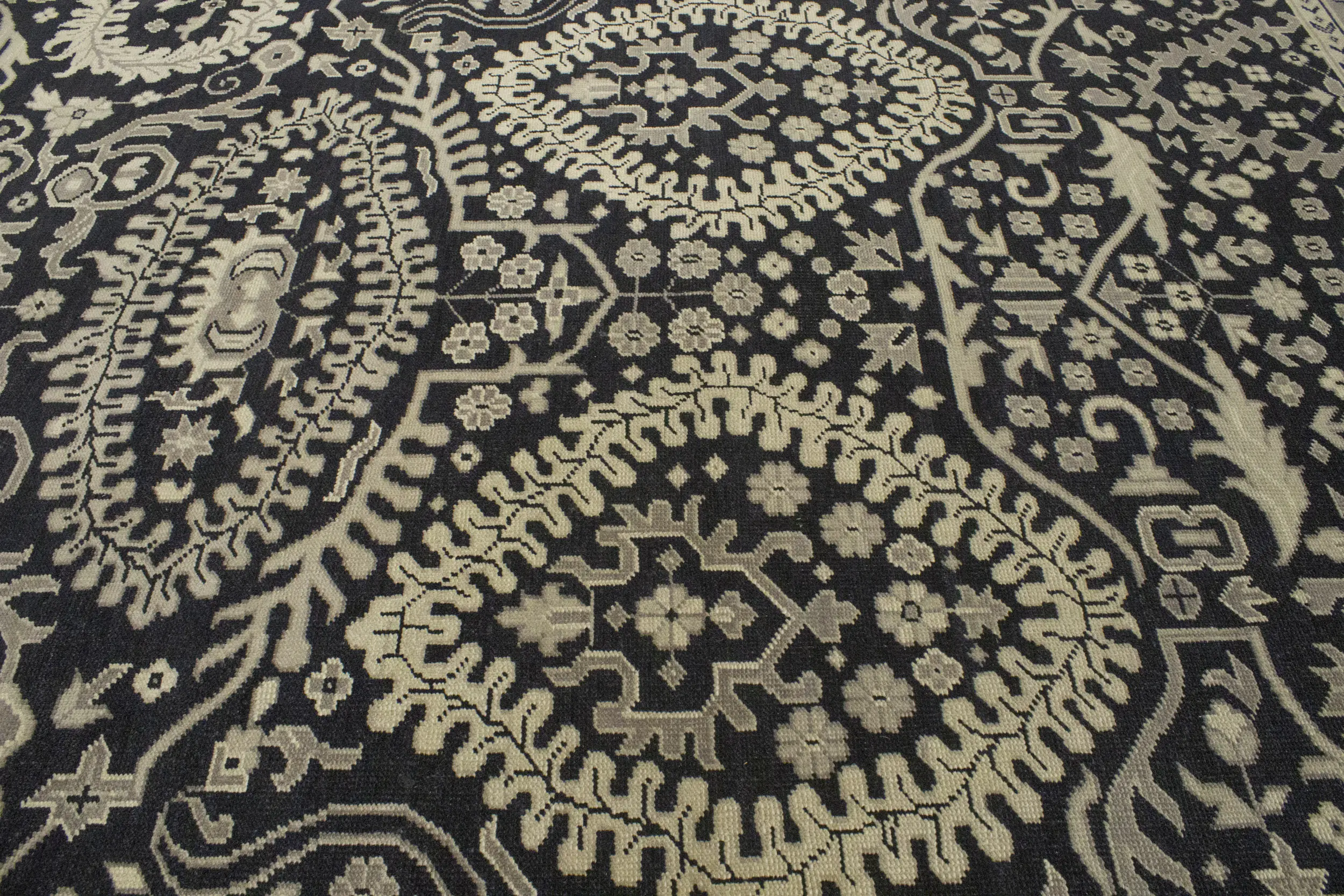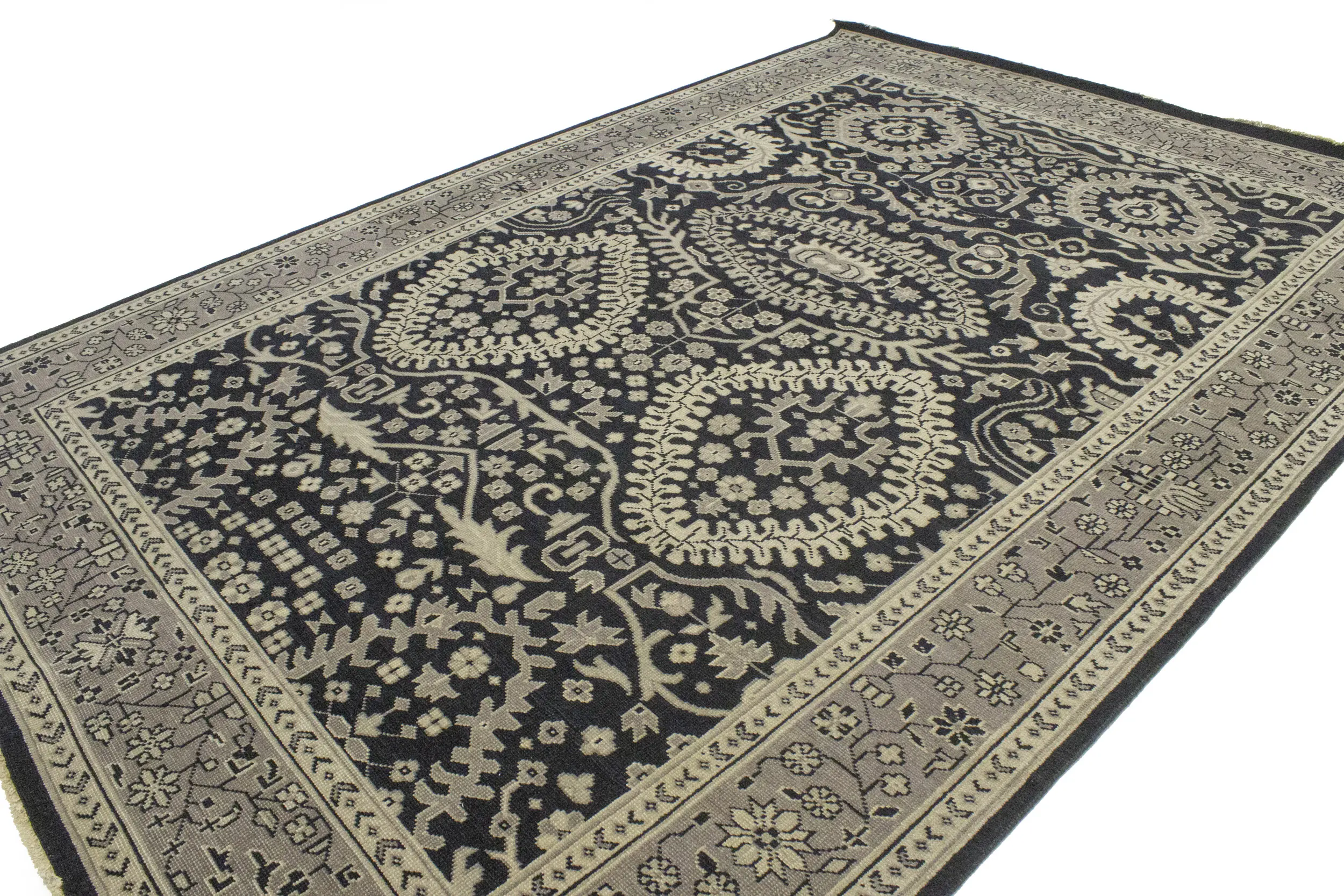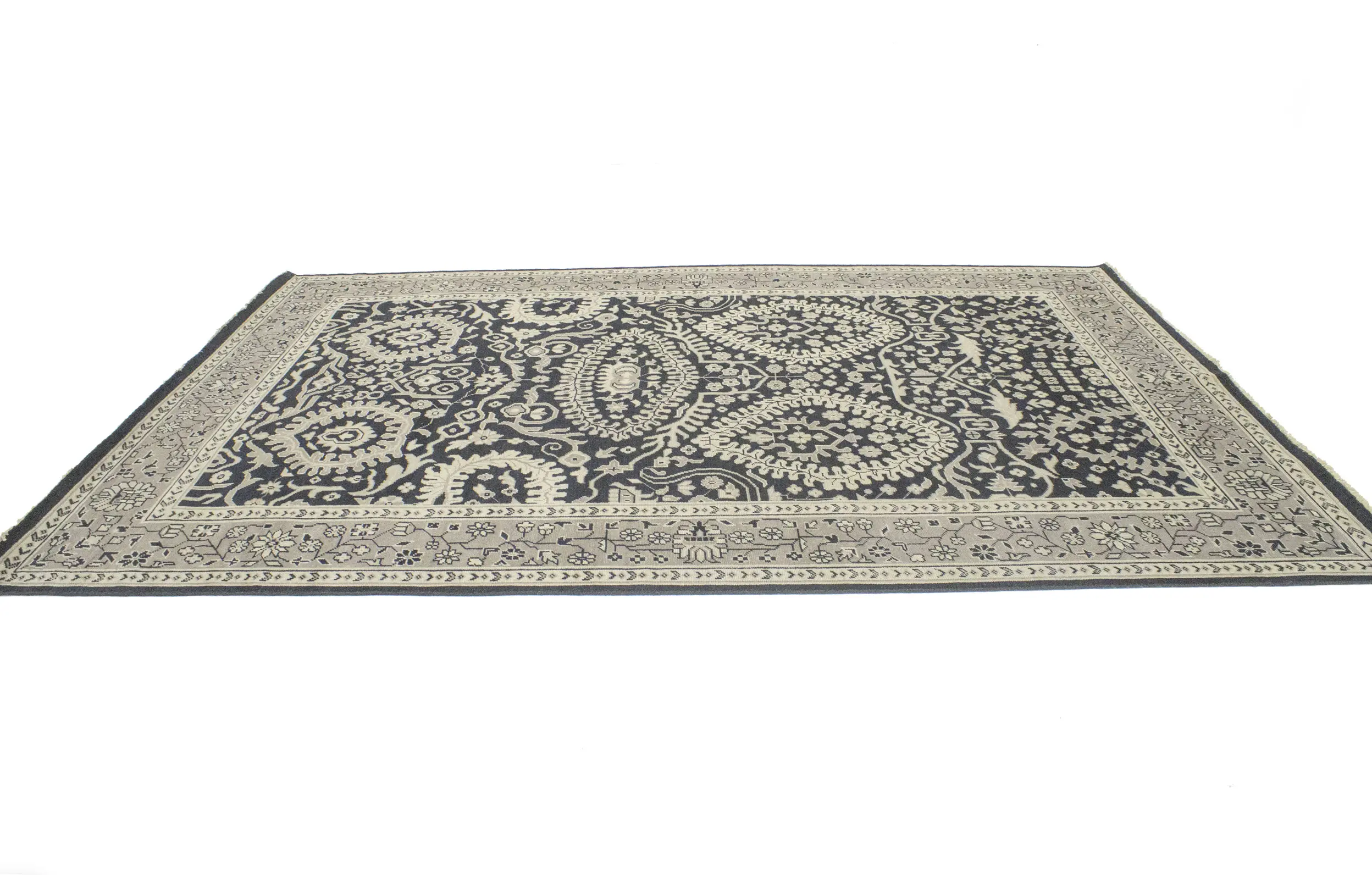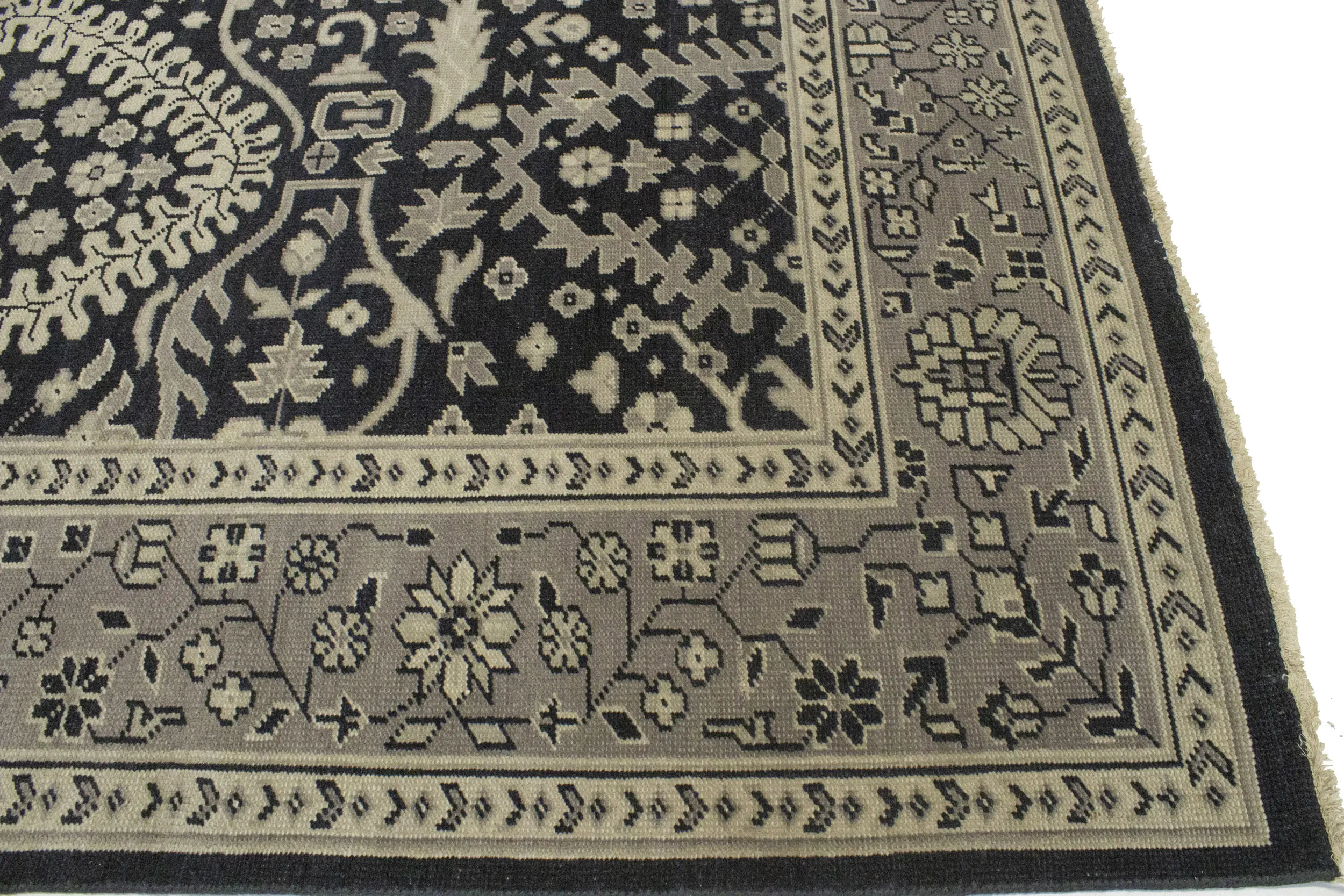 This original 9X13 charcoal new Oriental rug was finely knotted by the hands of weavers influenced by a variety of amazing artistic designs, to recreate the aged look of the exceptional piece with a richness of color and embellished background field. What set this vintage style Oriental area rug from the others are the material and dye used (wool pile and cotton foundation), knot count, antique designs, fantastic grades, and its regional historical connection: it has deep roots, from the story of the people who produced it to the meaning of the symbols and colors displayed across its canvas that have been praised for centuries. This Indian home décor carpet will be completely cozy and inviting that never will go out of style! Also, this Oriental rug would be among your most valuable treasures, it is a great investment that increase in value over time, and it will last a lifetime because was woven with high-quality, all-natural wool. Eco-friendly, opulent yet affordable; this rug will give you an extra pop of character to help define your home environment with luxury and warmth that will capture the eyes and attention of your audience (homeowners, designers, decorators, family and friends). OT-6898