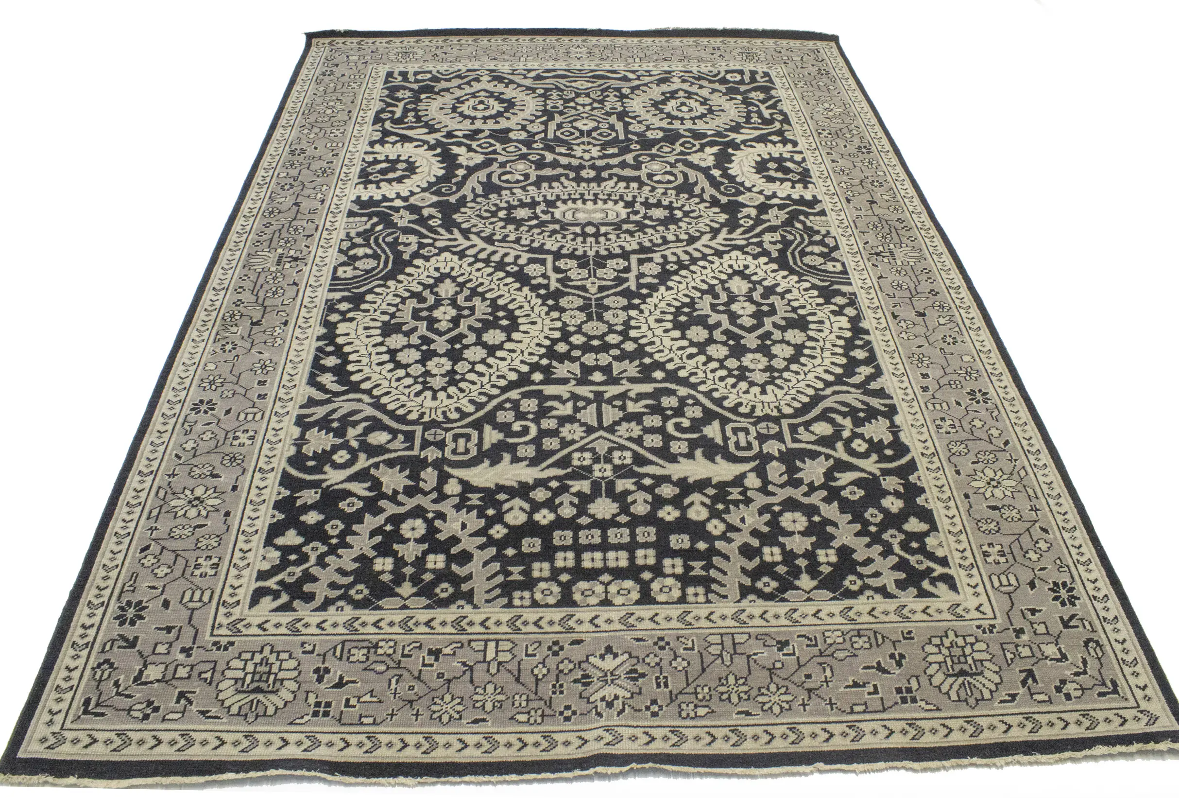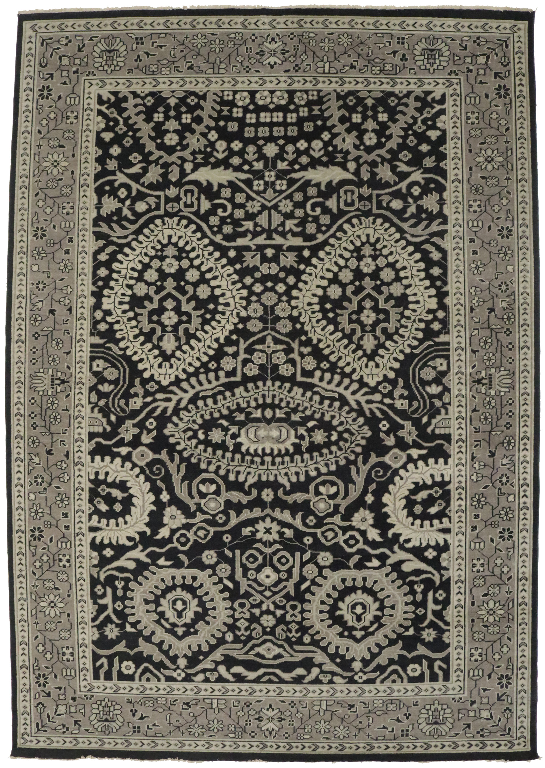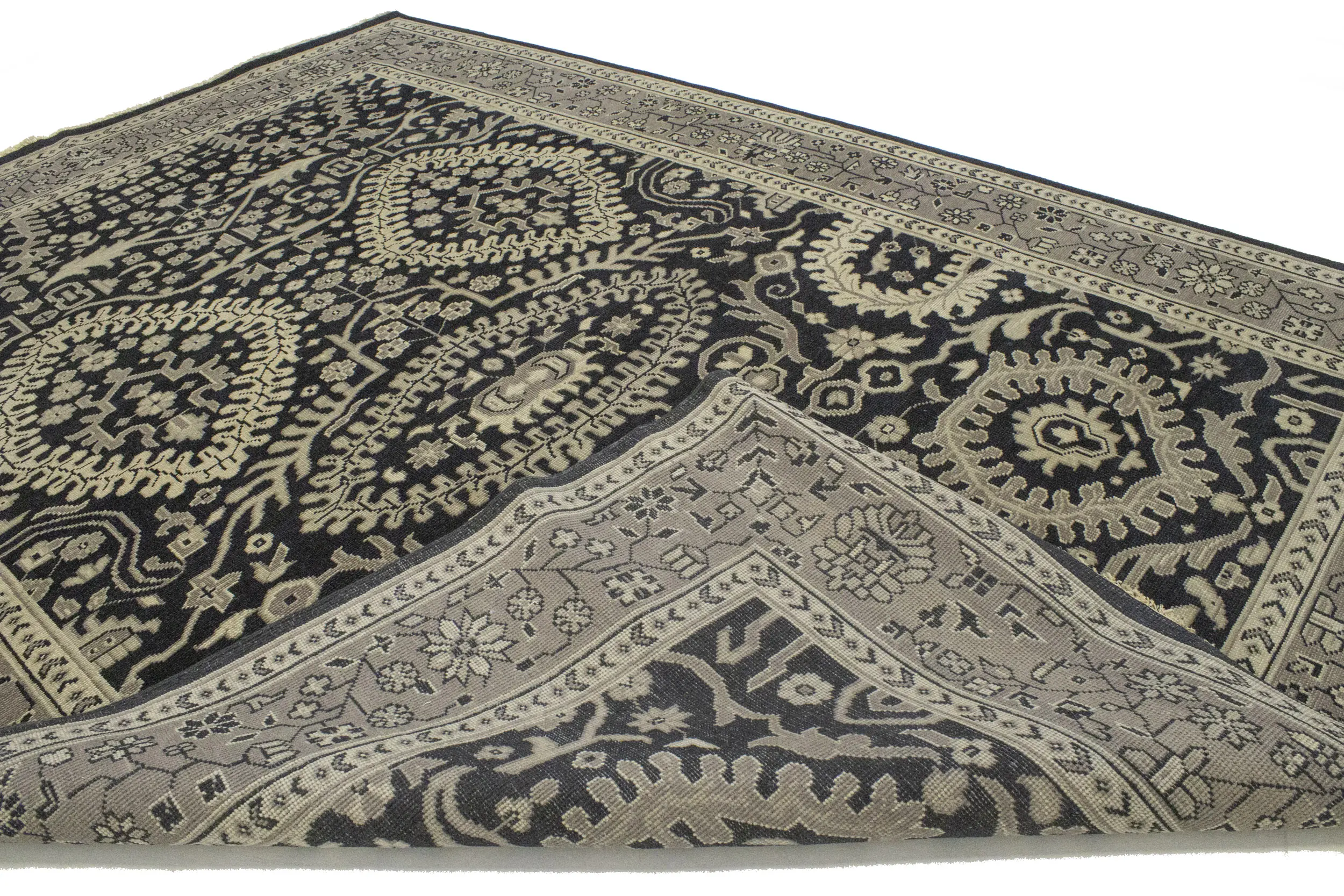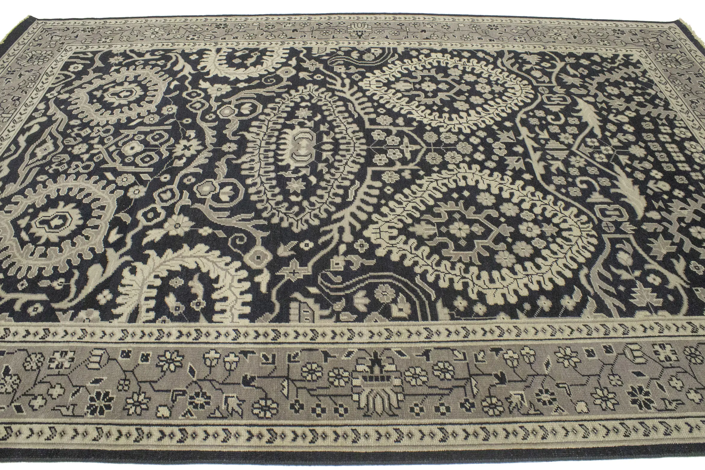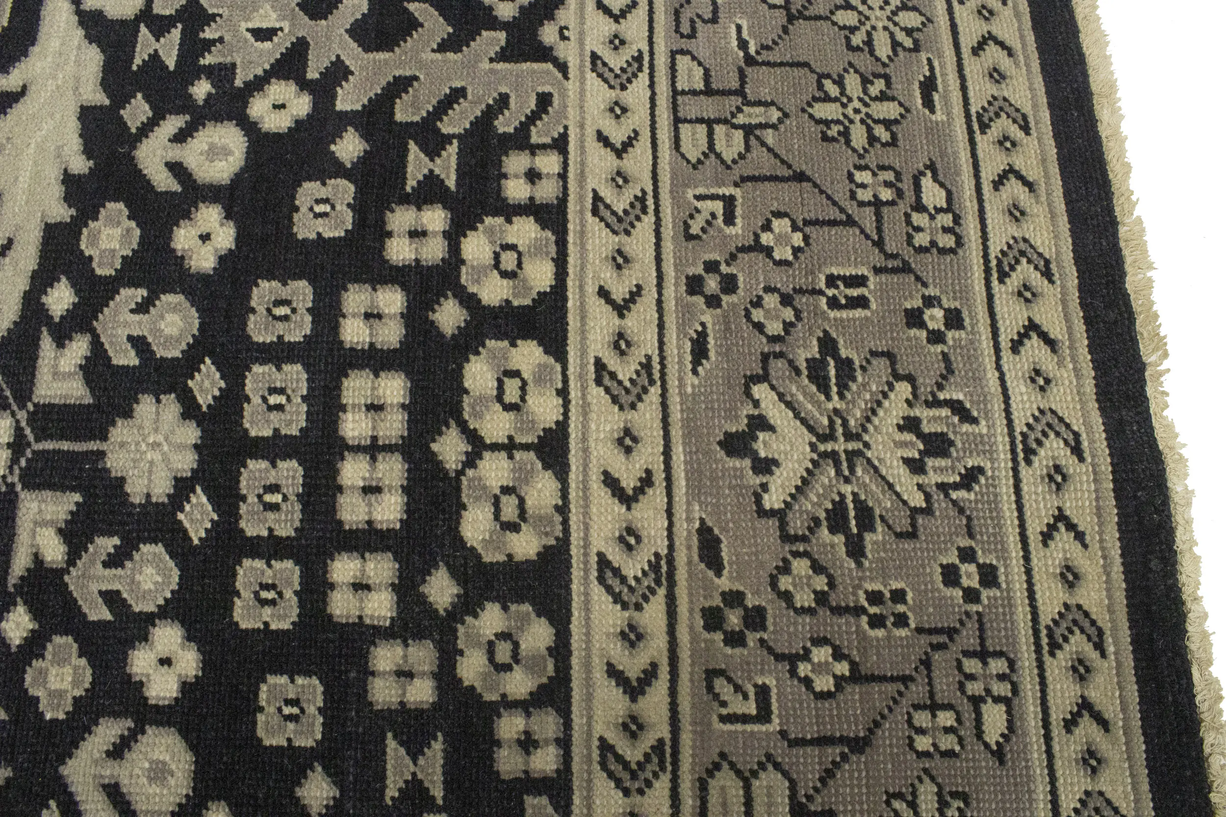 This original 9X13 charcoal new Oriental rug was finely knotted by the hands of weavers influenced by a variety of amazing artistic designs, to recreate the aged look of the exceptional piece with a richness of color and embellished background field. What set this vintage style Oriental area rug from the others are the material and dye used (wool pile and cotton foundation), knot count, antique designs, fantastic grades, and its regional historical connection: it has deep roots, from the story of the people who produced it to the meaning of the symbols and colors displayed across its canvas that have been praised for centuries. This Indian home décor carpet will be completely cozy and inviting that never will go out of style! Also, this Oriental rug would be among your most valuable treasures, it is a great investment that increase in value over time, and it will last a lifetime because was woven with high-quality, all-natural wool. Eco-friendly, opulent yet affordable; this rug will give you an extra pop of character to help define your home environment with luxury and warmth that will capture the eyes and attention of your audience (homeowners, designers, decorators, family and friends). OT-6898