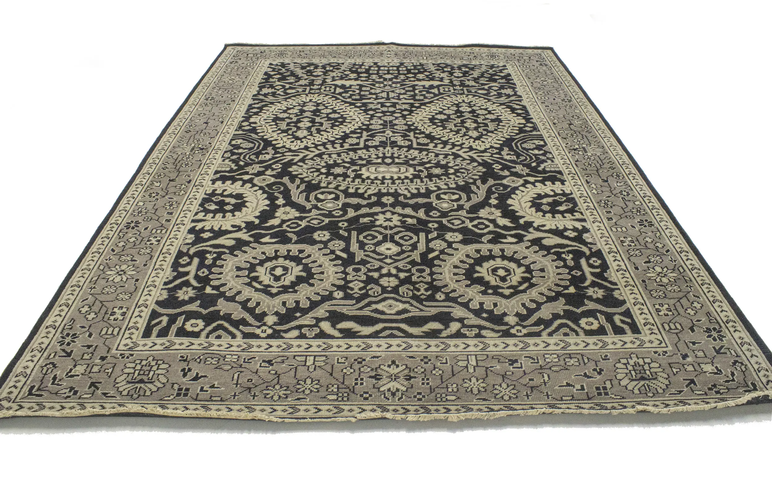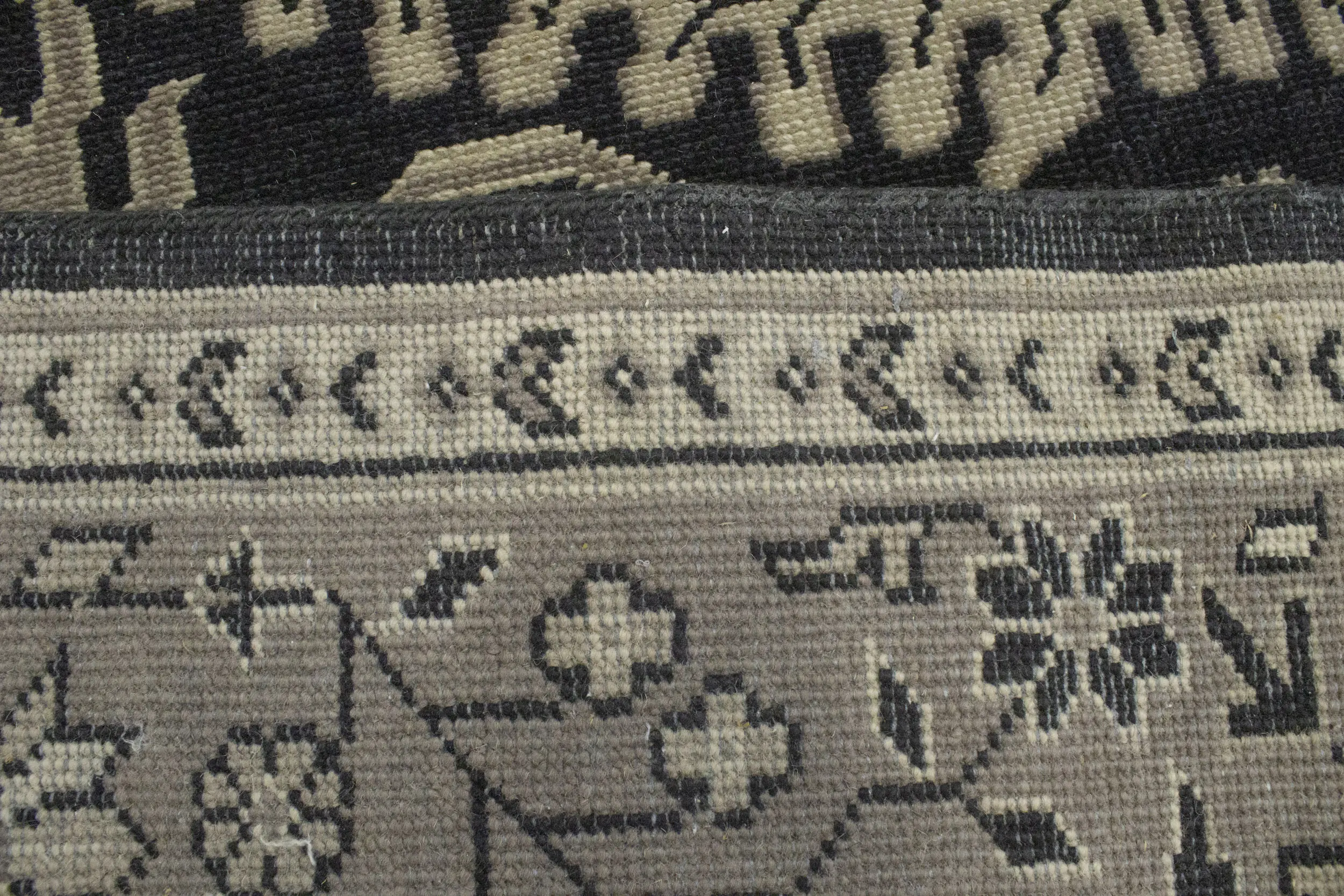Handmade 9X13 charcoal Oriental rug made with vegetable dyes (fine wool pile and cotton foundation), superior knot count, and appealing ancient designs. This Oriental rug never will go out of style and would be among your most valuable treasures.