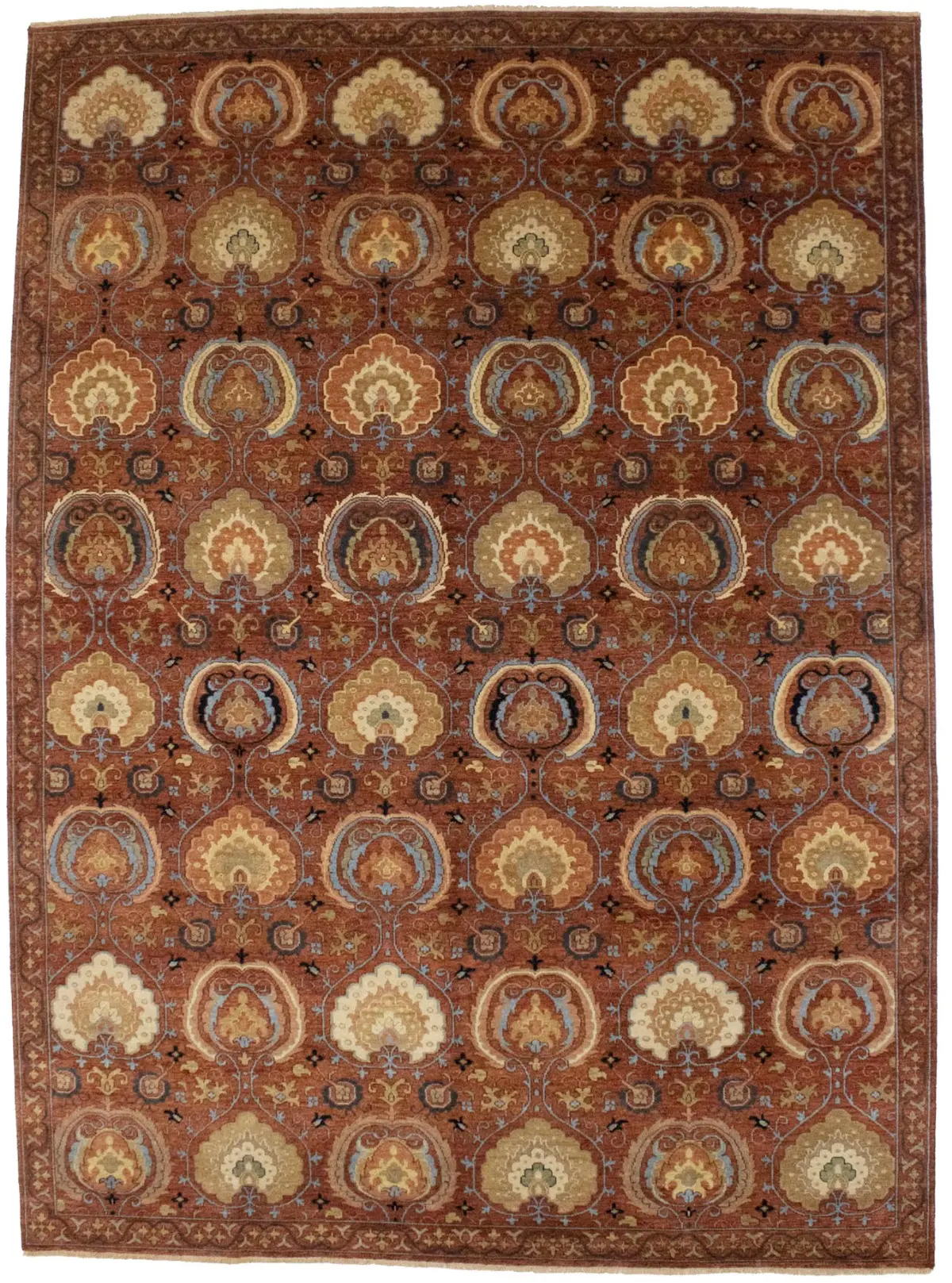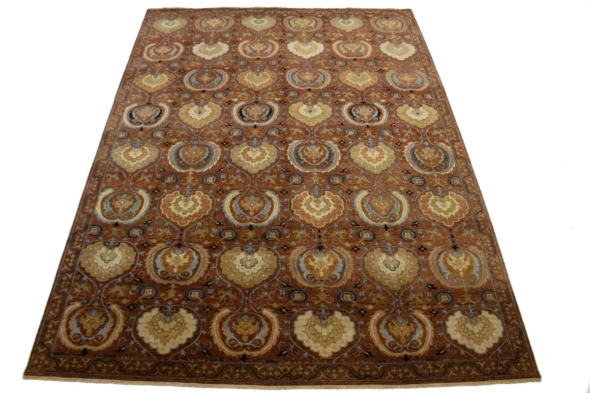 Handmade 9X12'6 brown oriental rug made with vegetable dyes (fine wool pile and cotton foundation), superior knot count, and appealing ancient designs. This Oriental rug never will go out of style and would be among your most valuable treasures.