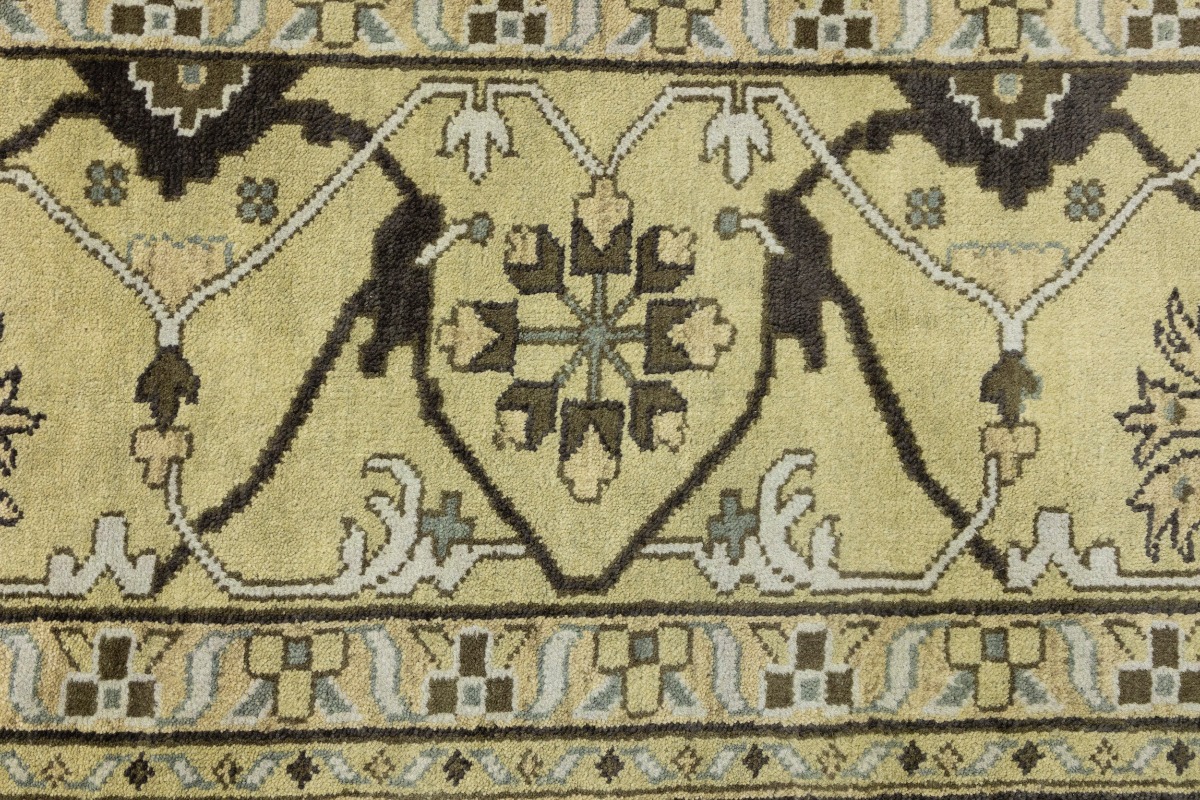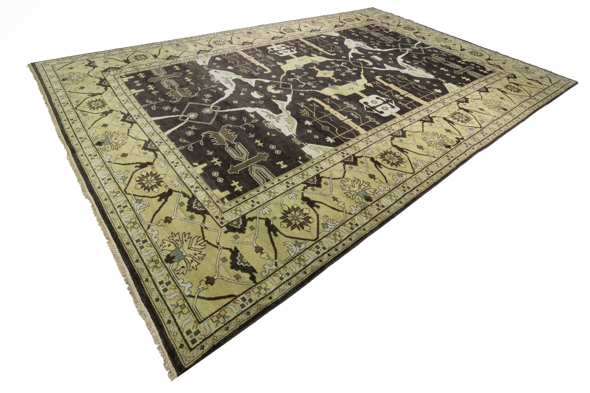This authentic 12X18 beige new Oriental rug was masterly knotted by the hands of weavers inspired by a variety of wonderful artistic designs, to recreate the aged look of the original piece with a richness of color and intricate patterned background field. What set this vintage style Oriental area rug from the others are the material and dye used (wool pile and cotton foundation), knot count, antique designs, fantastic grades, and its regional historical connection: it has deep roots, from the story of the people who produced it to the meaning of the symbols and colors displayed across its canvas that have been praised for centuries. This Indian home décor carpet will be completely cozy and inviting that never will go out of style! Also, this Oriental rug would be among your most valuable treasures, it is a great investment that accrues value over time, and it will last for generations because was woven with high-quality, all-natural wool. Environmentally friendly, opulent yet affordable; this rug will give you a thorough amount of character to help define your living space with luxury and warmth that will capture the eyes and attention of your audience (homeowners, designers, decorators, family and friends). OT-7605