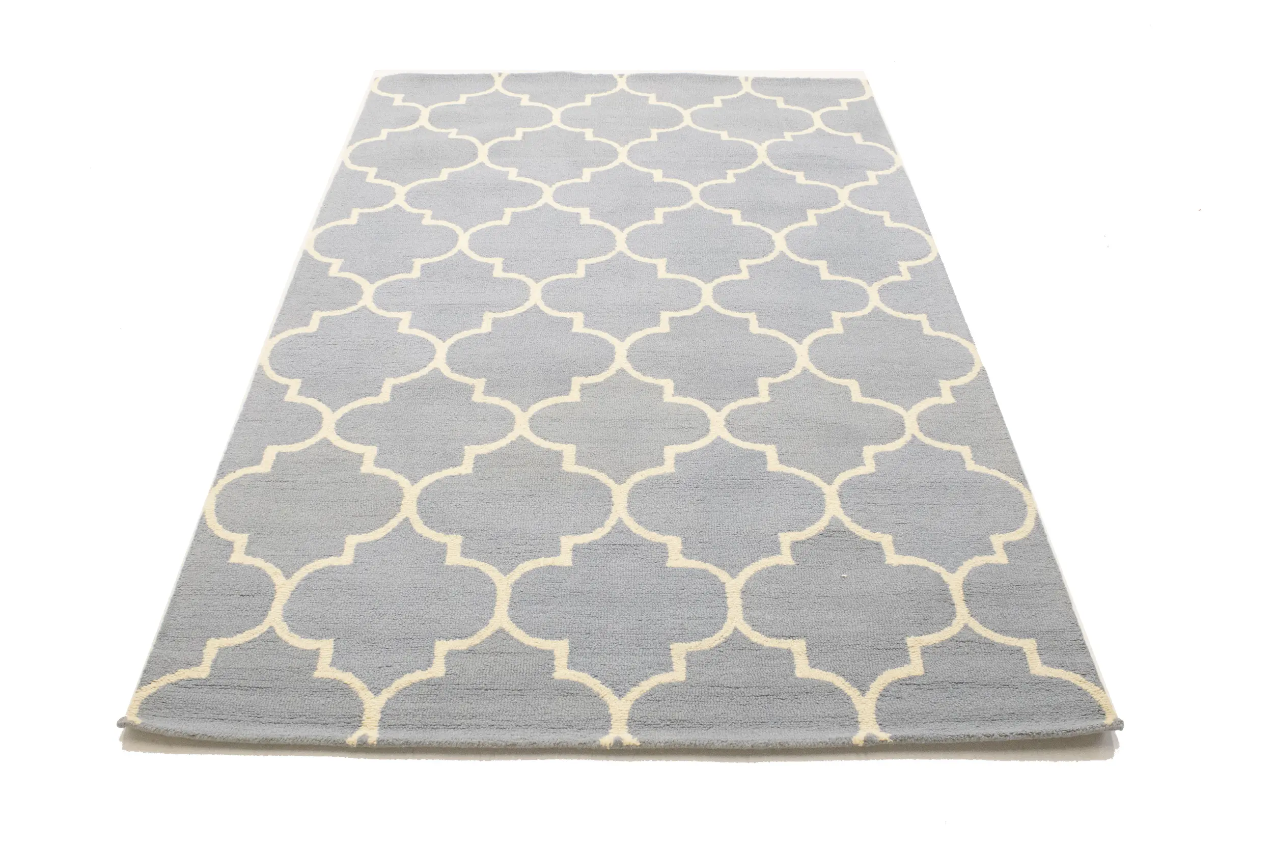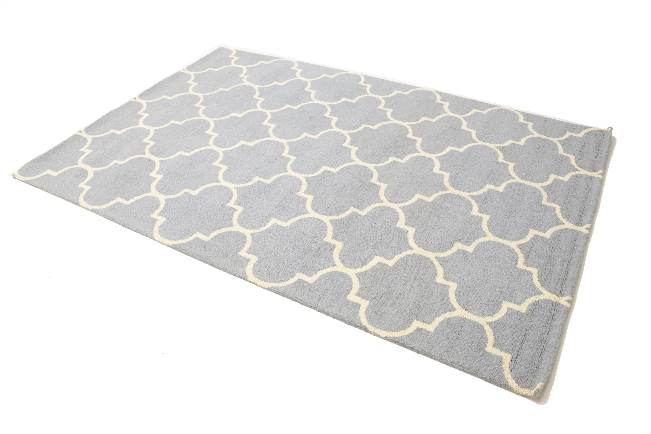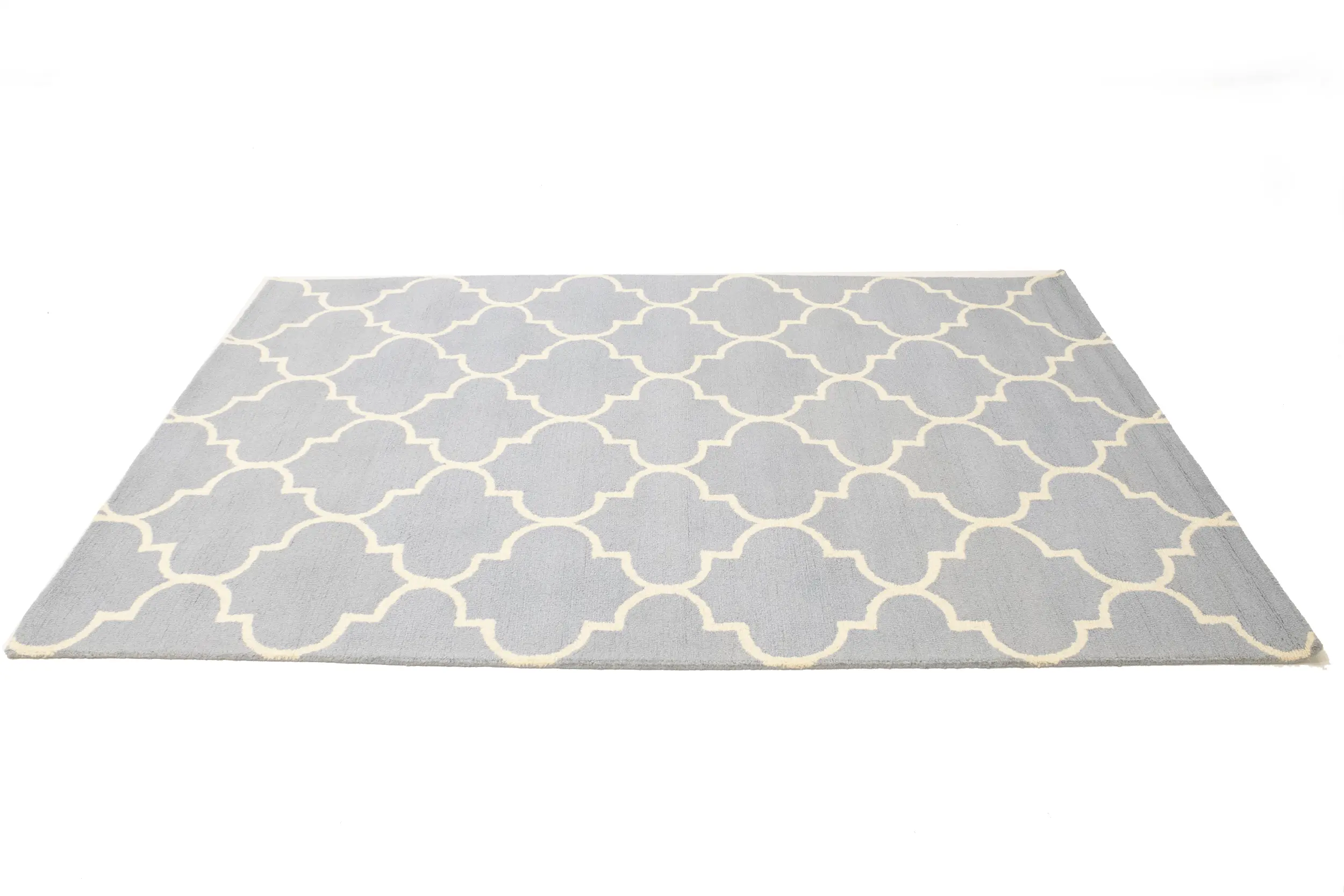 Modern Trellis Design Gray Hand-Tufted 5X8 Wool Modern Rug Studio Office Carpet