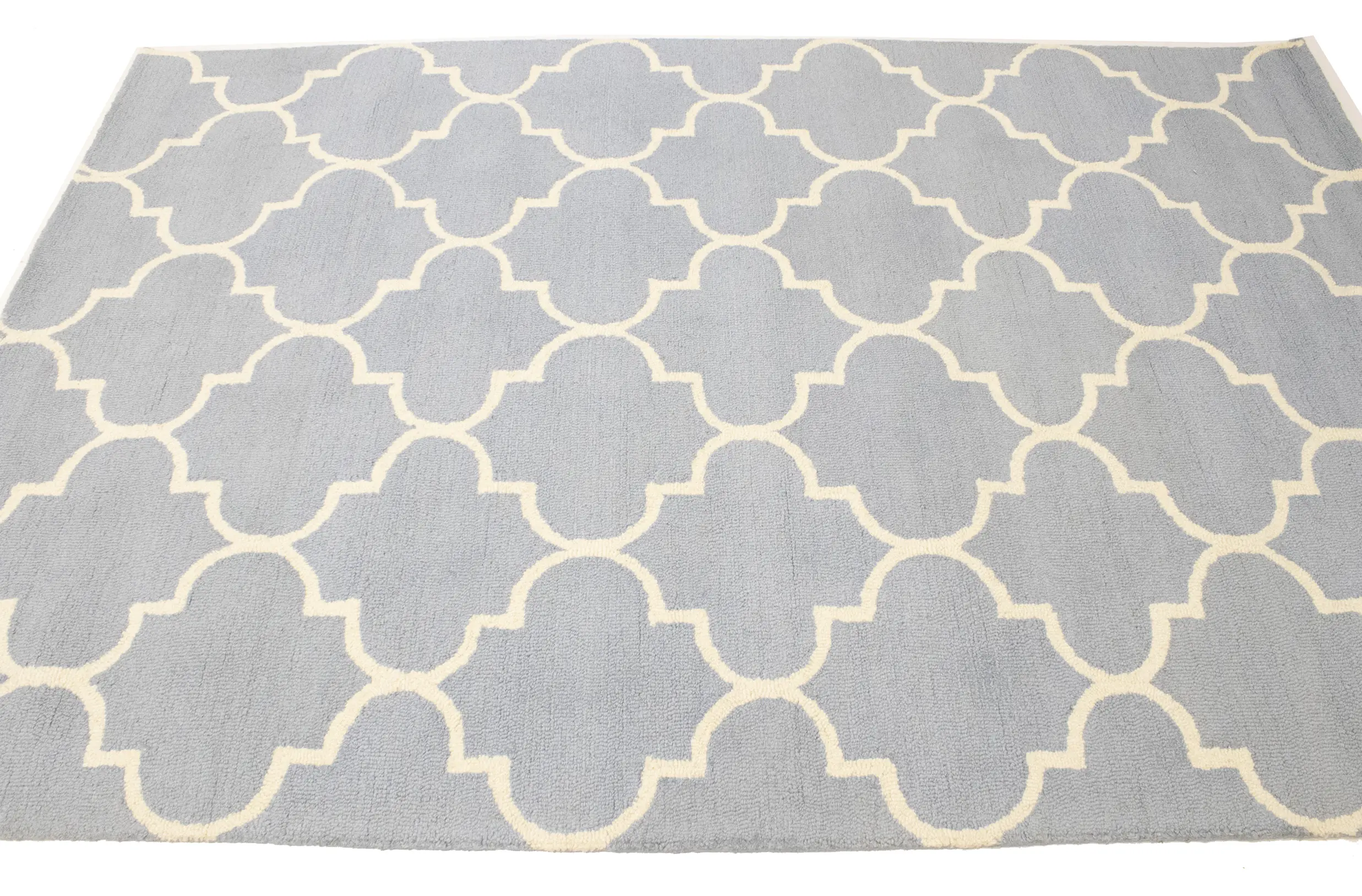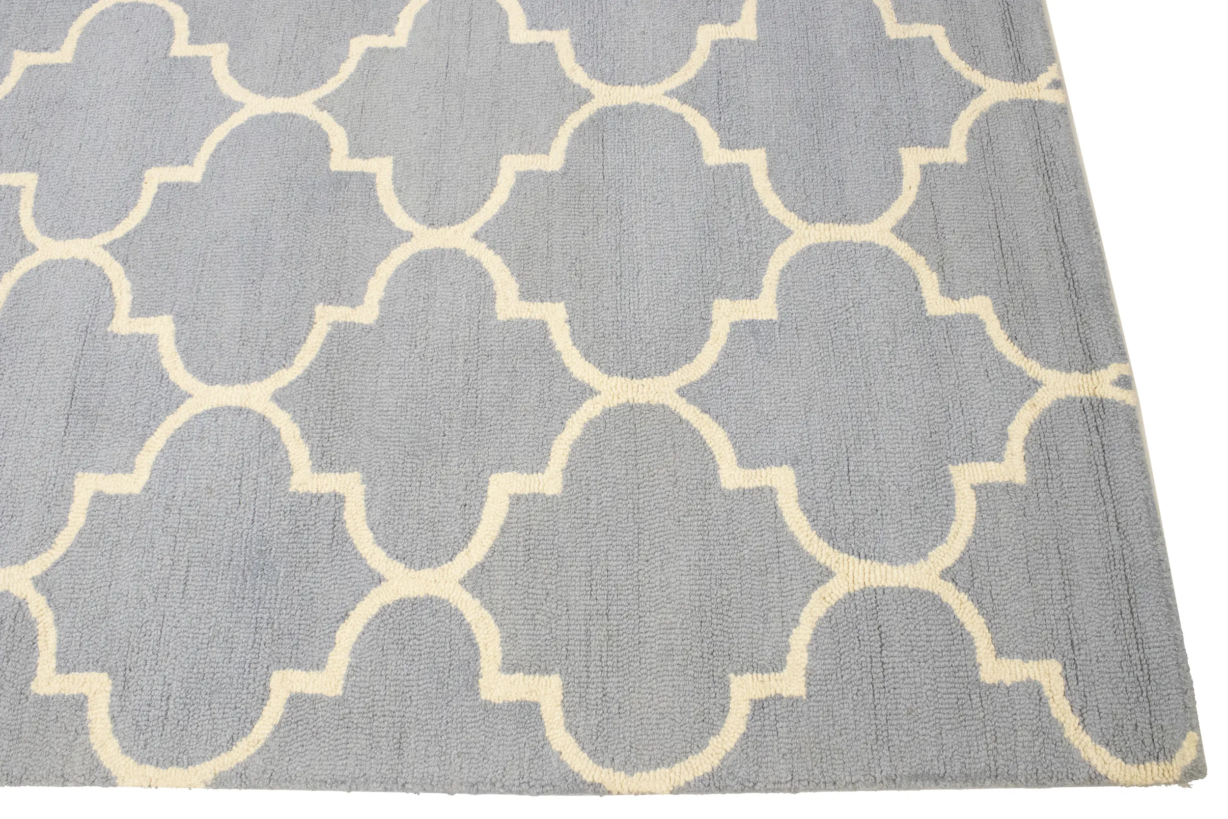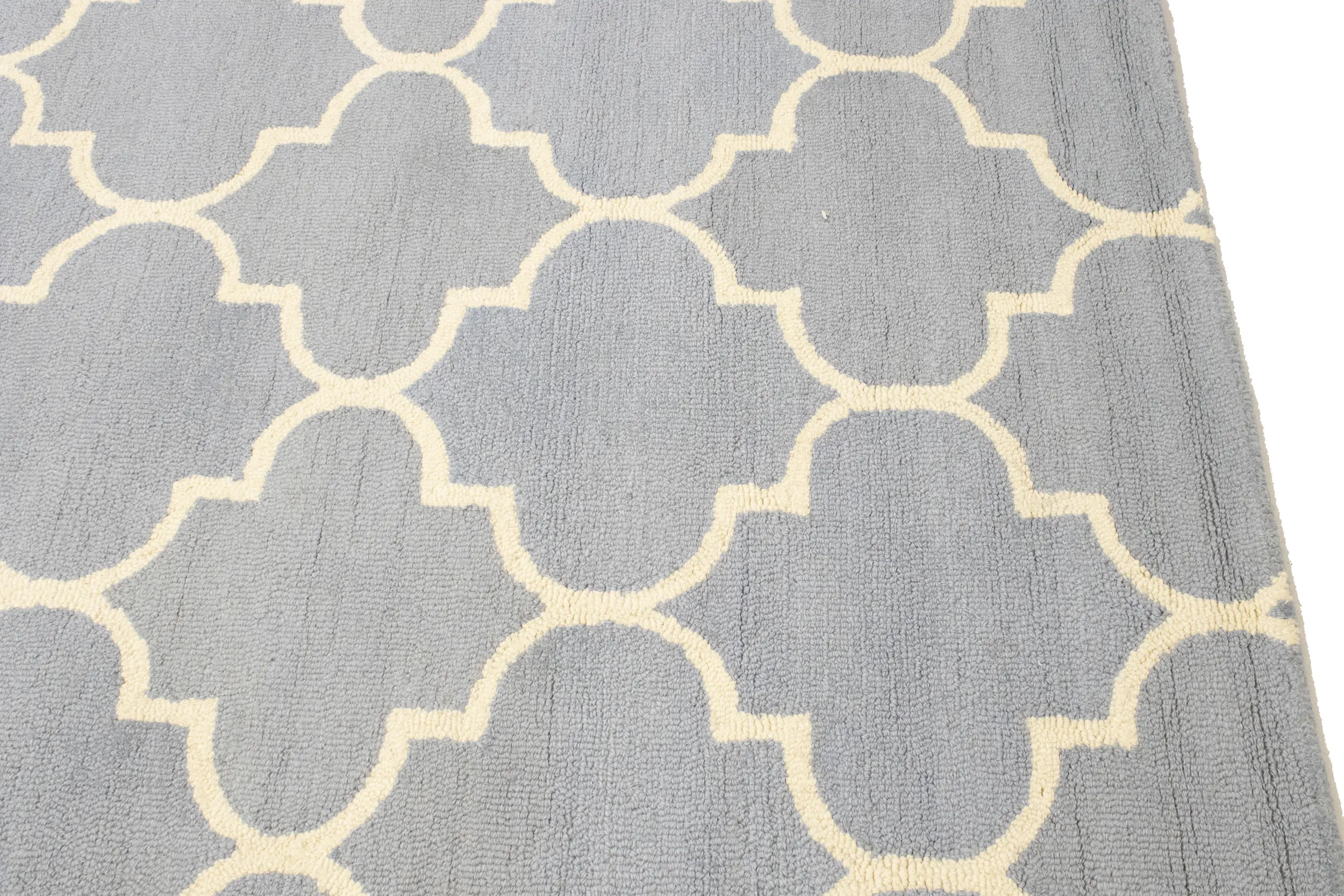 Modern Trellis Design Gray Hand-Tufted 5X8 Wool Modern Rug Studio Office Carpet
