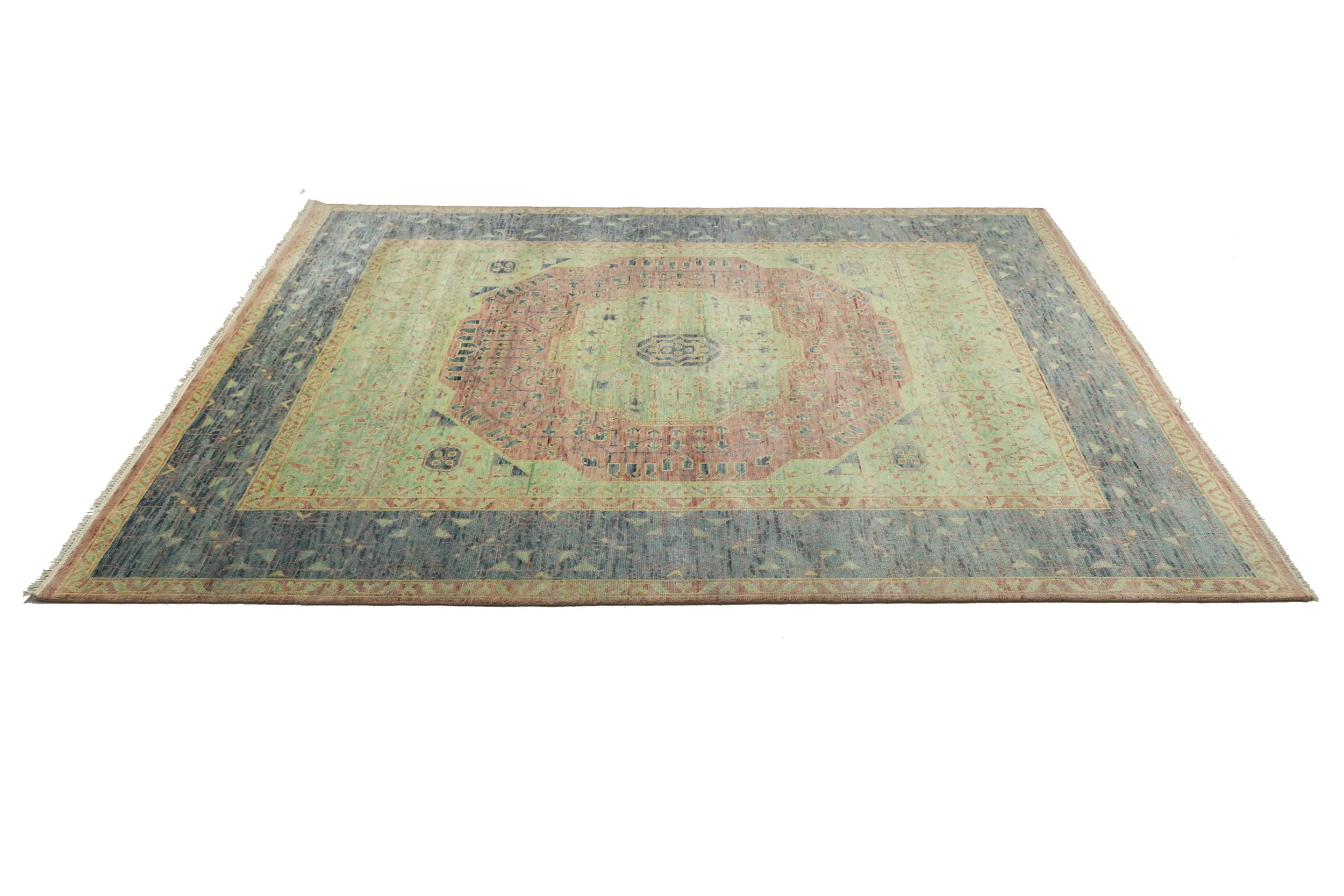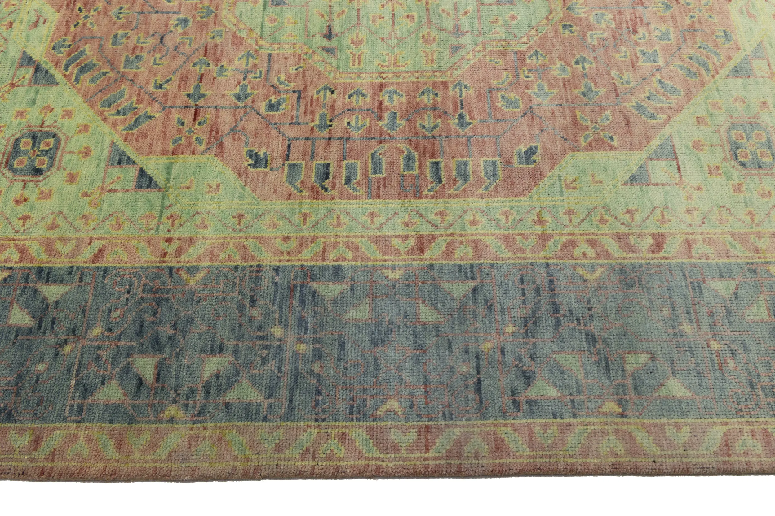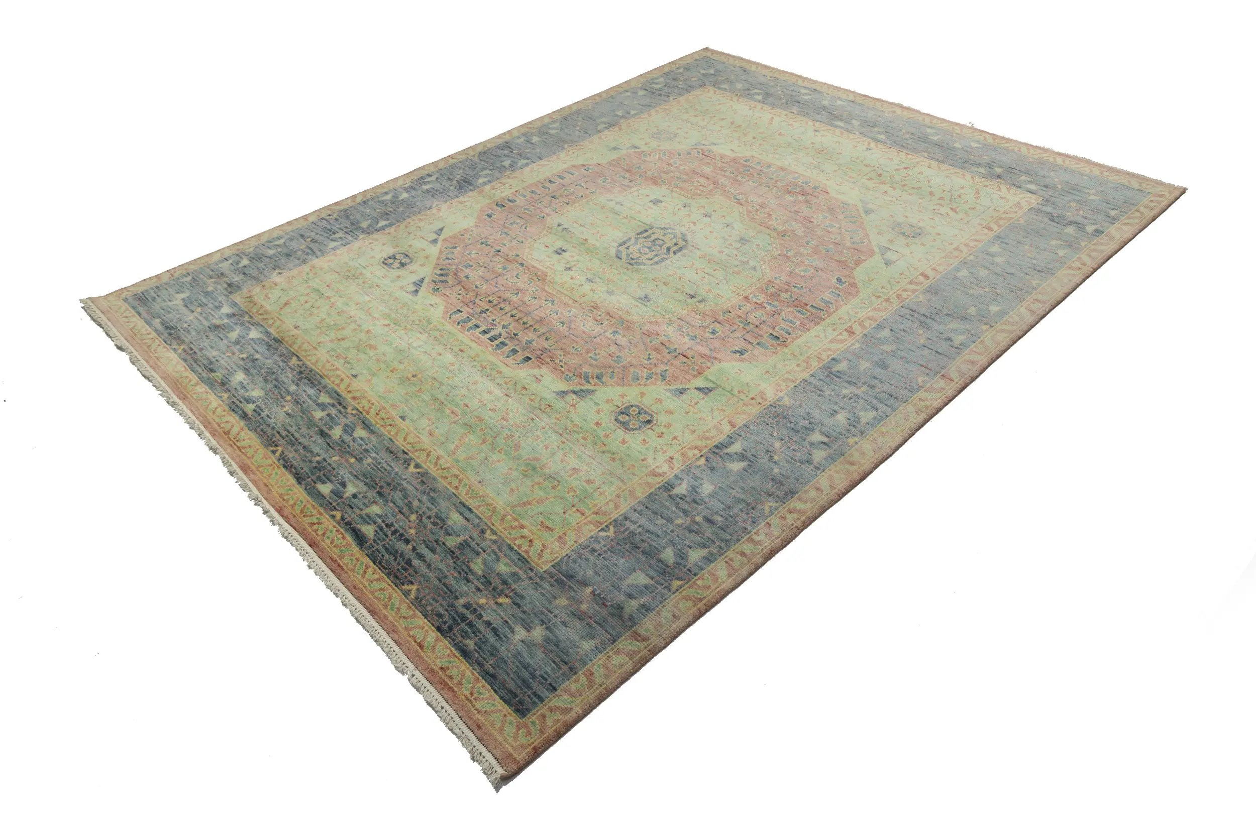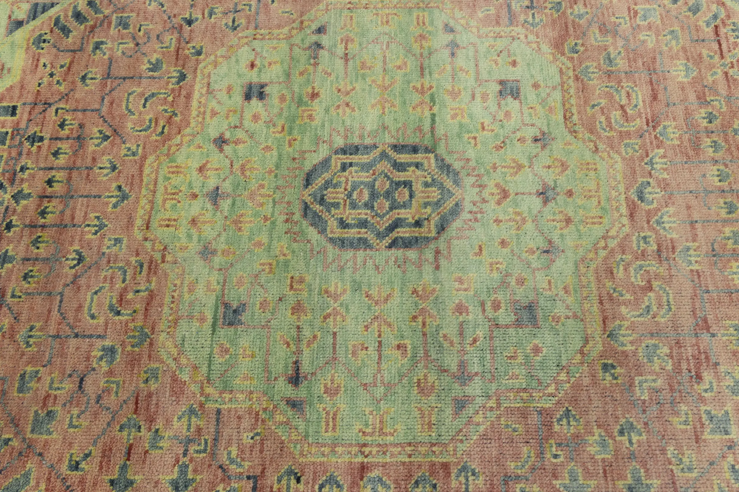 This original 9X12 red new Oriental rug was finely knotted by the hands of weavers influenced by a variety of amazing artistic designs, to recreate the aged look of the exceptional piece with a richness of color and embellished background field. What set this vintage style Oriental area rug from the others are the material and dye used (wool pile and cotton foundation), knot count, antique designs, fantastic grades, and its regional historical connection: it has deep roots, from the story of the people who produced it to the meaning of the symbols and colors displayed across its canvas that have been praised for centuries. This Indian home décor carpet will be completely cozy and inviting that never will go out of style! Also, this Oriental rug would be among your most valuable treasures, it is a great investment that increase in value over time, and it will last a lifetime because was woven with high-quality, all-natural wool. Eco-friendly, opulent yet affordable; this rug will give you an extra pop of character to help define your home environment with luxury and warmth that will capture the eyes and attention of your audience (homeowners, designers, decorators, family and friends).