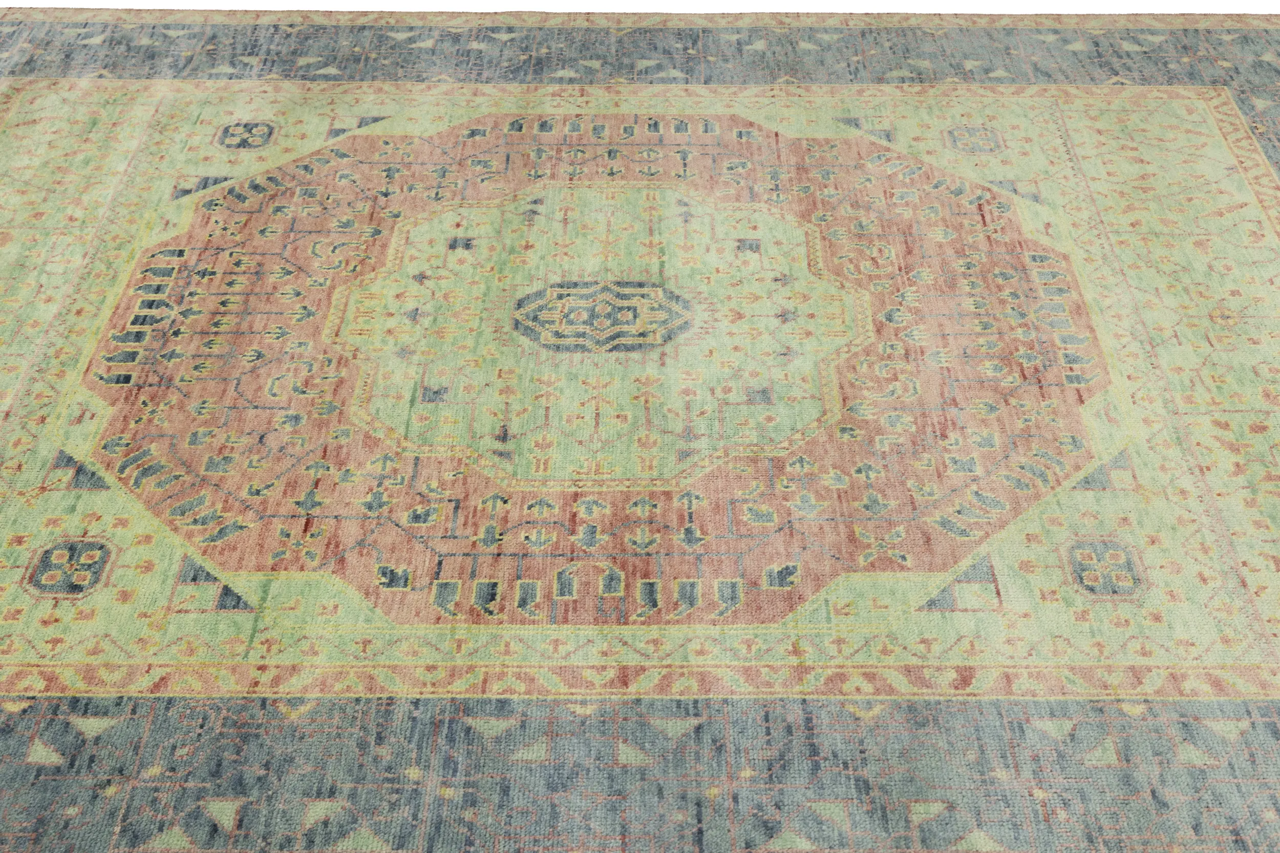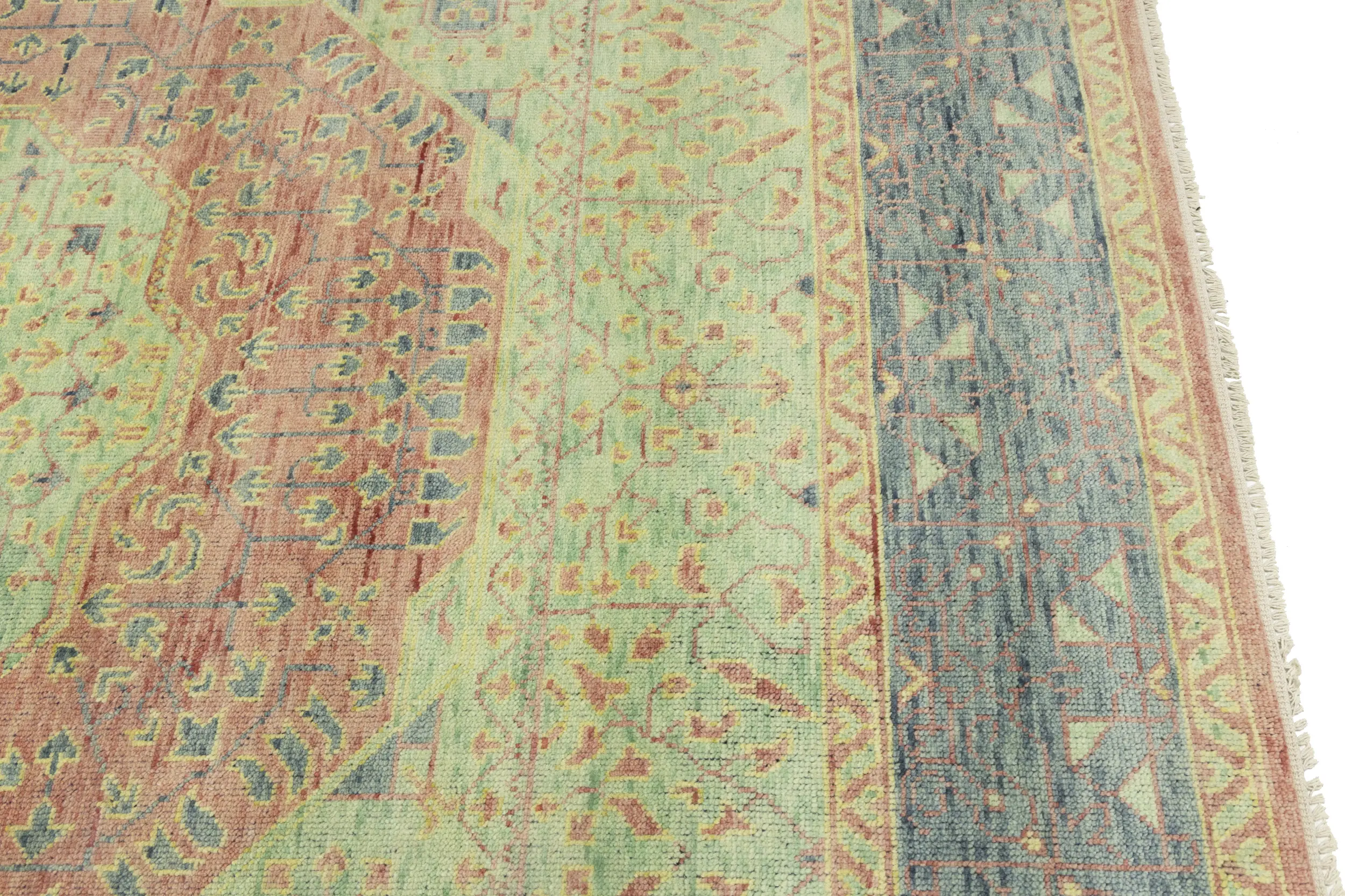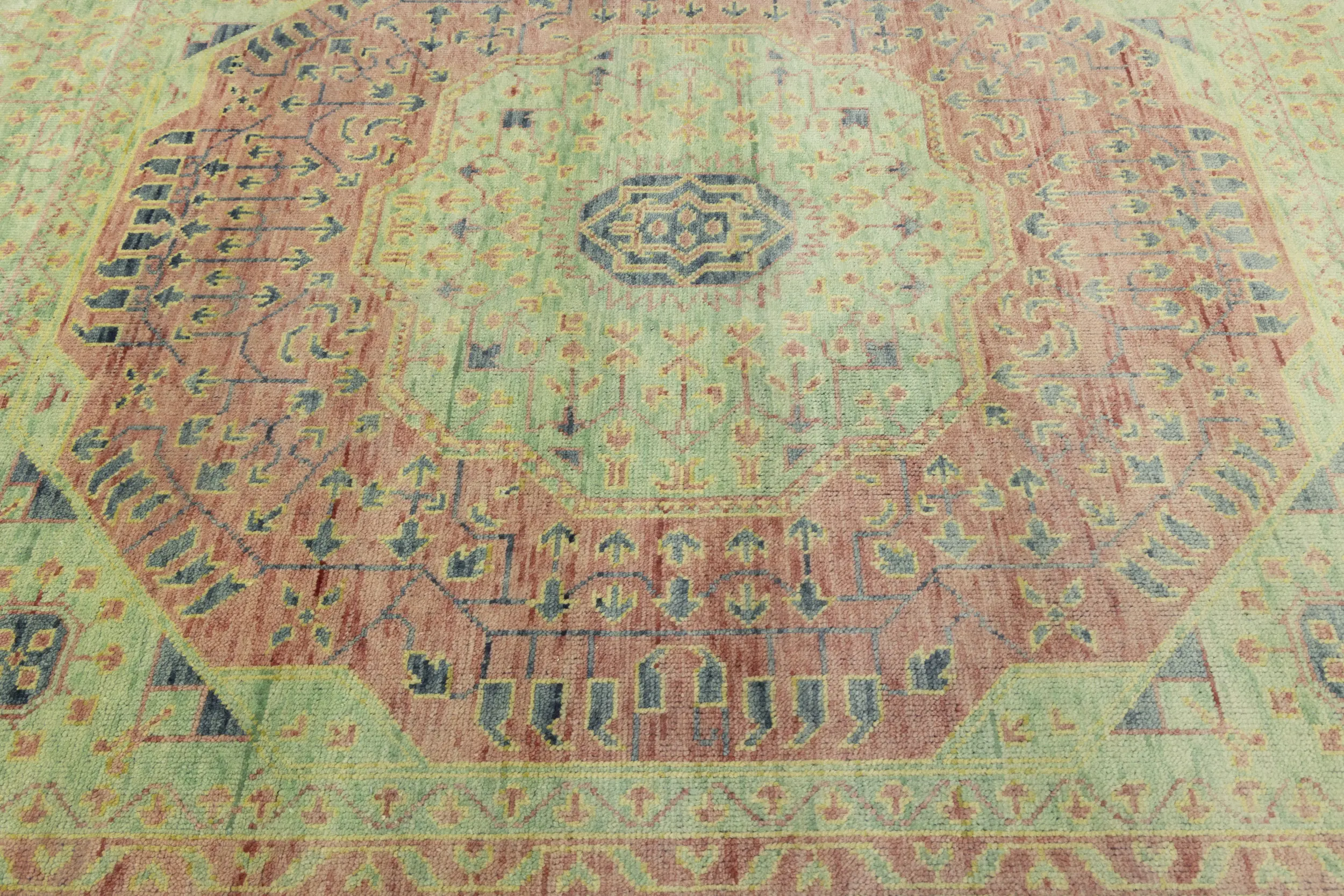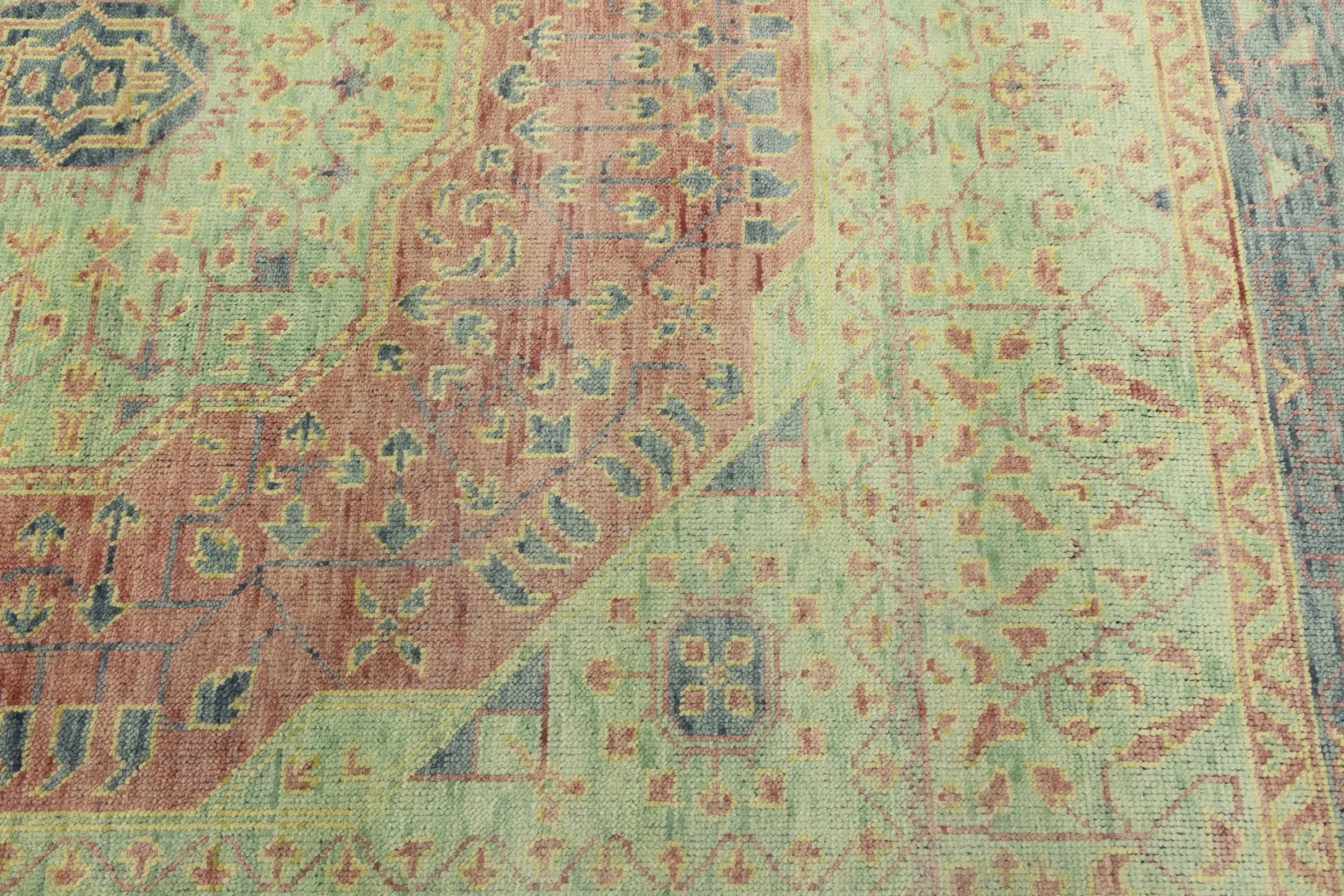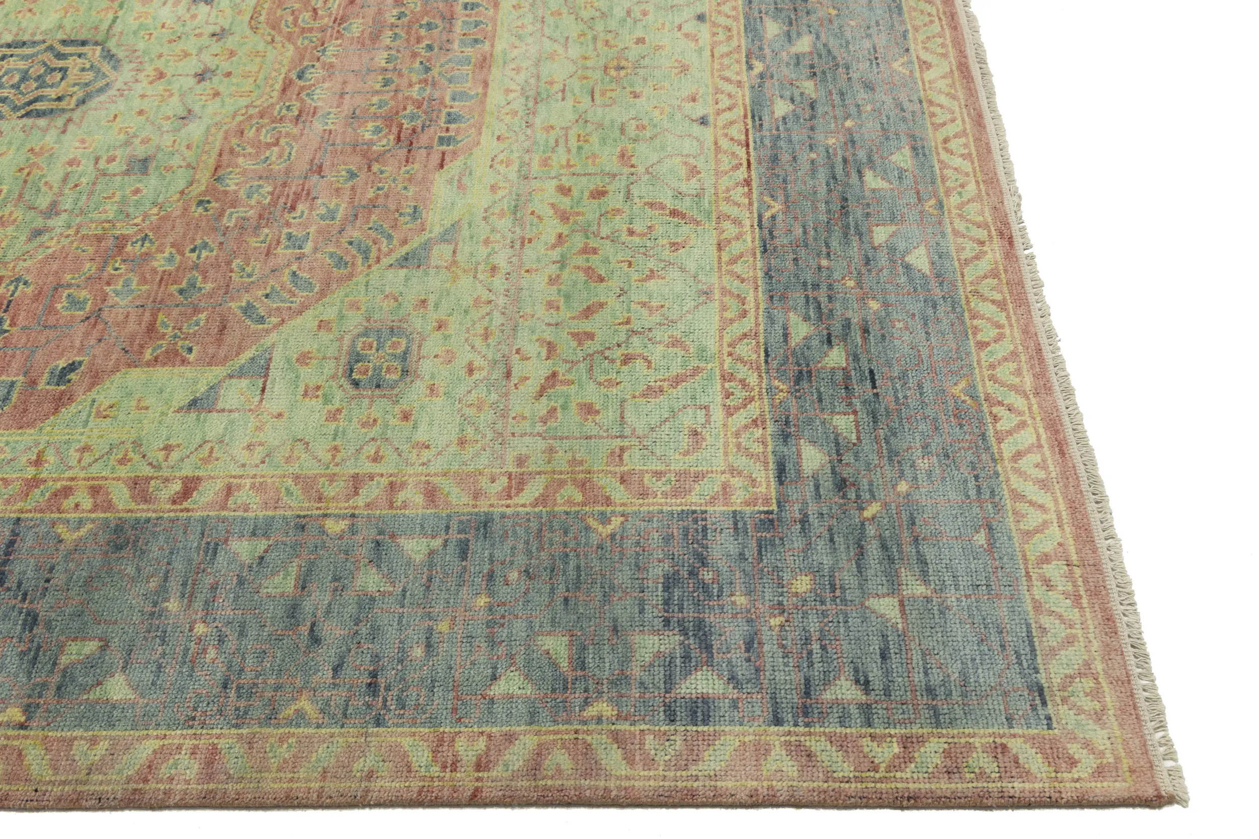 This original 9X12 red new Oriental rug was finely knotted by the hands of weavers influenced by a variety of amazing artistic designs, to recreate the aged look of the exceptional piece with a richness of color and embellished background field. What set this vintage style Oriental area rug from the others are the material and dye used (wool pile and cotton foundation), knot count, antique designs, fantastic grades, and its regional historical connection: it has deep roots, from the story of the people who produced it to the meaning of the symbols and colors displayed across its canvas that have been praised for centuries. This Indian home décor carpet will be completely cozy and inviting that never will go out of style! Also, this Oriental rug would be among your most valuable treasures, it is a great investment that increase in value over time, and it will last a lifetime because was woven with high-quality, all-natural wool. Eco-friendly, opulent yet affordable; this rug will give you an extra pop of character to help define your home environment with luxury and warmth that will capture the eyes and attention of your audience (homeowners, designers, decorators, family and friends).