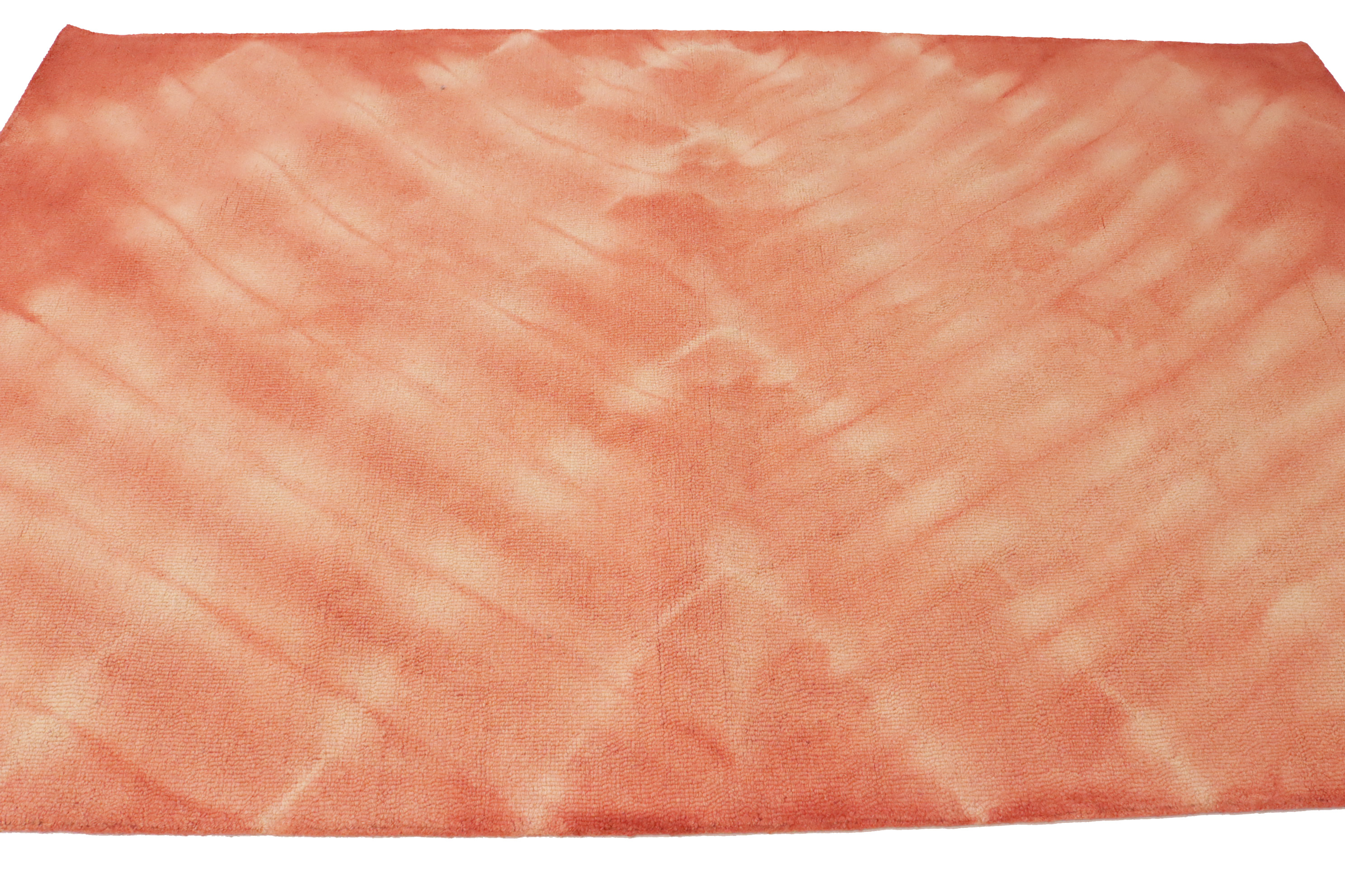 Coral Peach Tie-Dye Design Wool 5X8 Hand-Tufted Modern Rug Kids Room Carpet