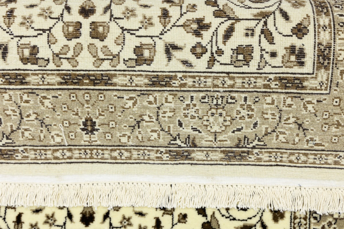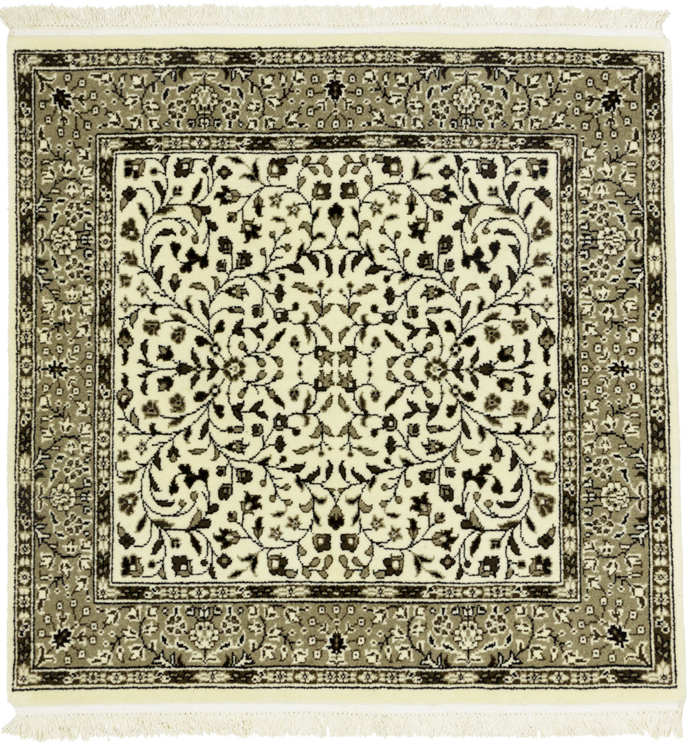 Handmade 3X3 cream Oriental rug made with natural dyes (fine wool pile and cotton foundation), superior knot count, and appealing ancient designs. This Oriental rug never will go out of style and would be among your most valuable treasures.