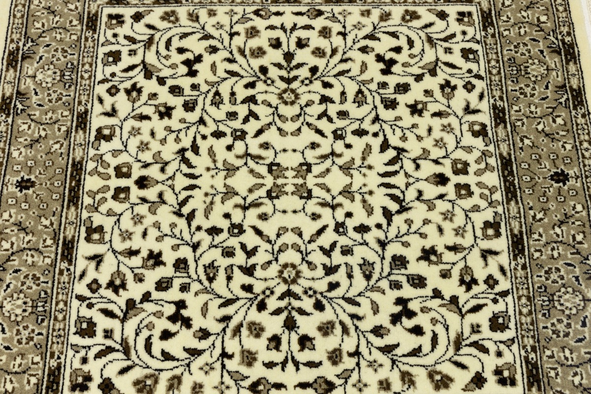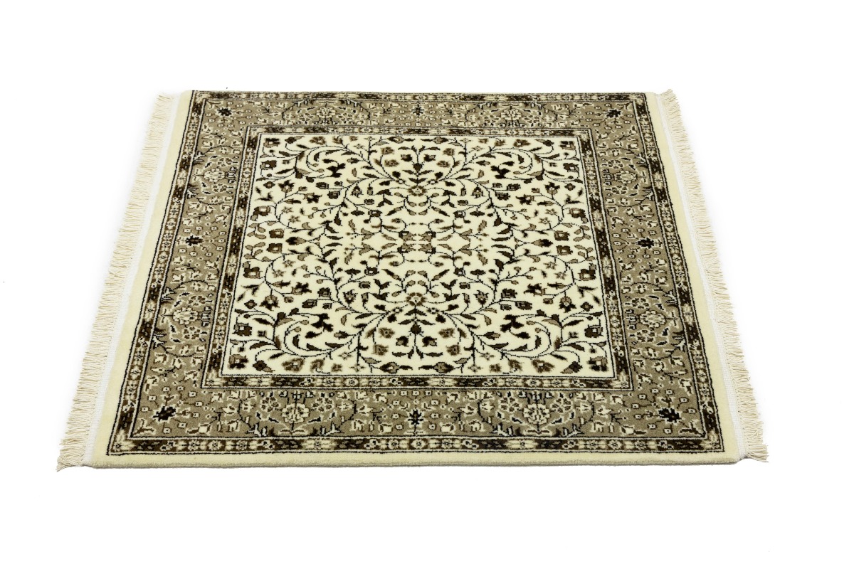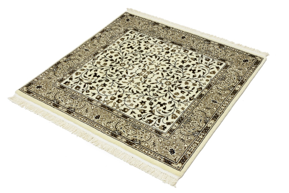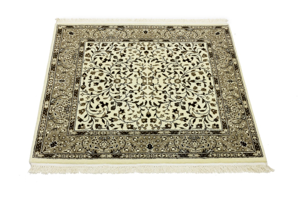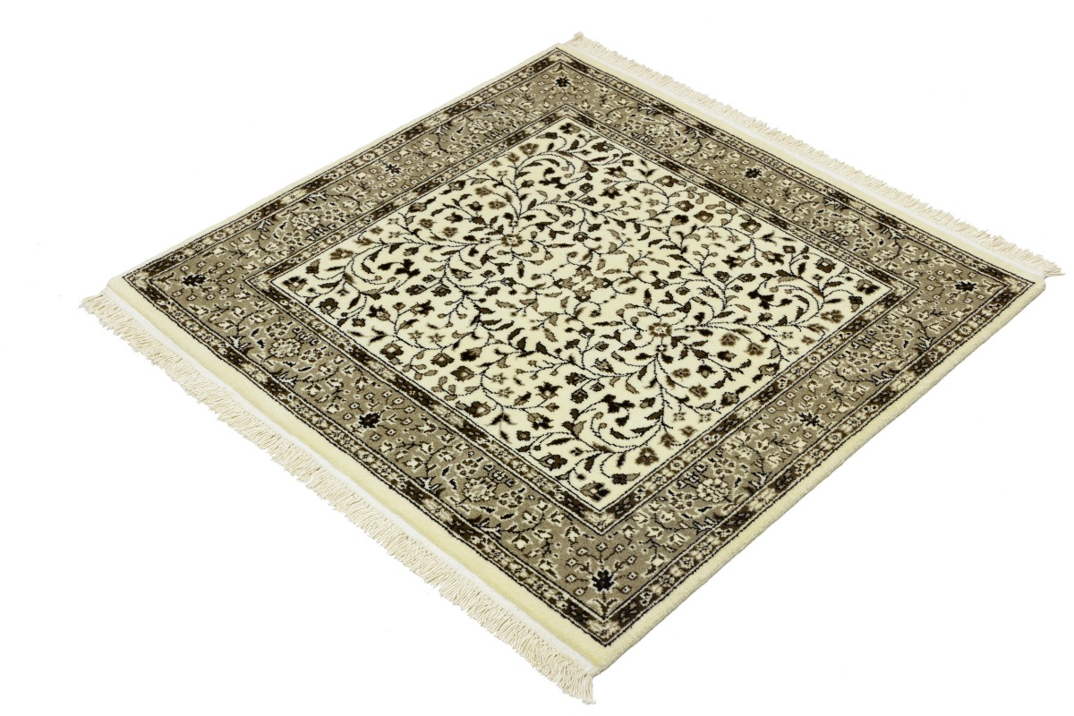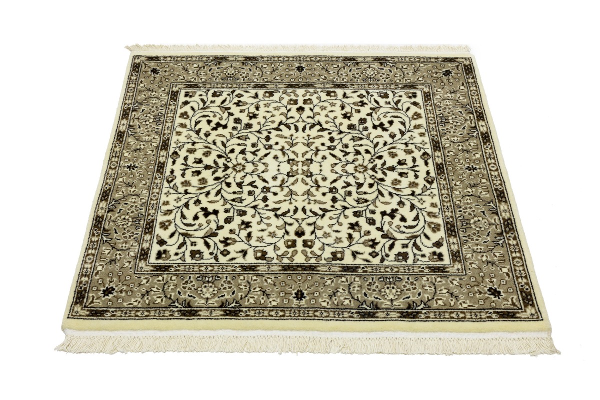 Cream Beige Floral 3X3 Kirman Oriental Square Rug