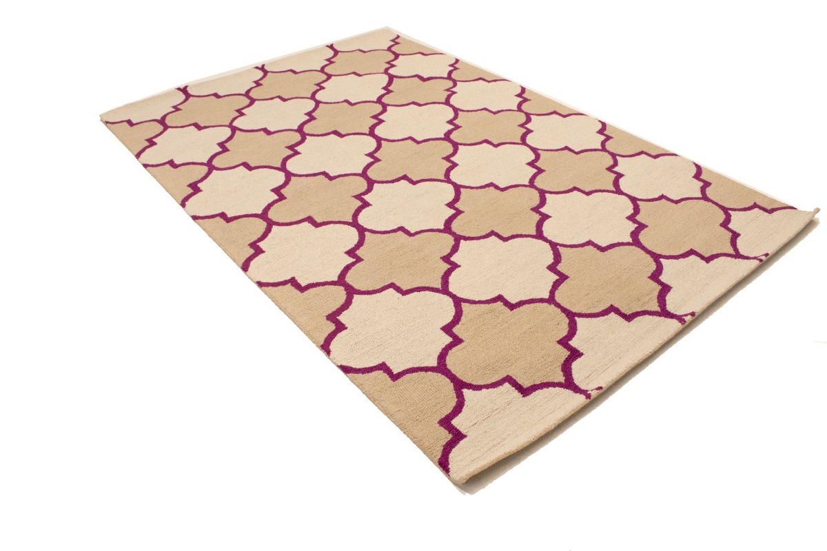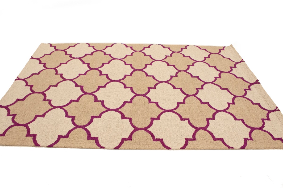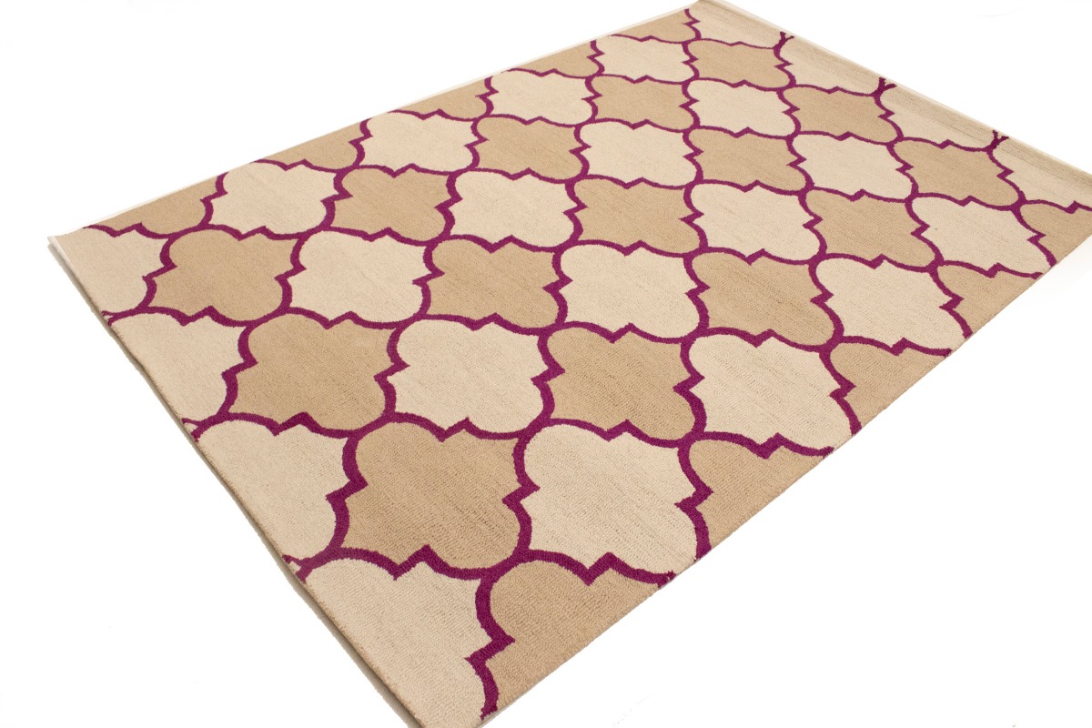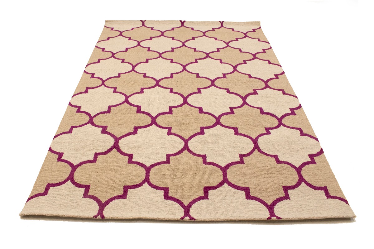 Cream Beige Fuchsia Tie-Dye 5X8 Hand-Tufted Modern Rug