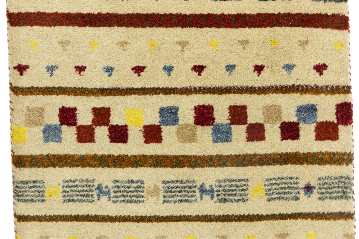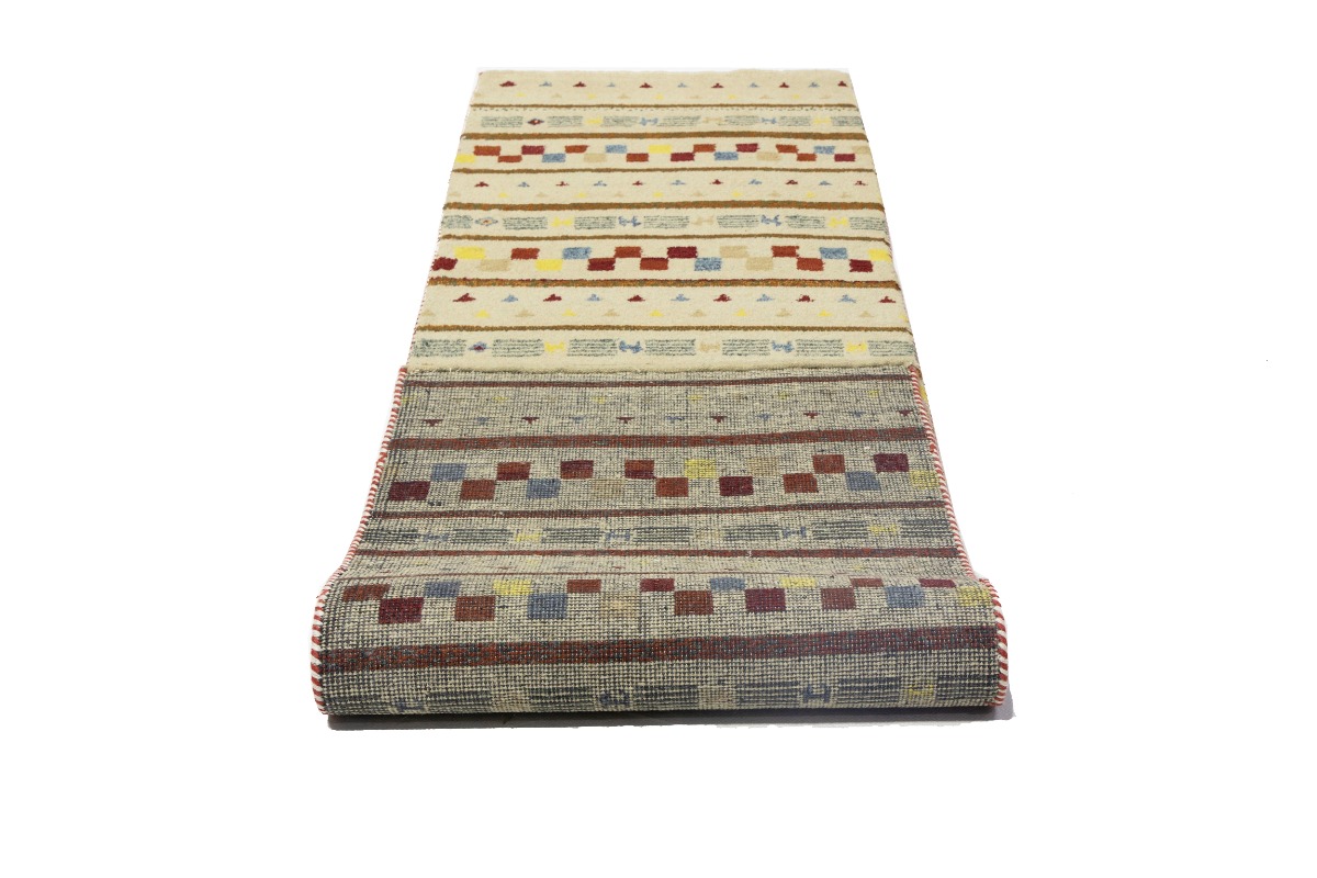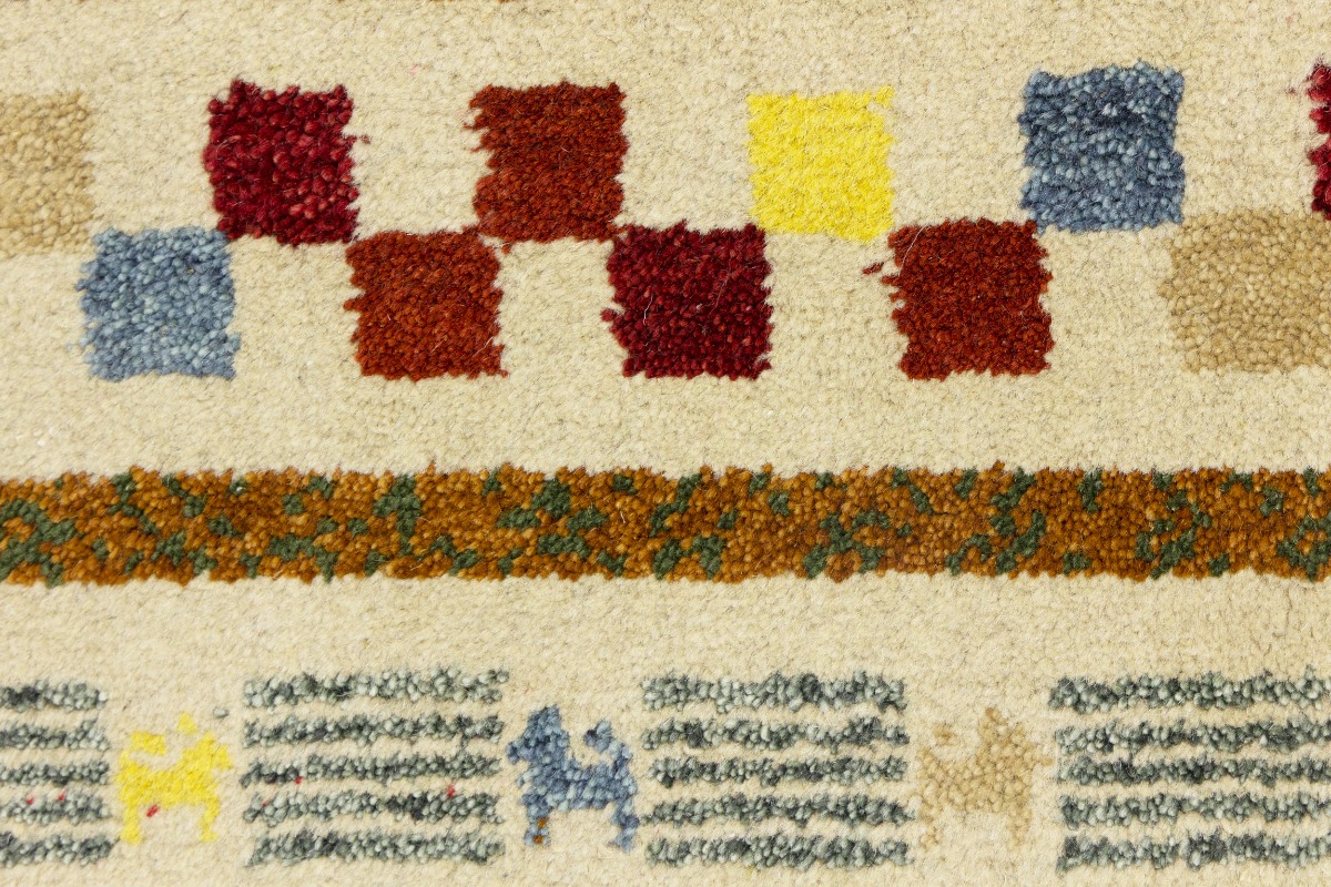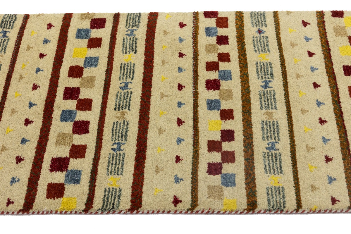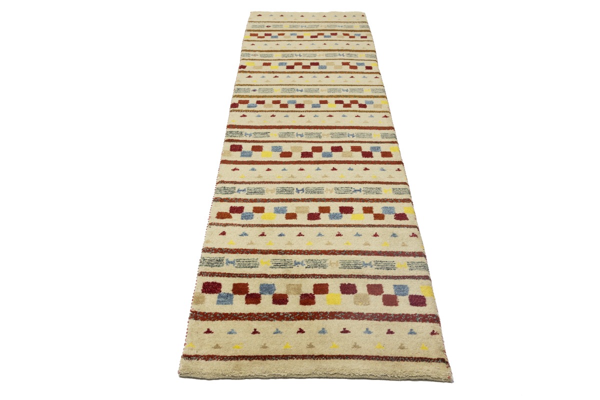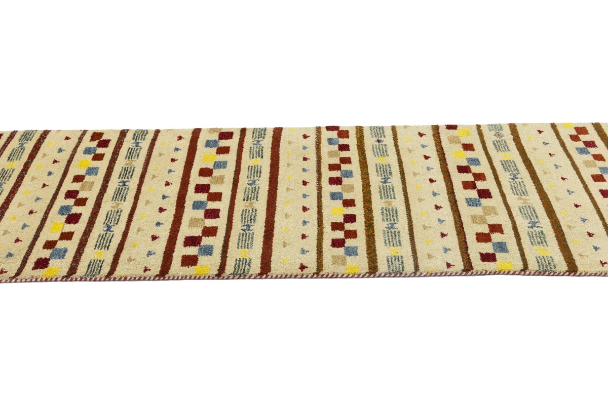 Cream/Beige Pictorial Tribal 2'6X9'7 Indo-Gabbeh Oriental Runner Rug