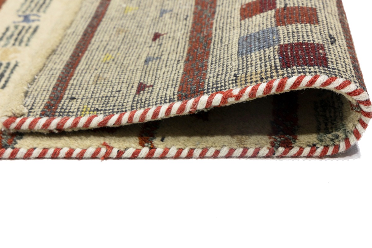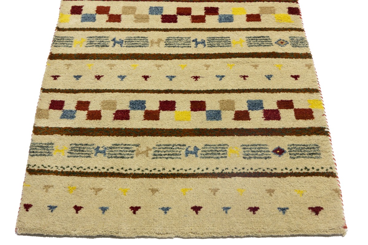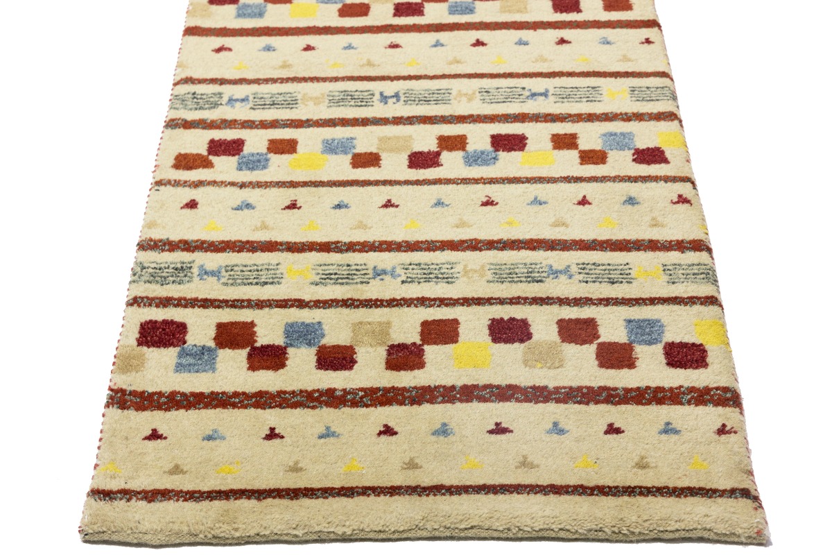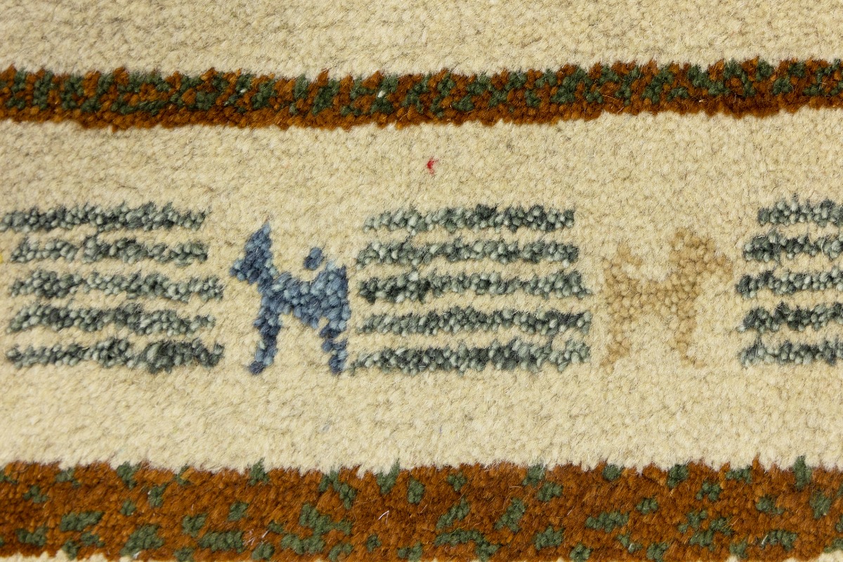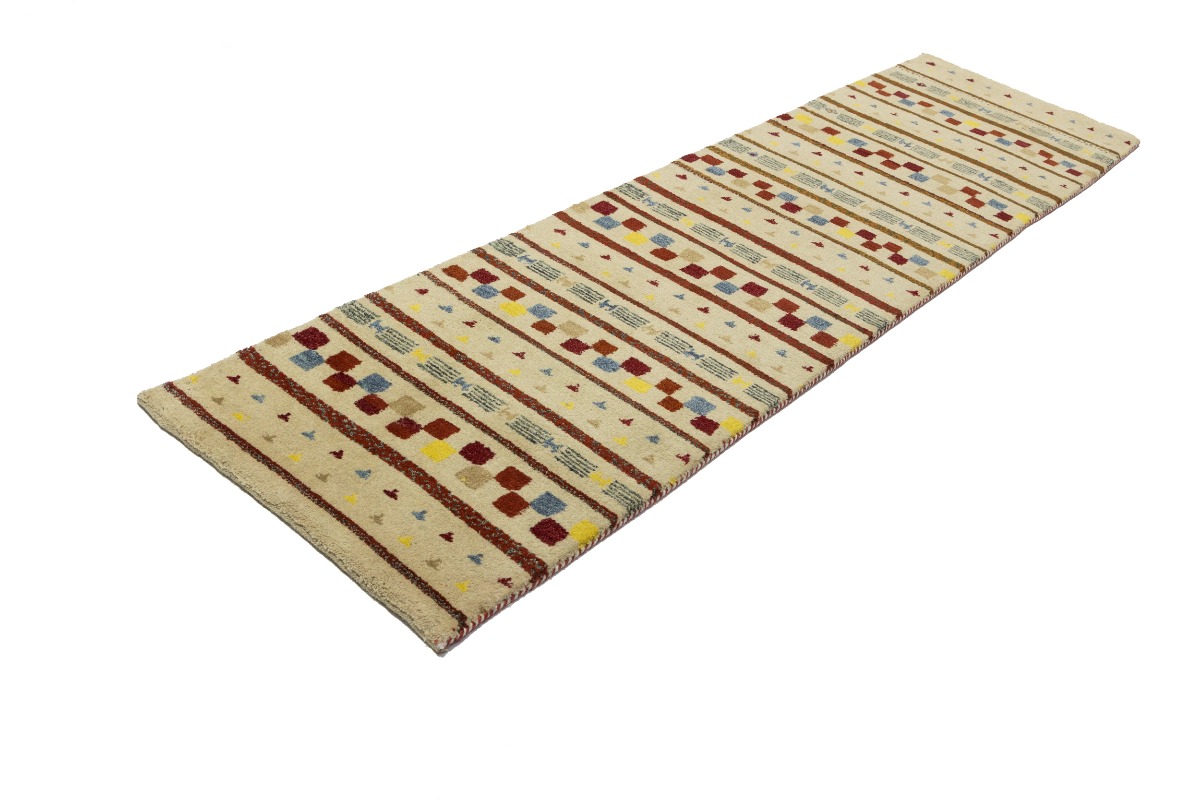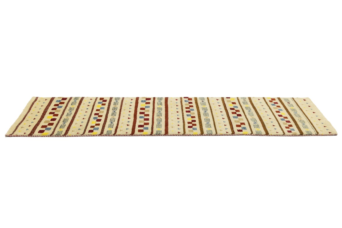 Cream/Beige Pictorial Tribal 2'6X9'7 Indo-Gabbeh Oriental Runner Rug