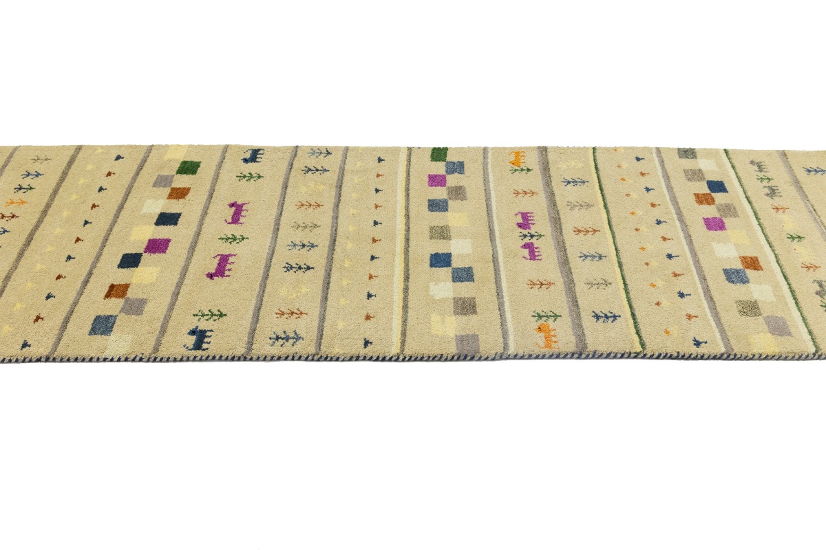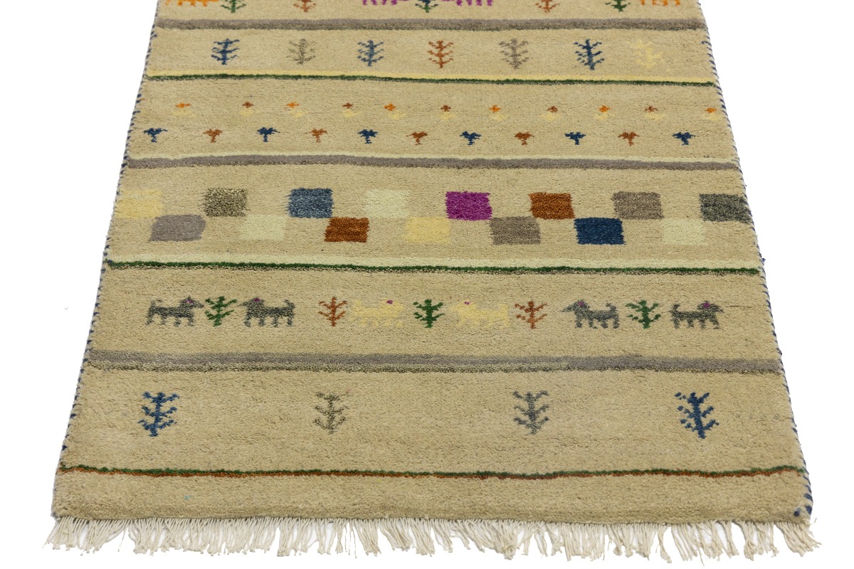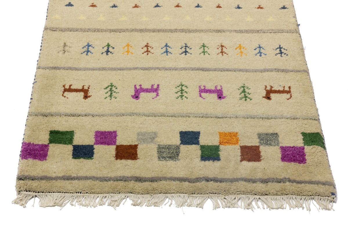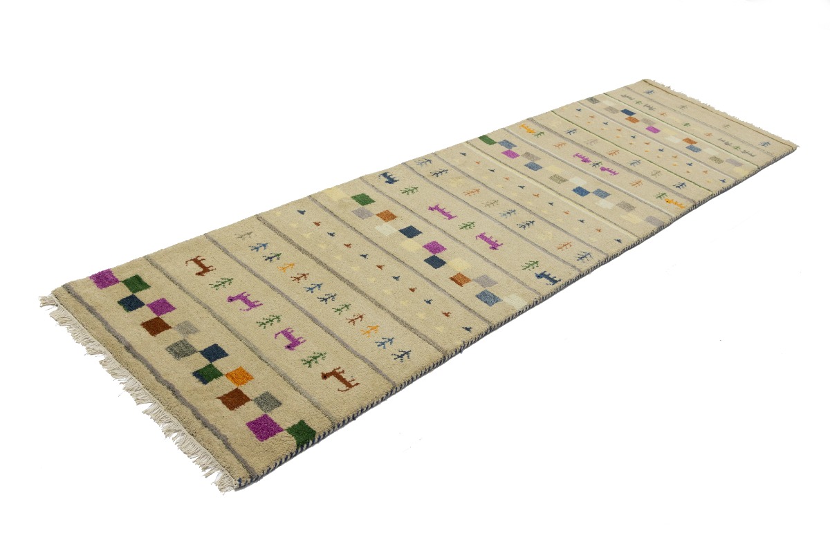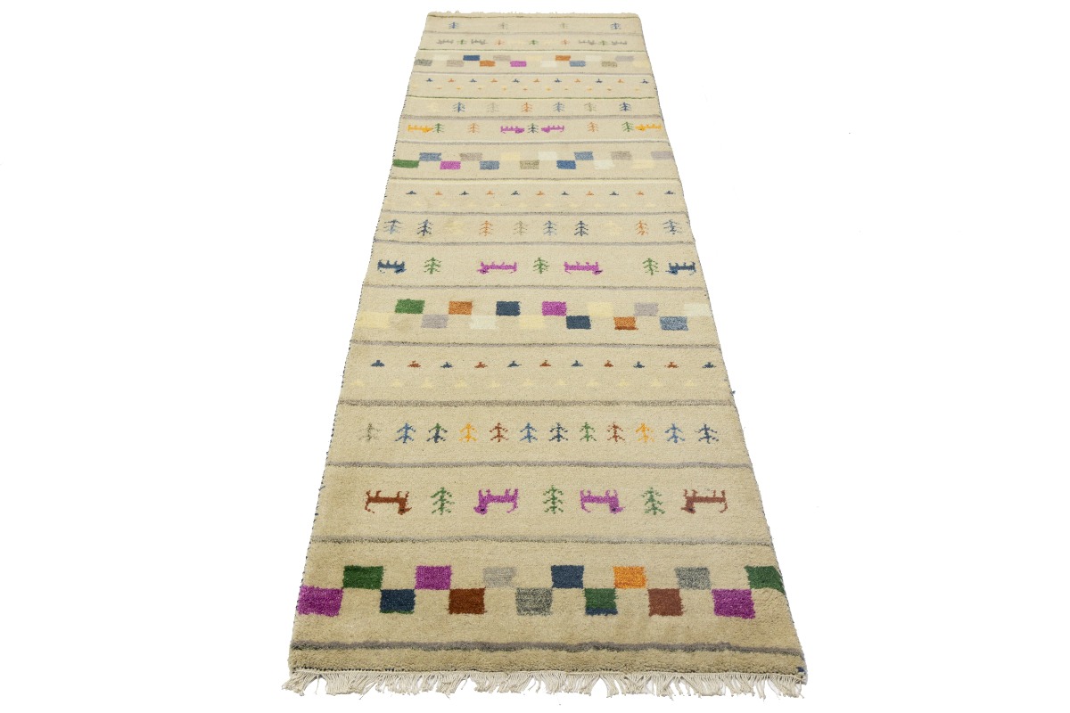 Cream/Beige Pictorial Tribal 2'7X9'8 Indo-Gabbeh Oriental Runner Rug