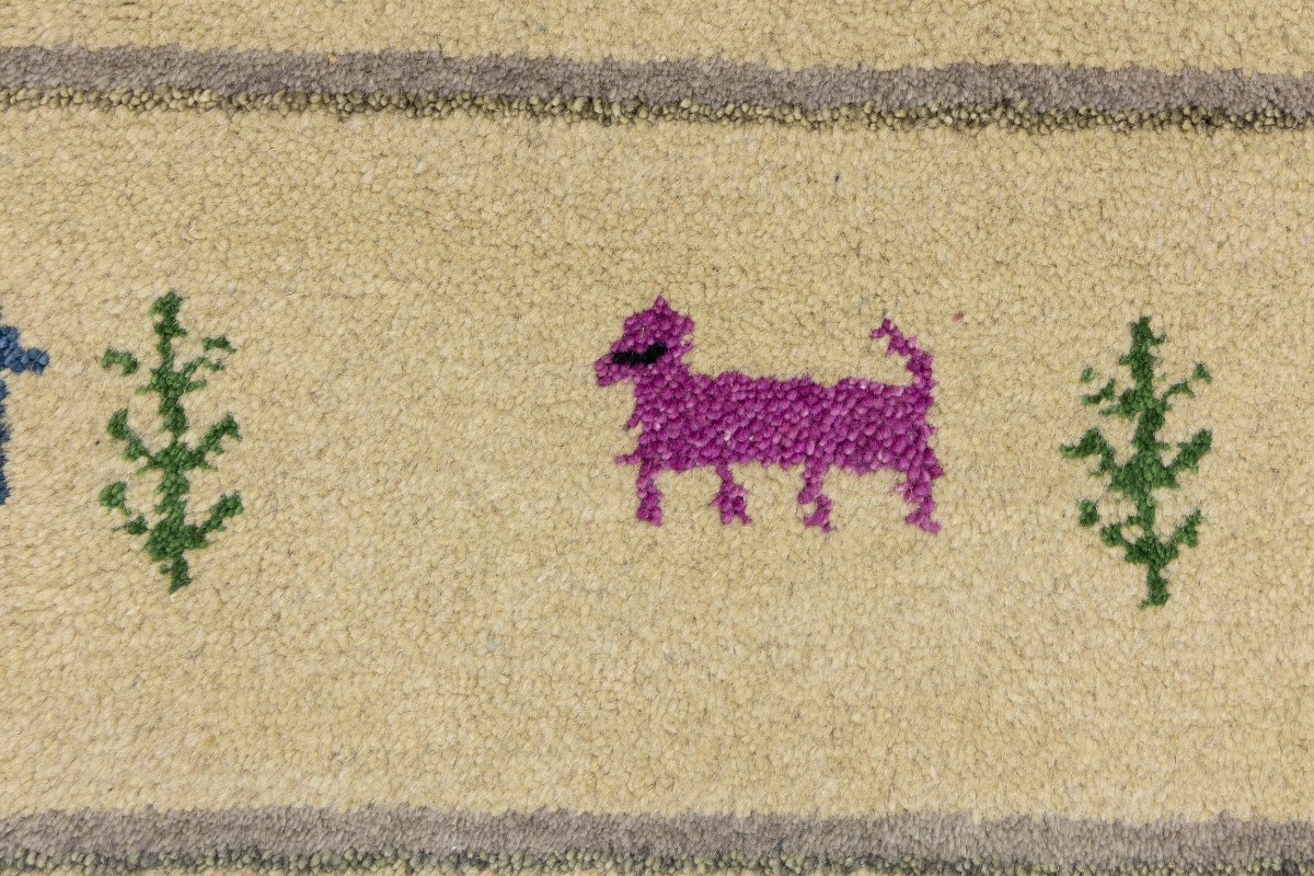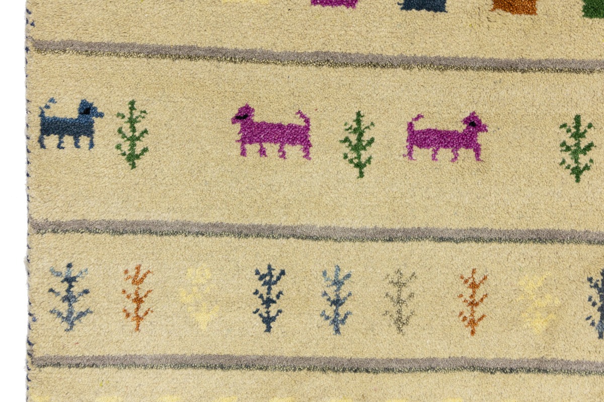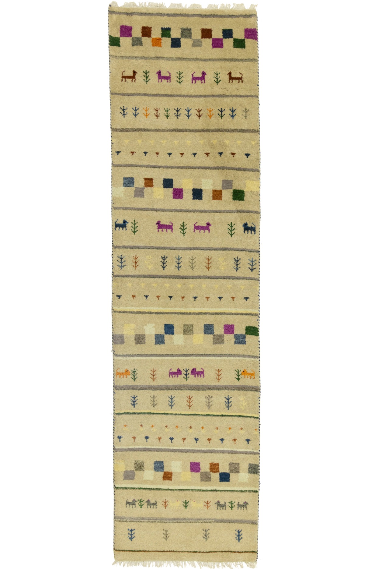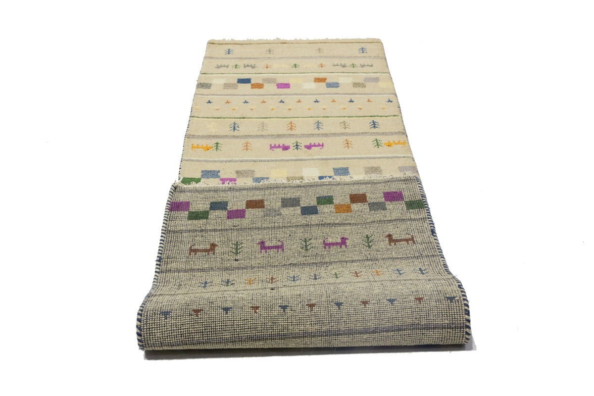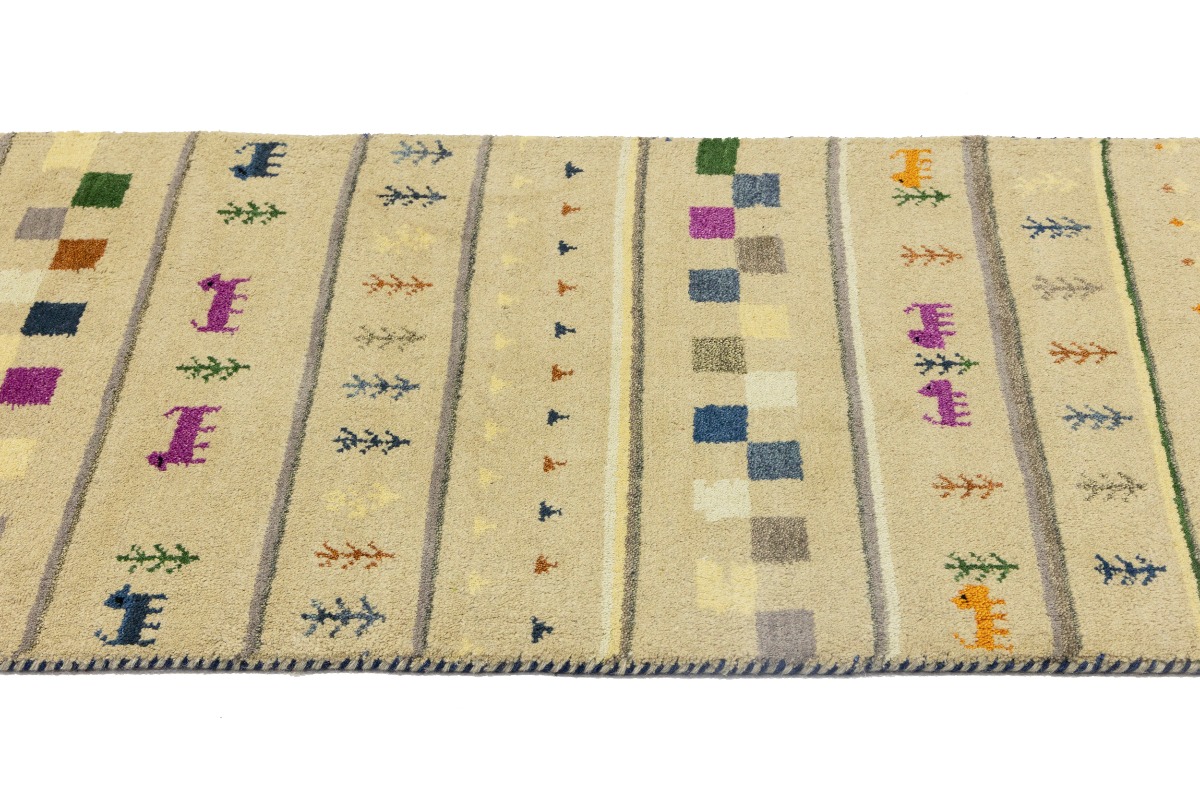 Cream/Beige Pictorial Tribal 2'7X9'8 Indo-Gabbeh Oriental Runner Rug