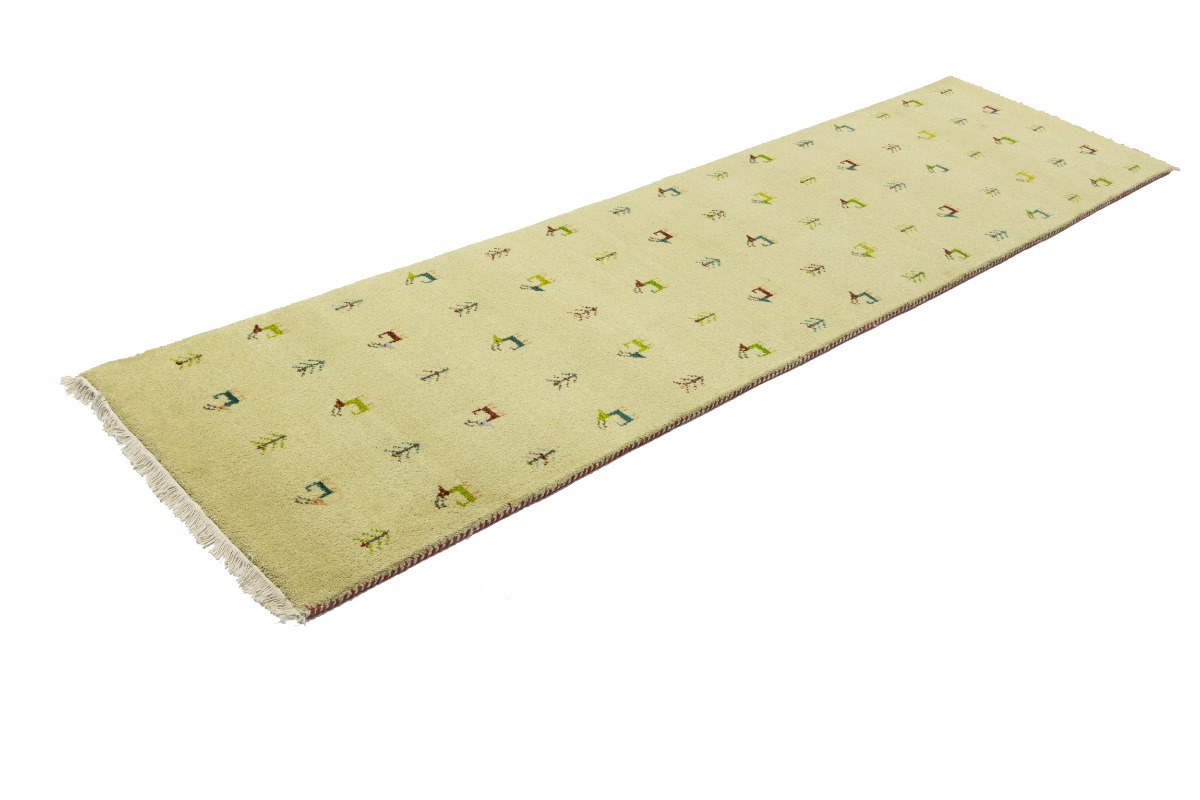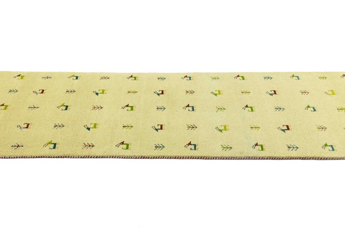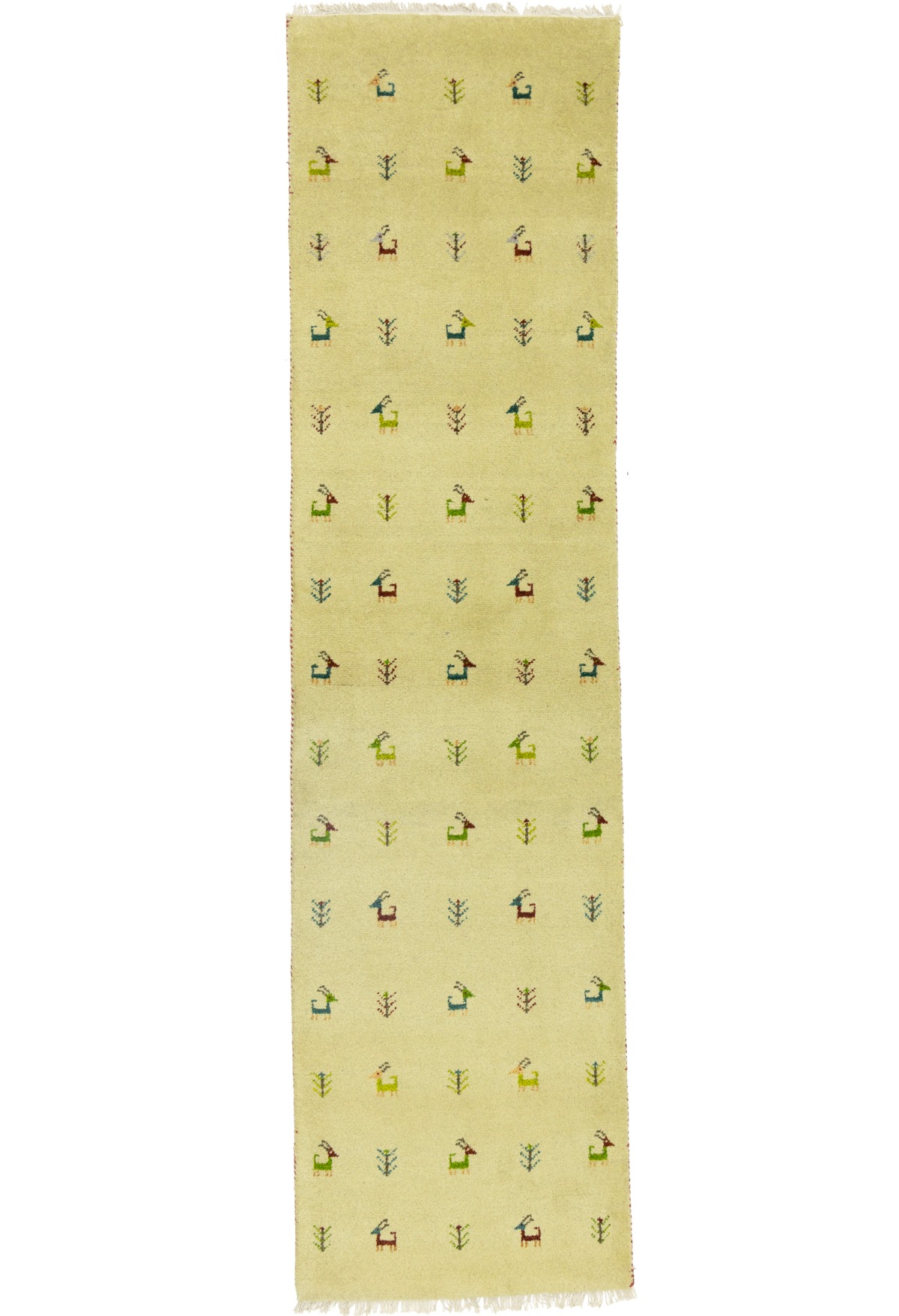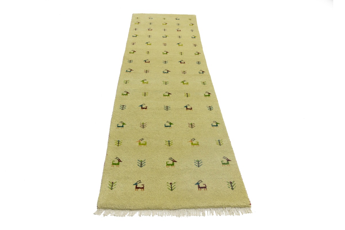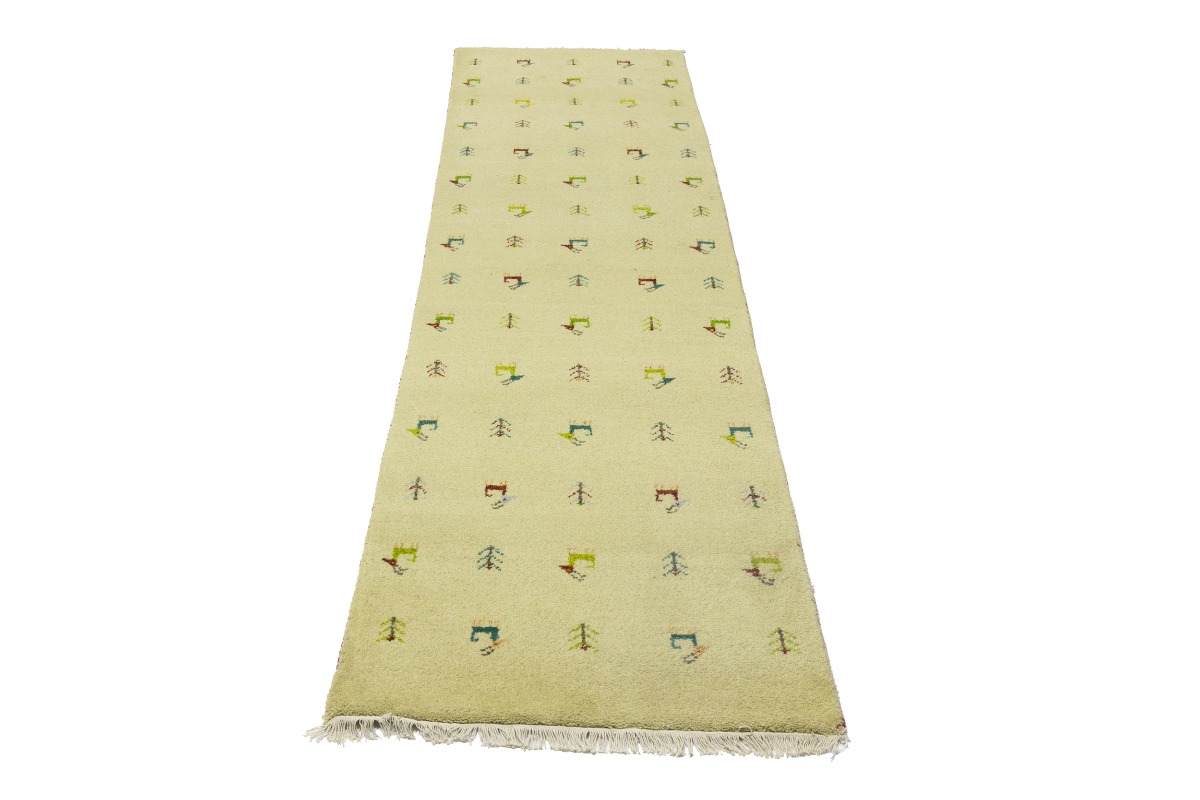 Cream/Beige Pictorial Tribal 3X10 Indo-Gabbeh Oriental Runner Rug