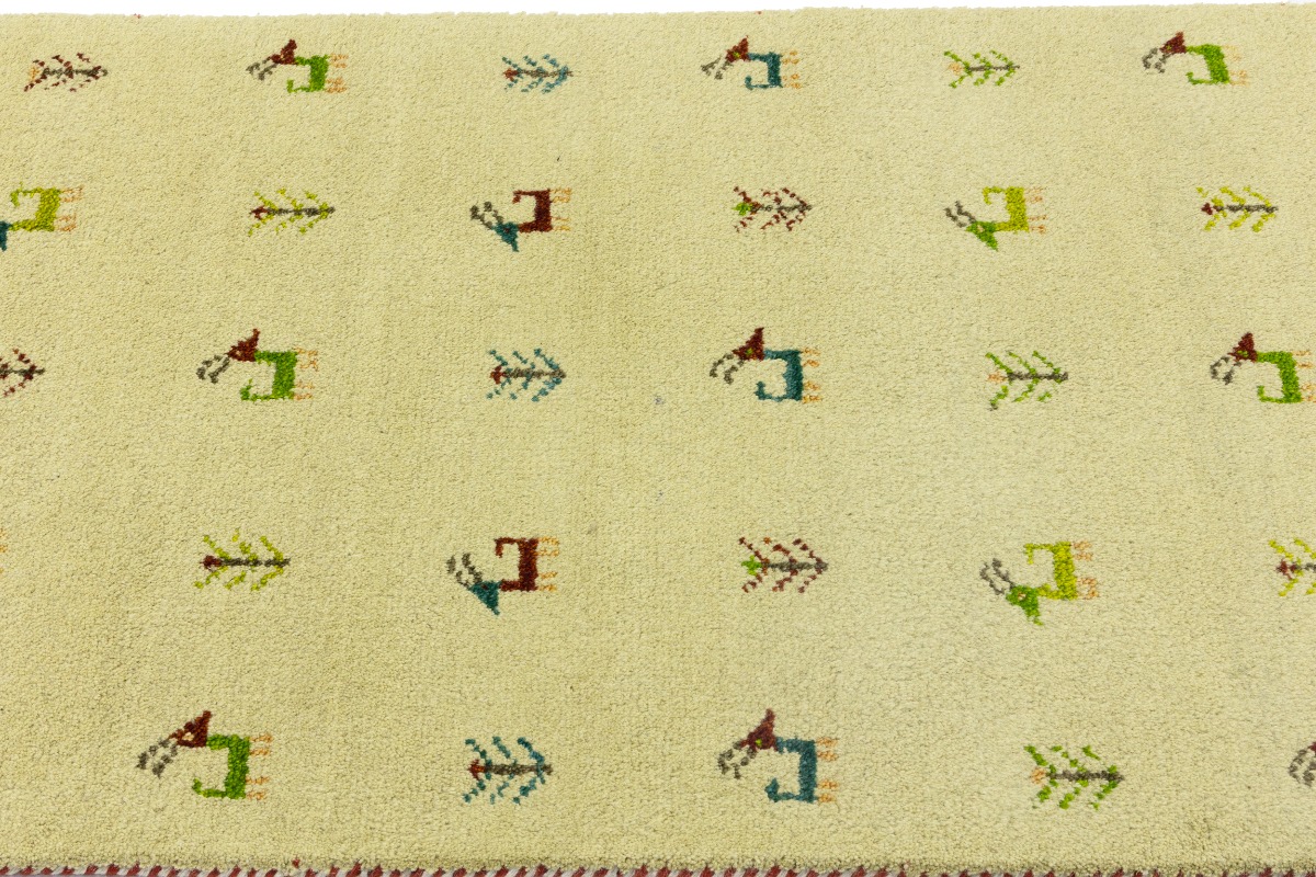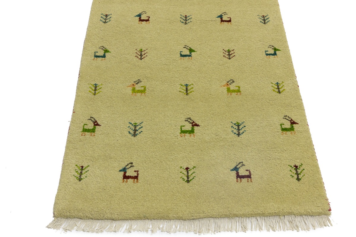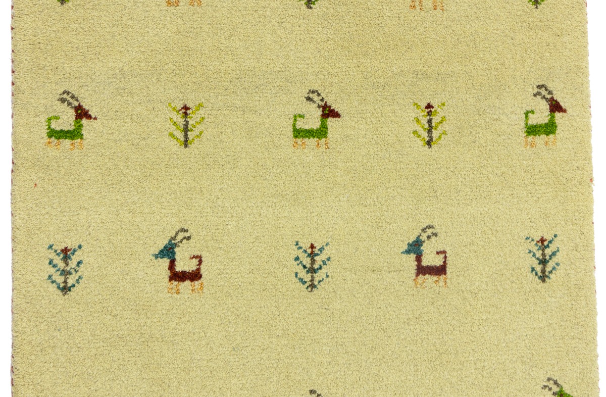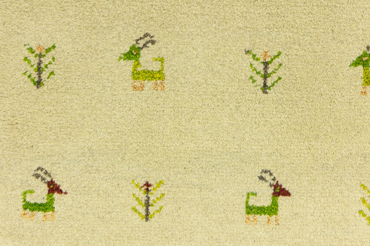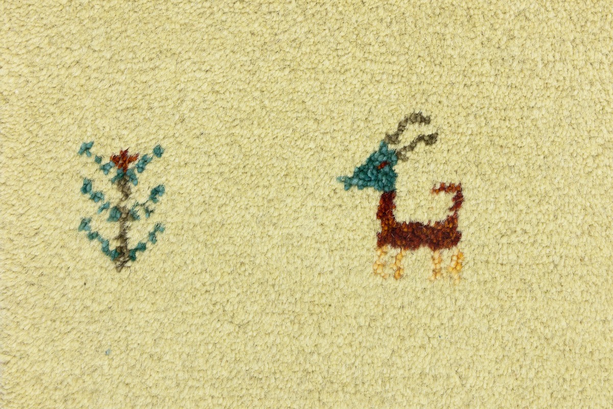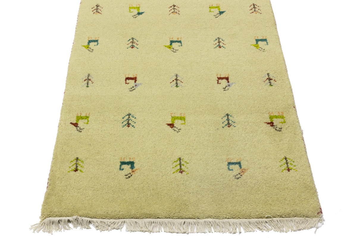 Cream/Beige Pictorial Tribal 3X10 Indo-Gabbeh Oriental Runner Rug