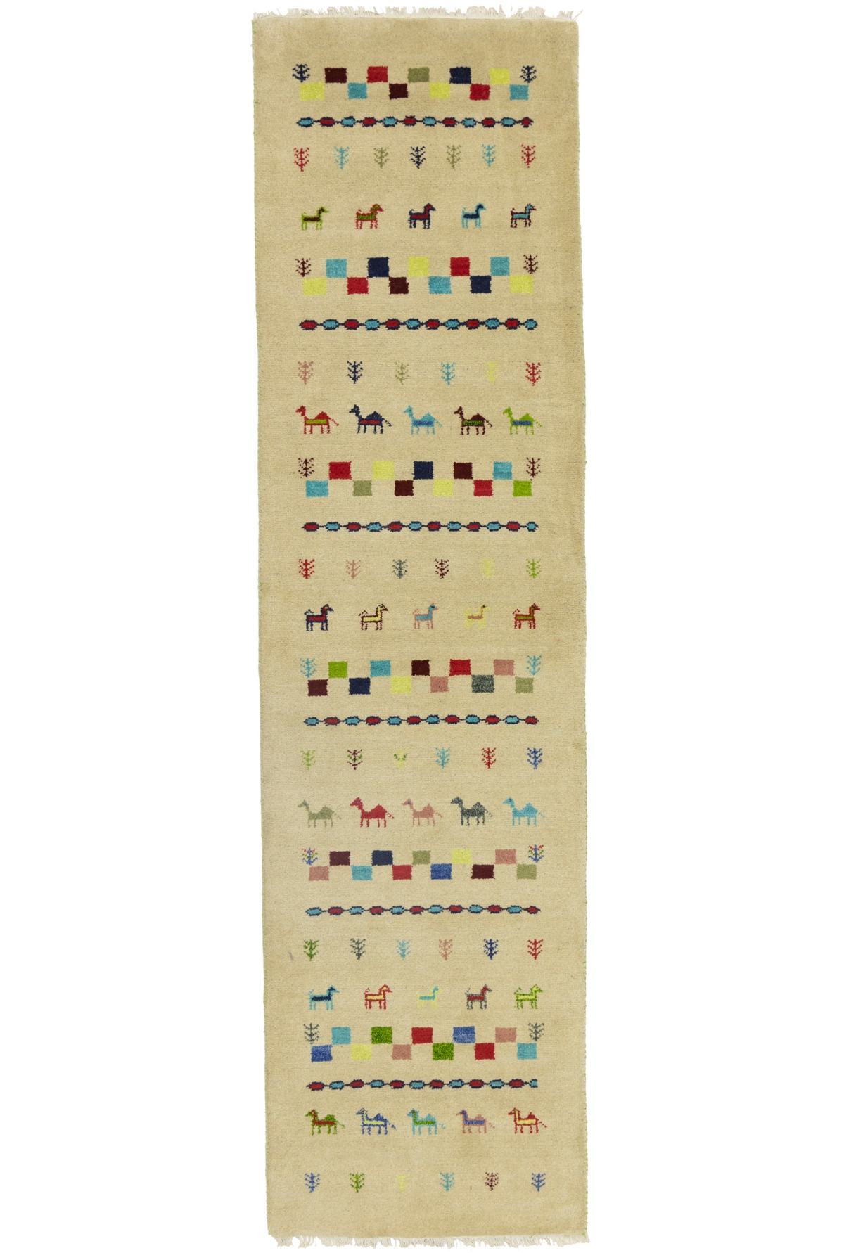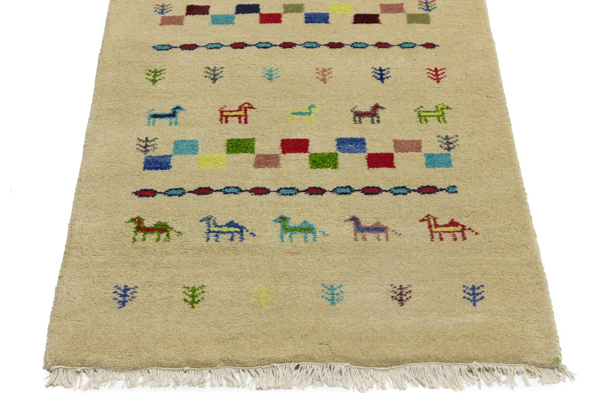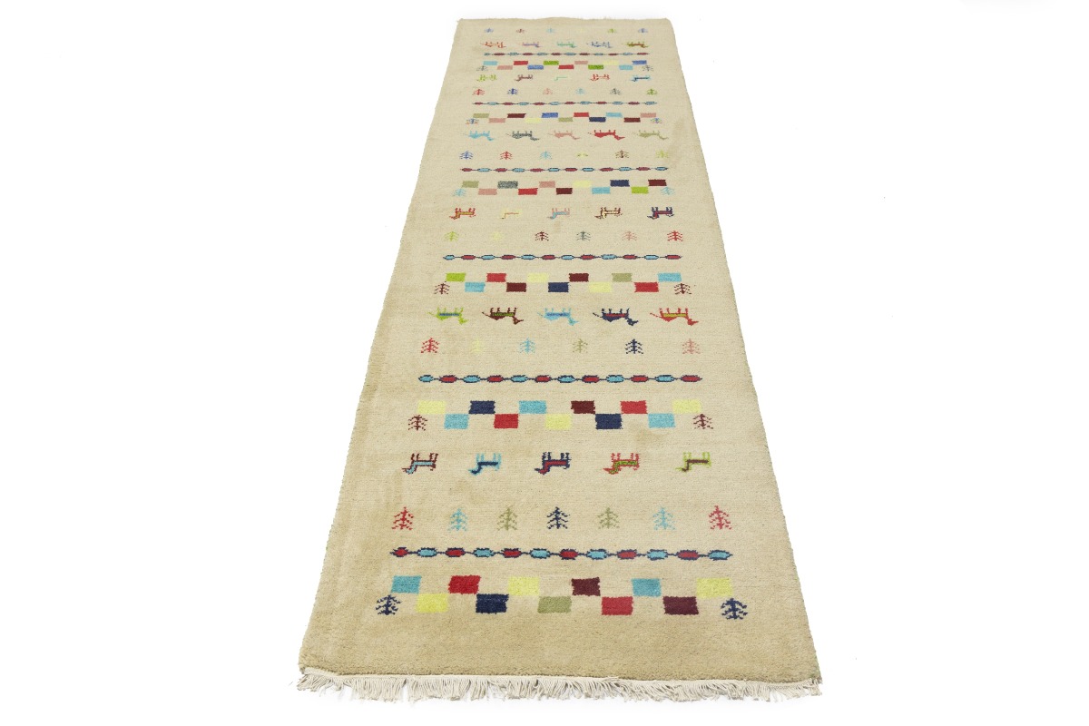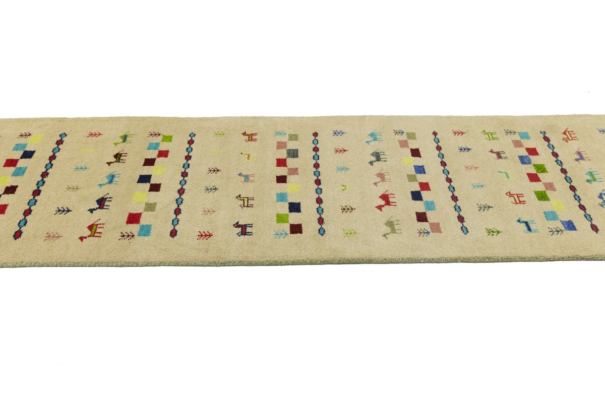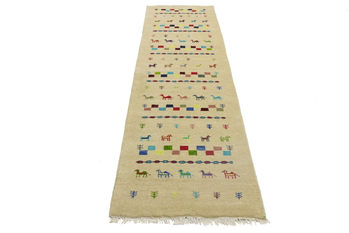 Cream/Beige Pictorial Tribal 3X10 Indo-Gabbeh Oriental Runner Rug