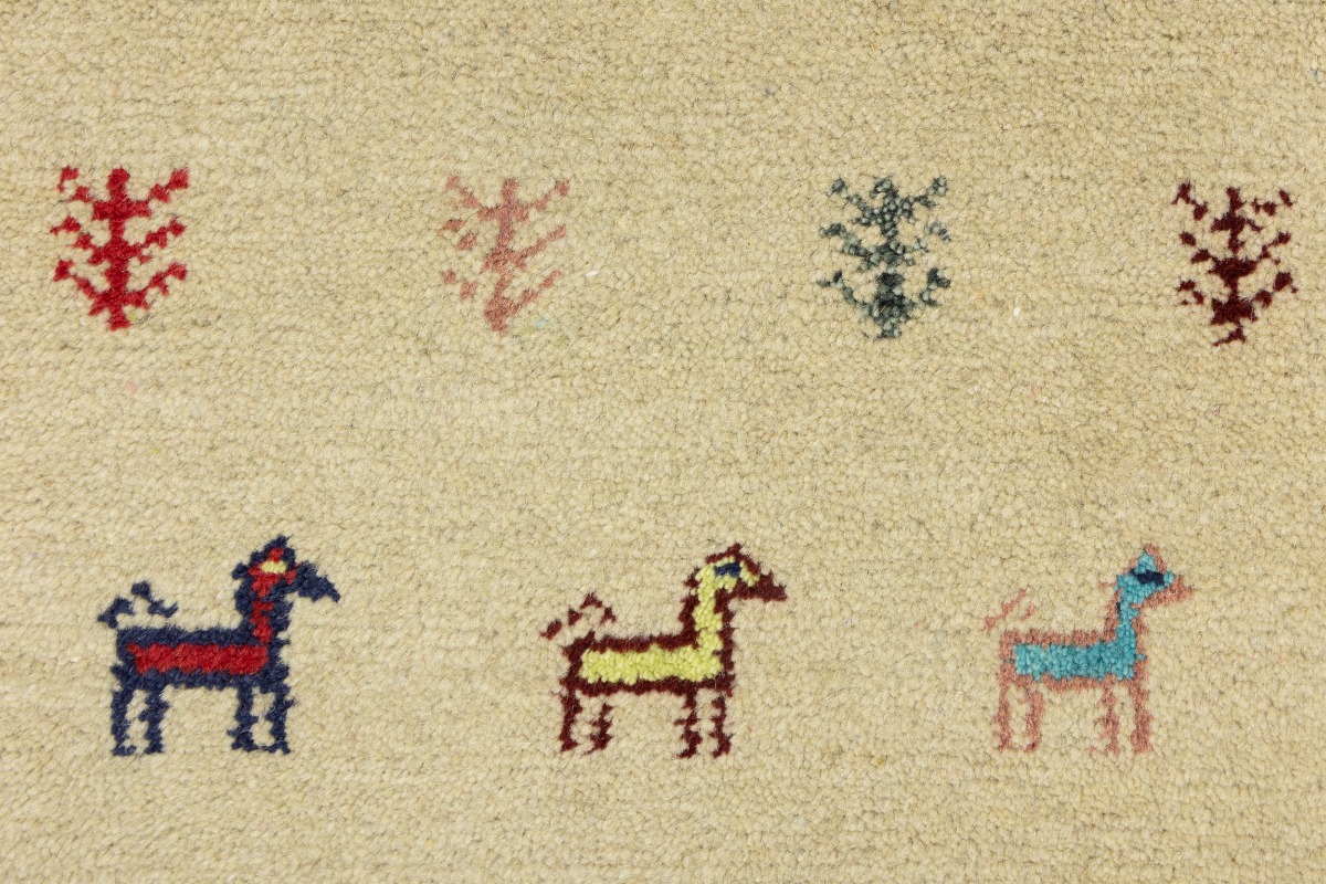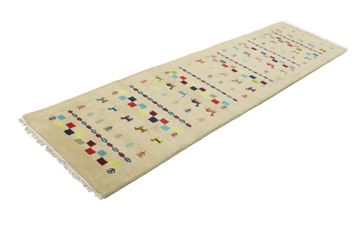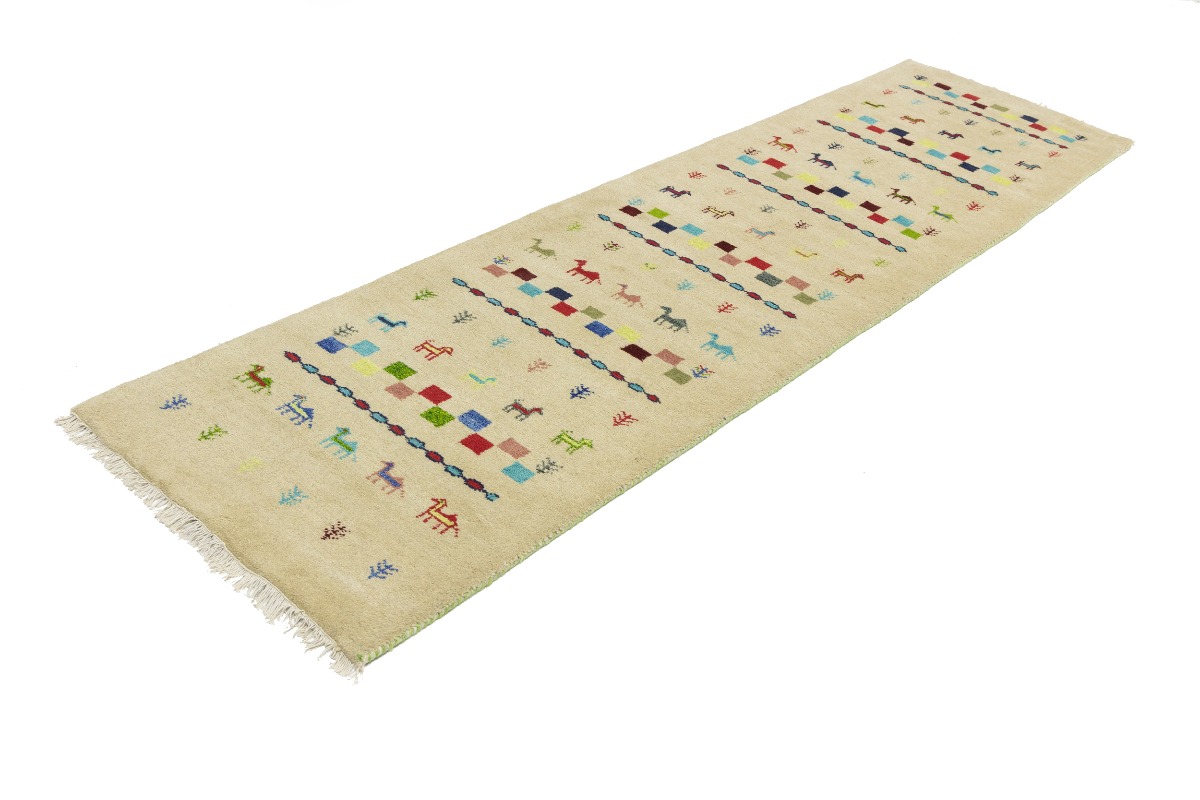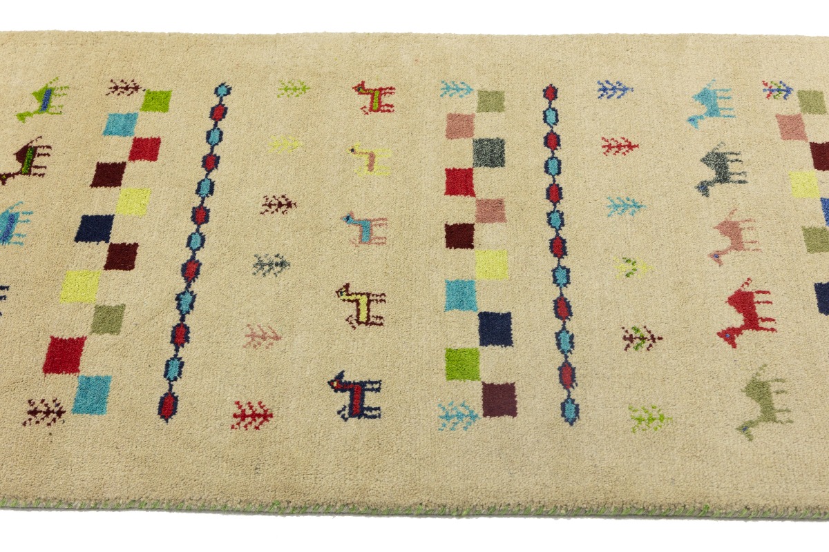 Cream/Beige Pictorial Tribal 3X10 Indo-Gabbeh Oriental Runner Rug
