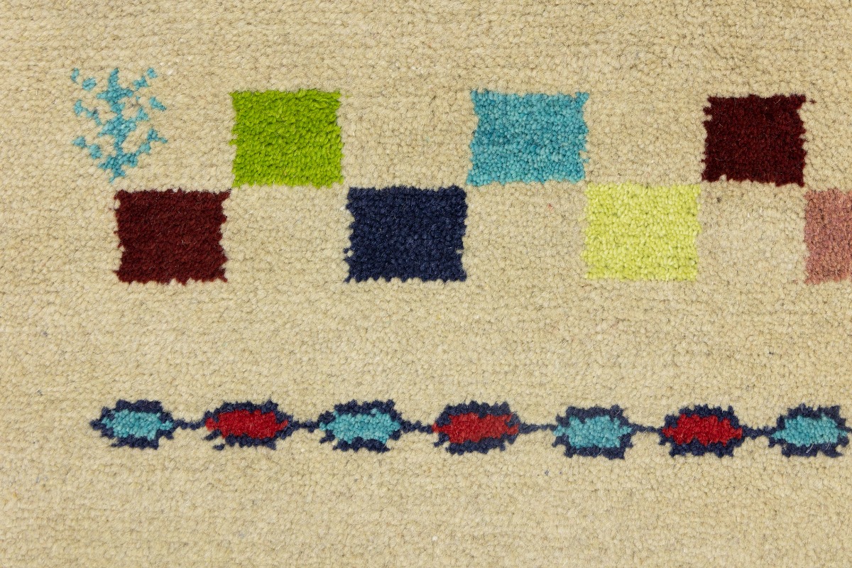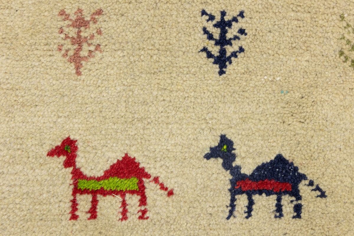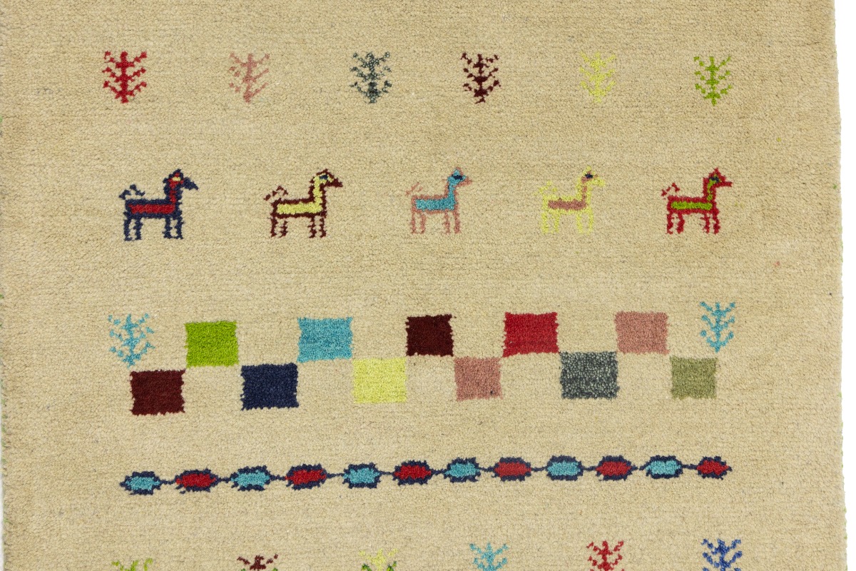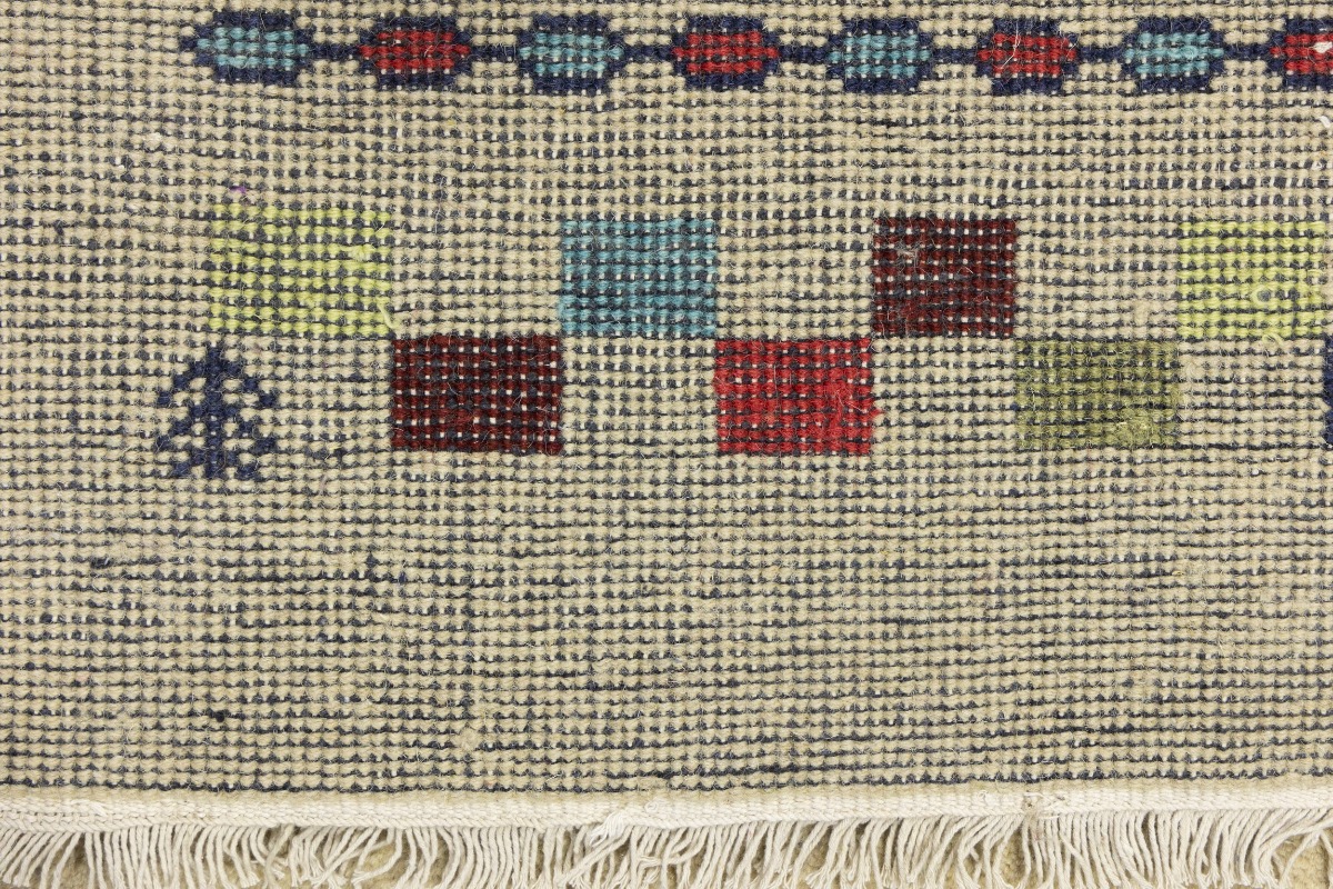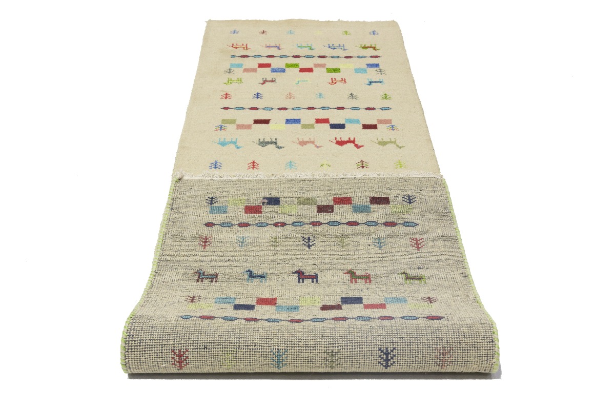 Cream/Beige Pictorial Tribal 3X10 Indo-Gabbeh Oriental Runner Rug