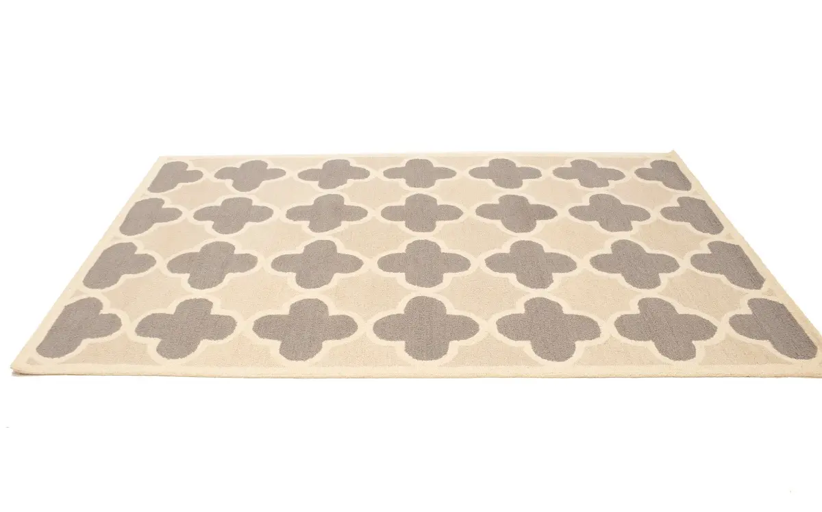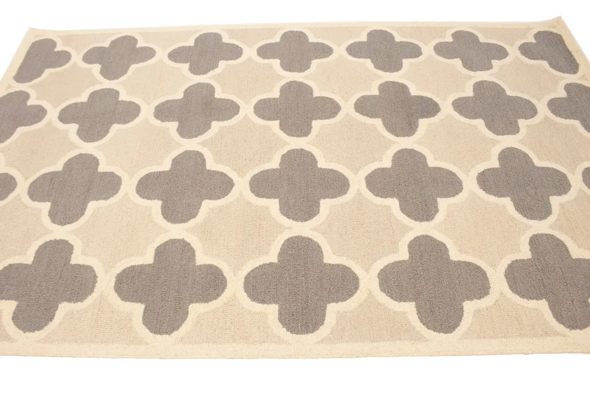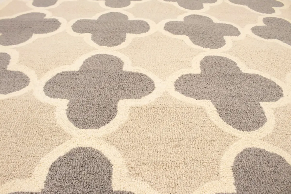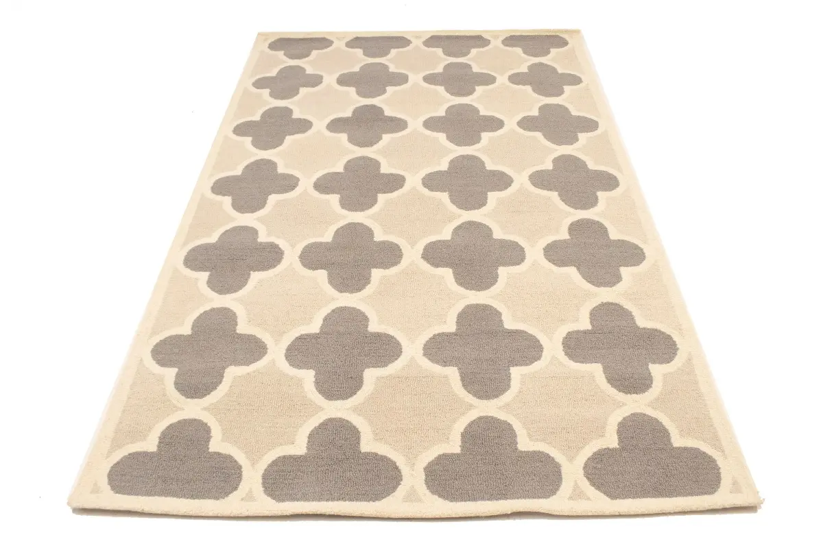 Cream Beige Taupe Trellis 5X8 Hand-Tufted Modern Rug