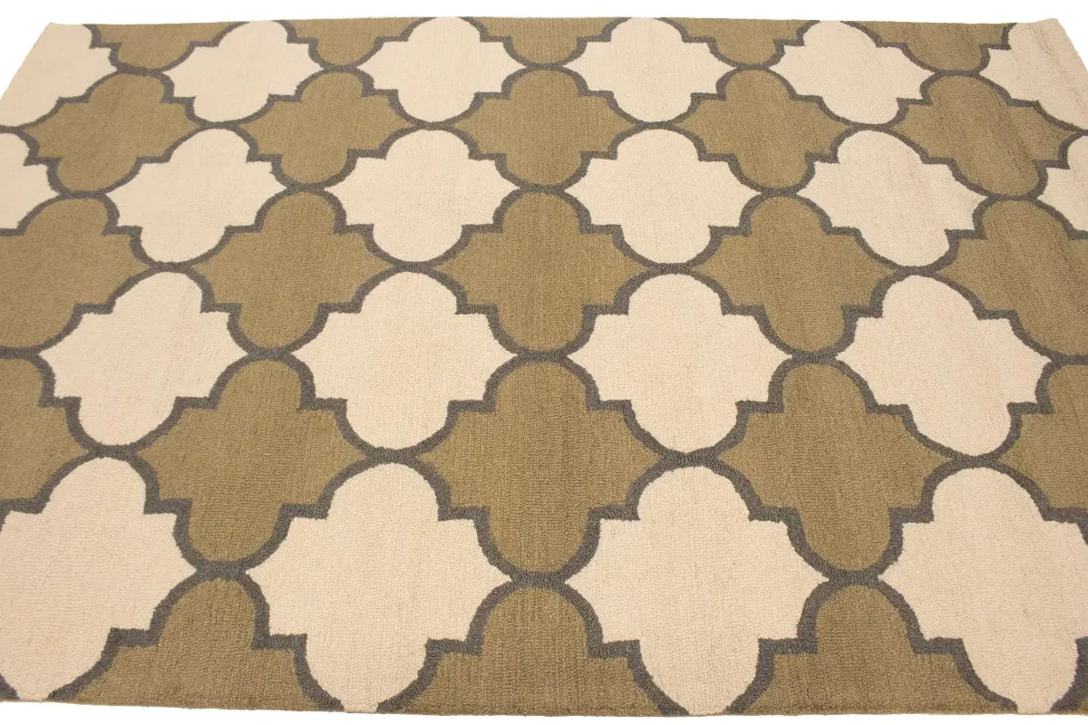 Rare Cream & Beige Trellis Contemporary 5X8 Hand-Tufted Modern Rug Plush Carpet