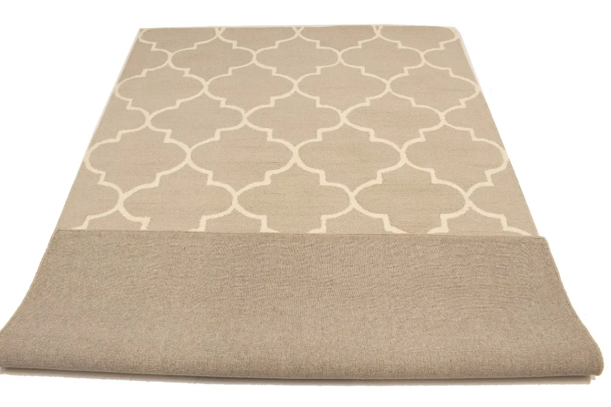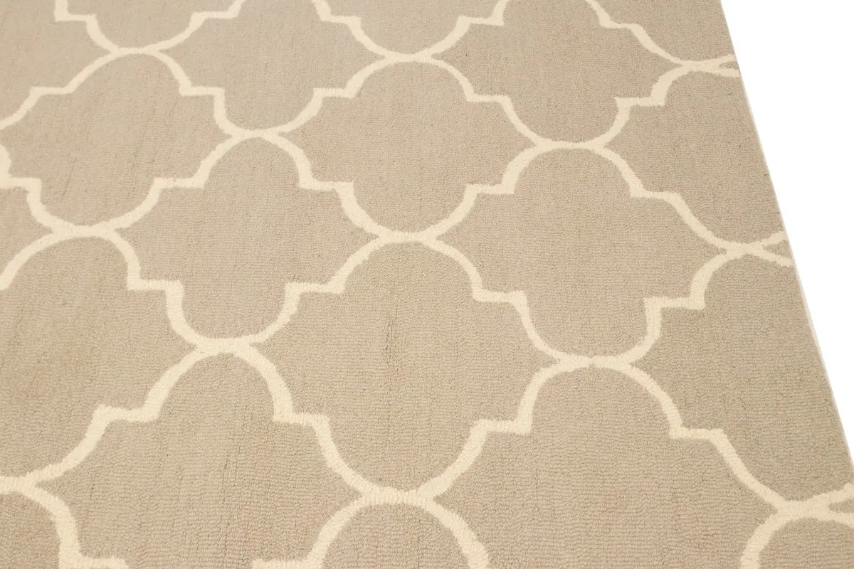 Cream & Beige Trellis Design Contemporary 5X8 Hand-Tufted Modern Rug Wool Carpet