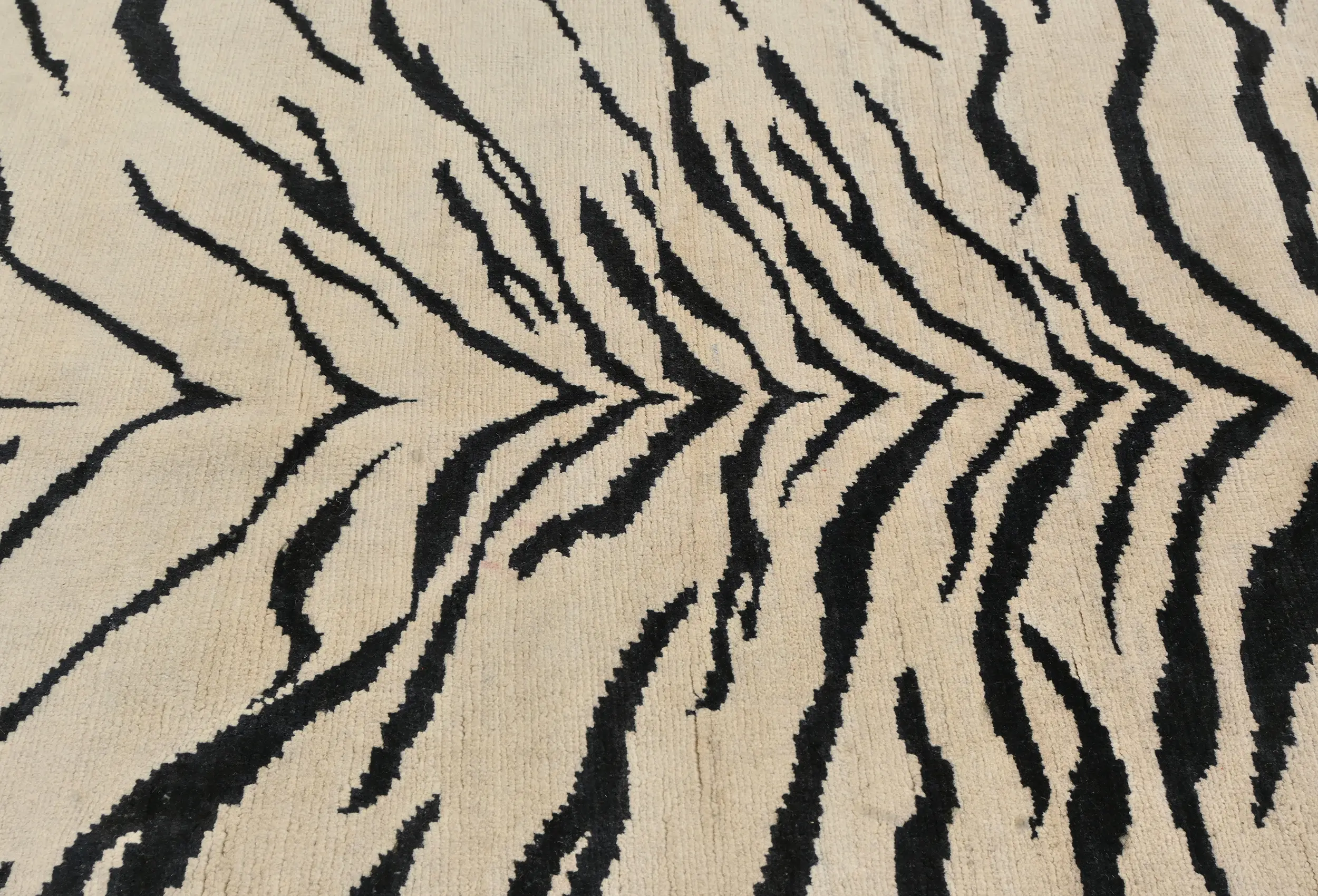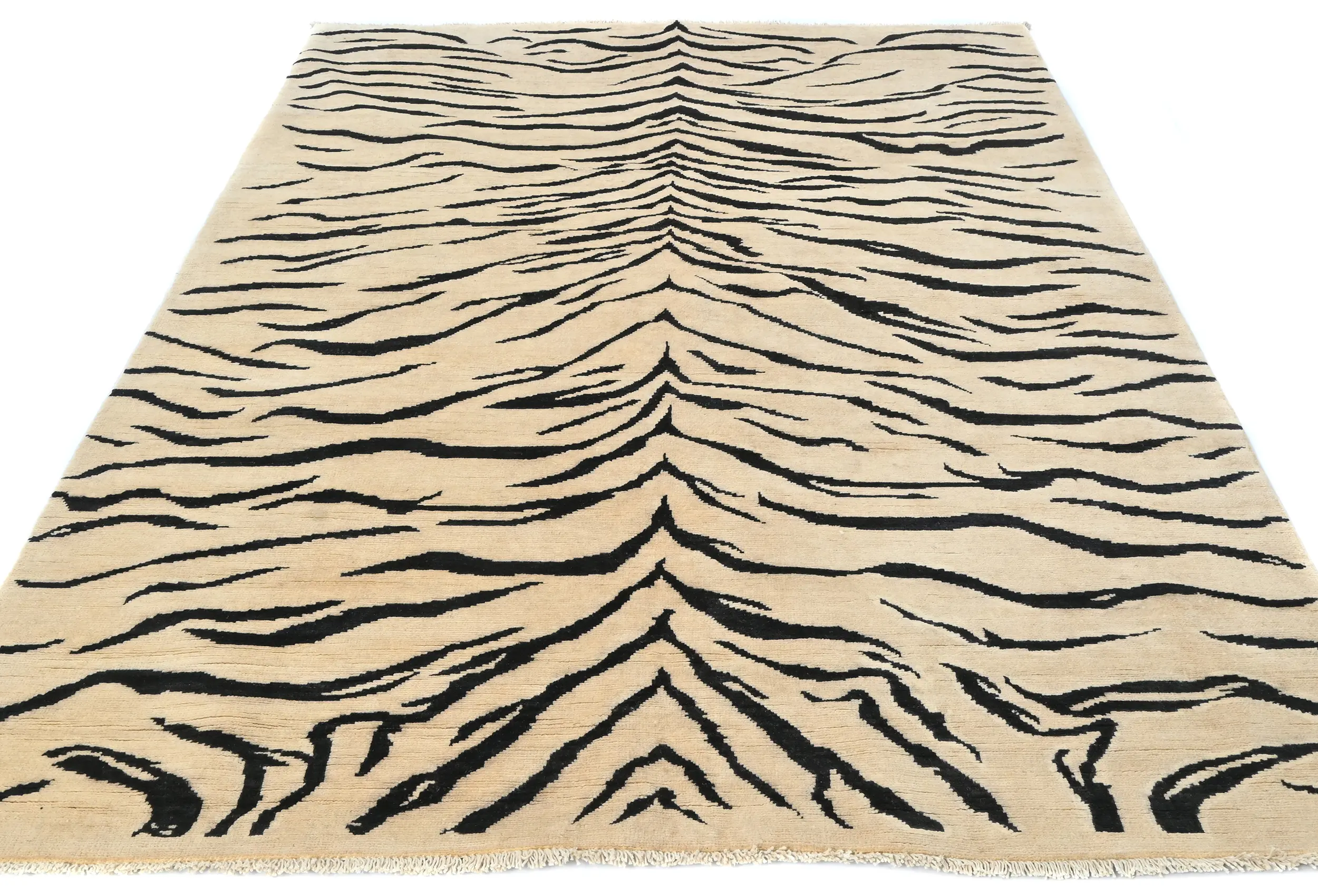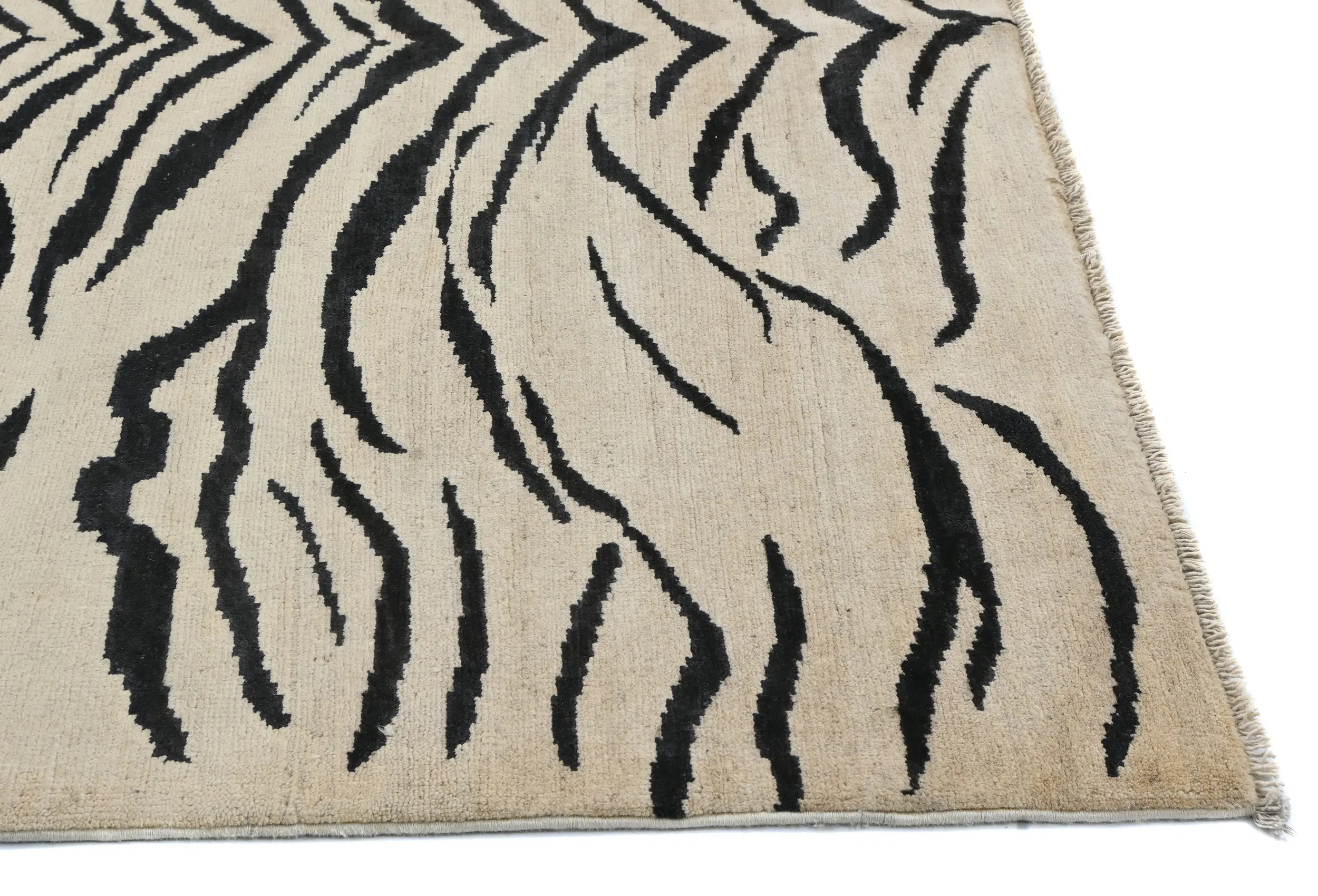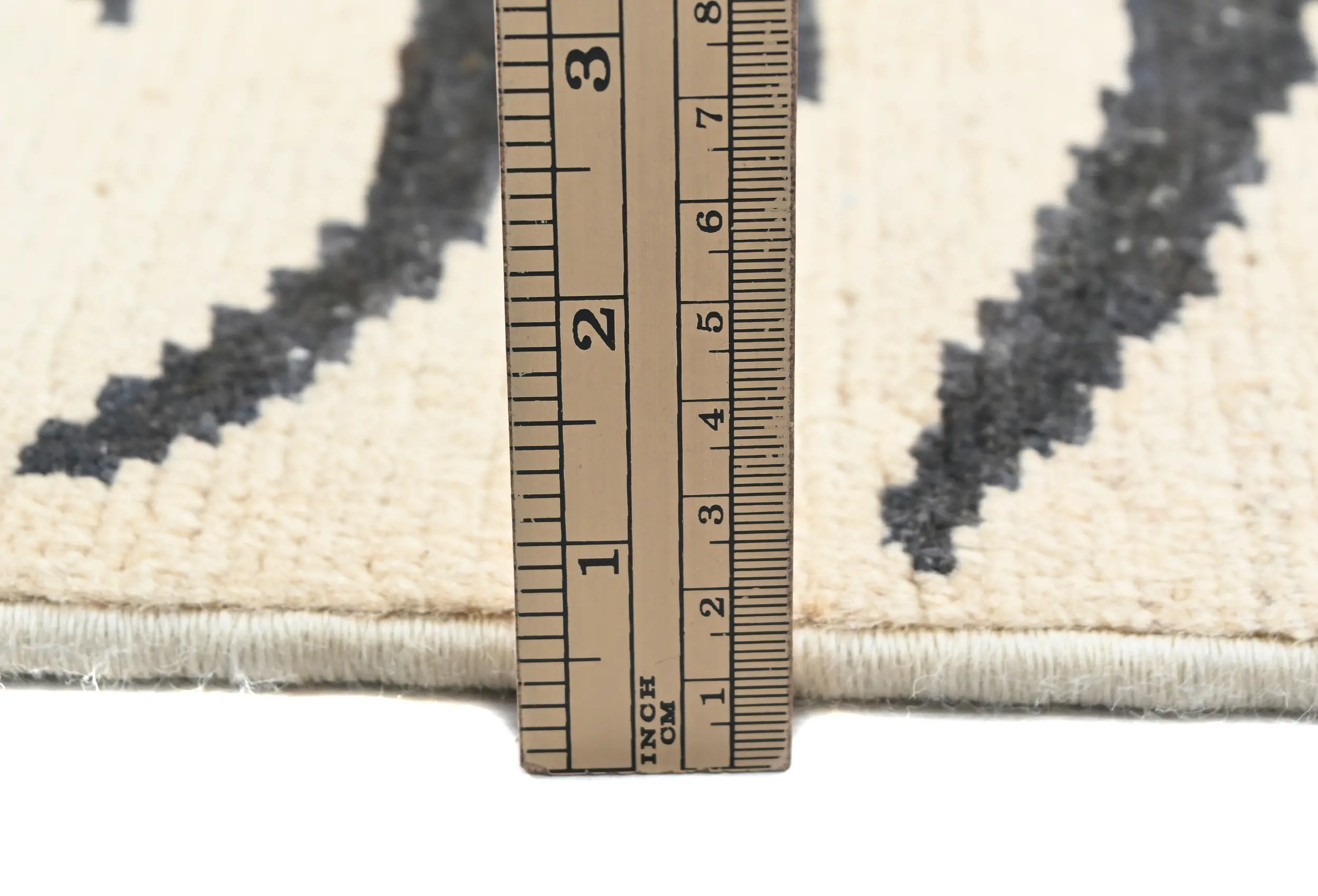 Cream & Black Abstract Modern 5X8 Kazak Pakistan Rug
