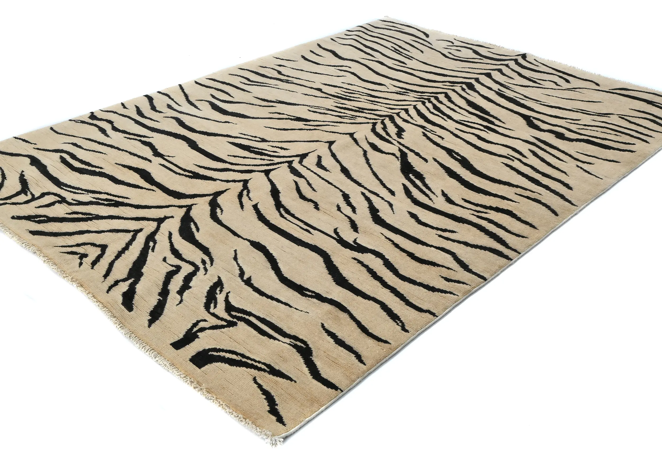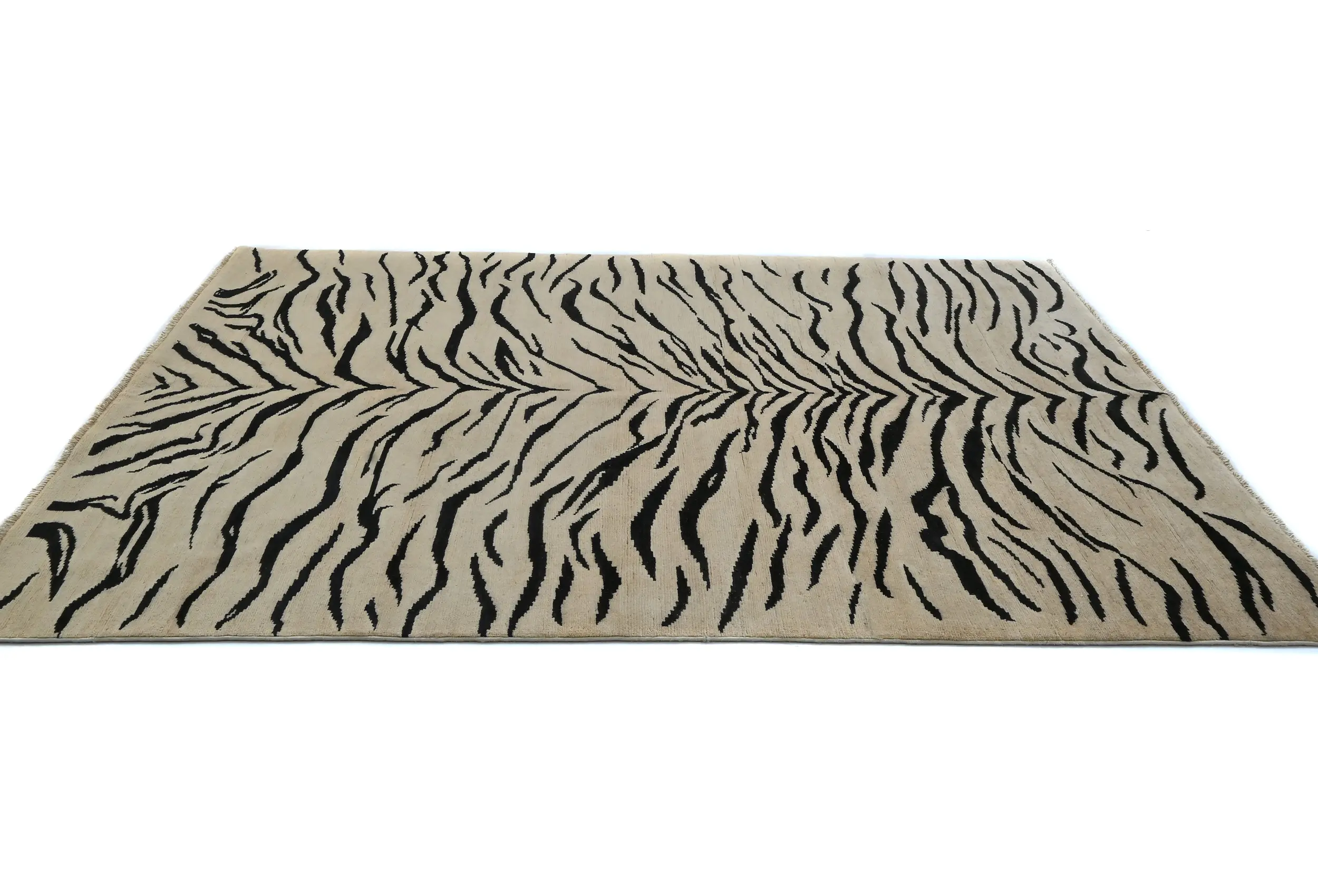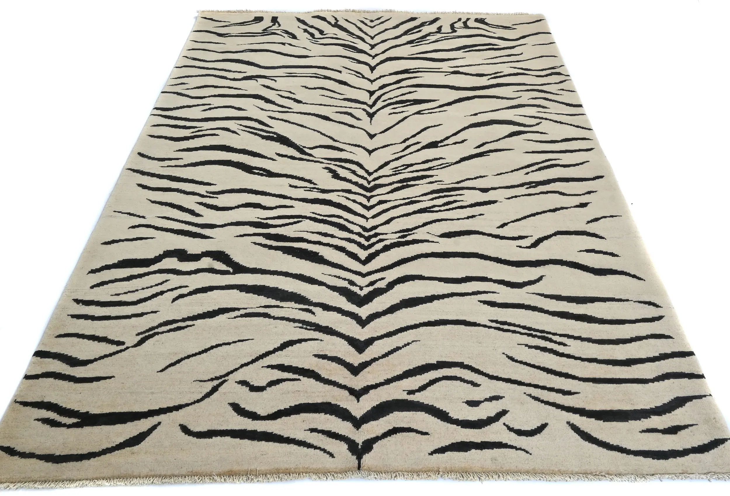 Hand Knotted 5X8 Cream & Black Oriental rug made with vegetable dyes (fine wool pile and cotton foundation), exceptional knot count, and appealing ancient designs. This Oriental rug never will go out of style and would be among your most valuable treasures.