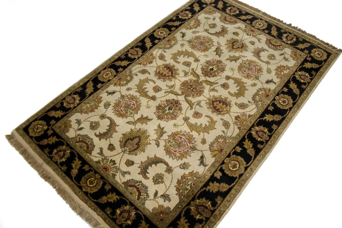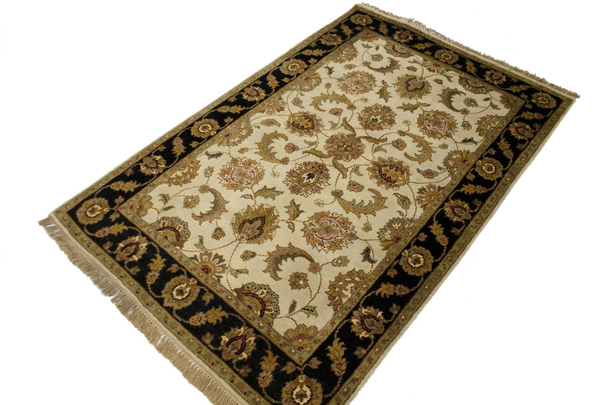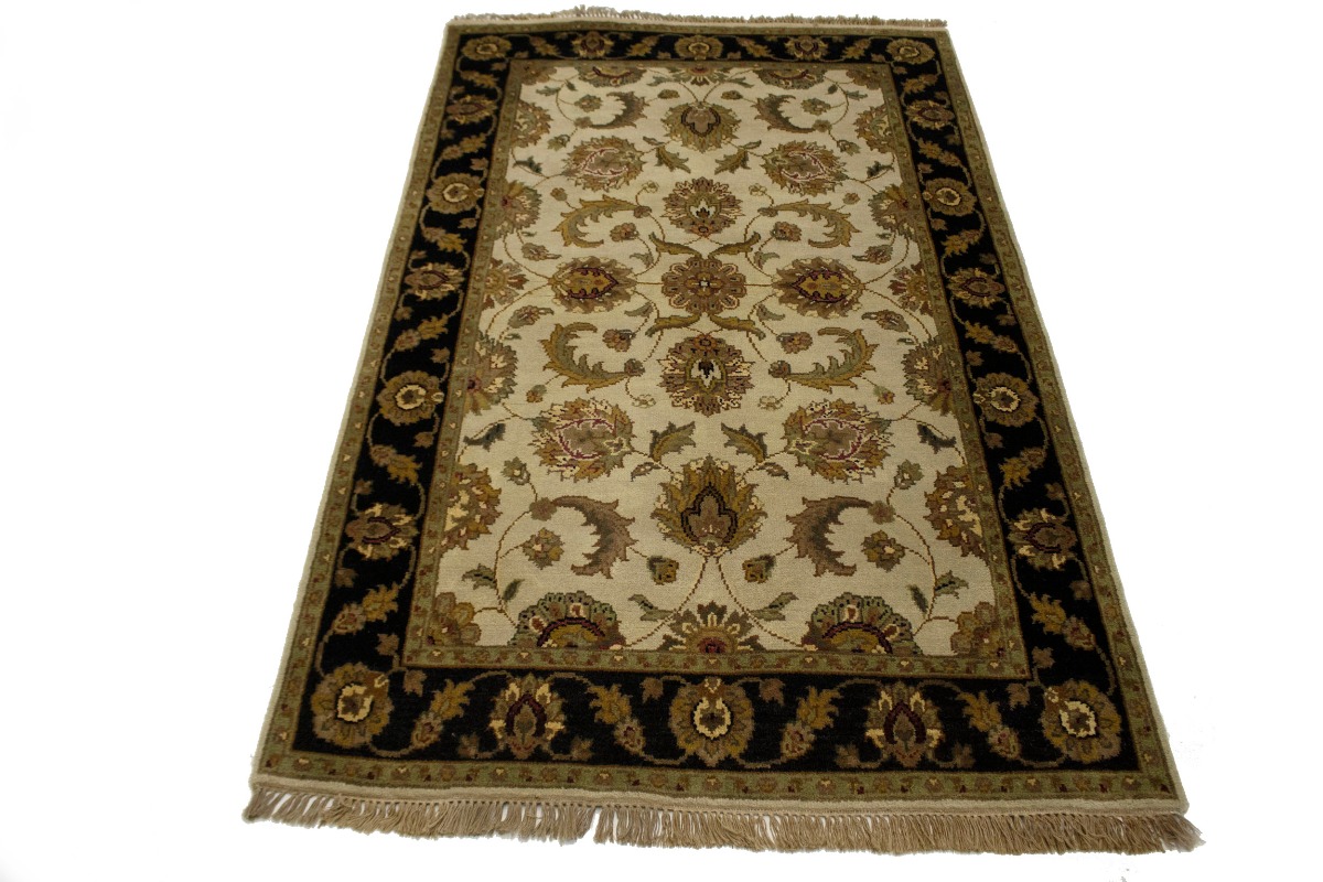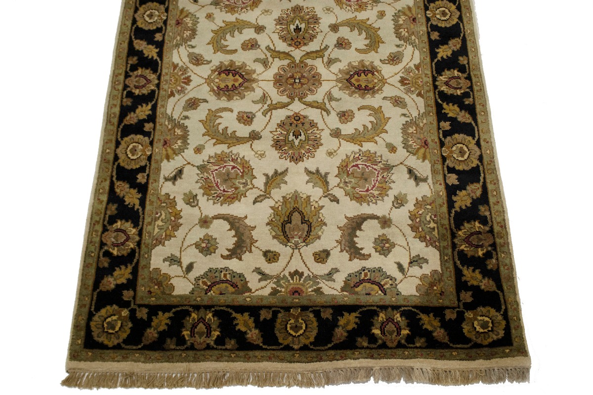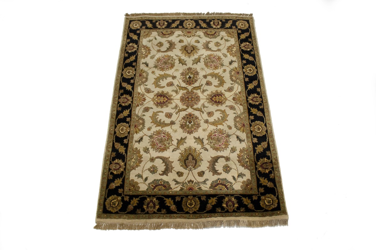 Cream & Black Floral 4X6 Indo-Kashan Oriental Rug