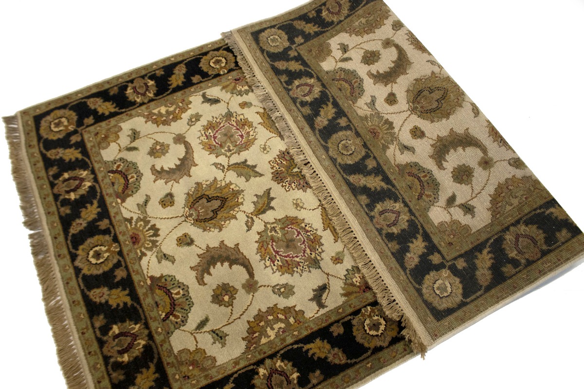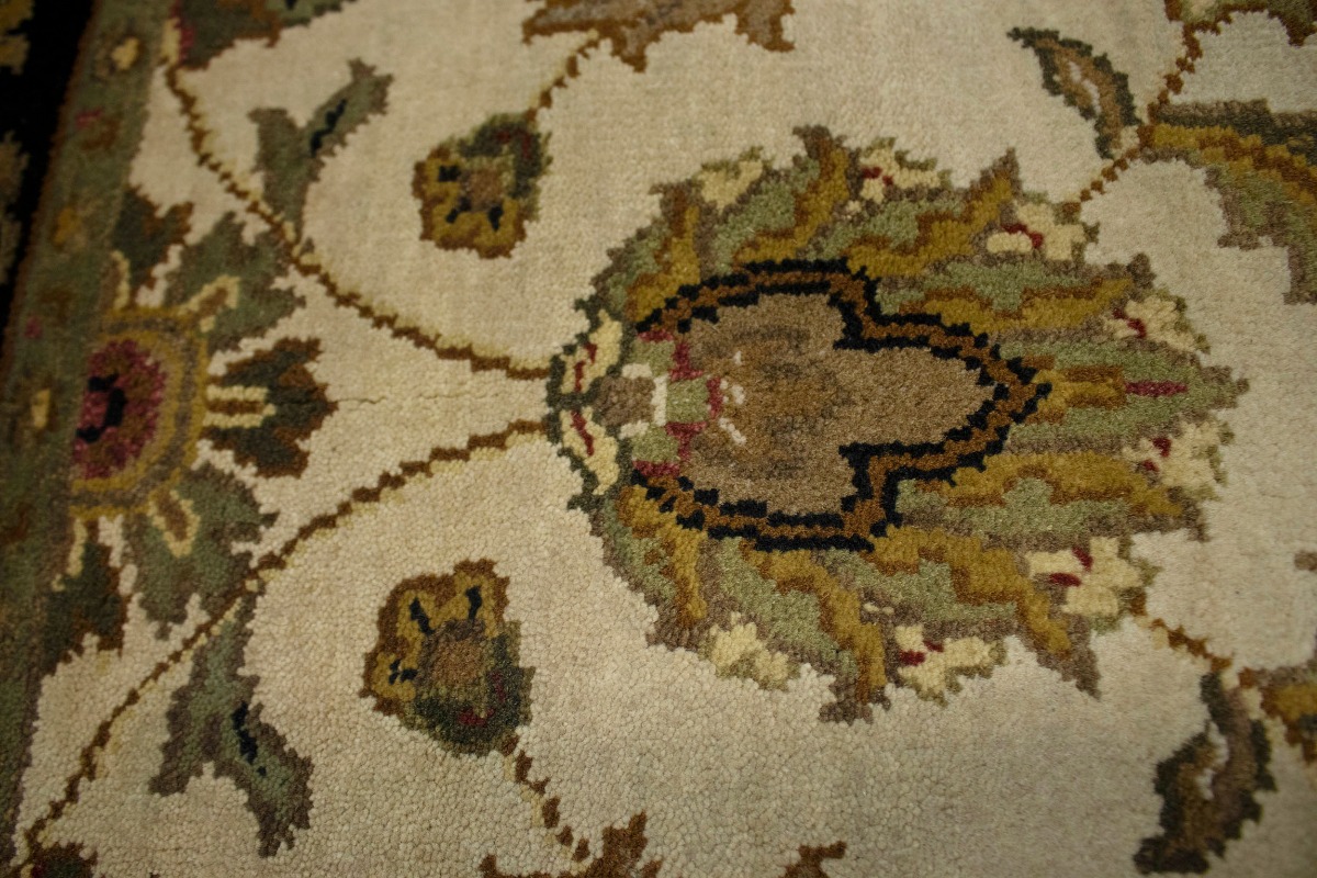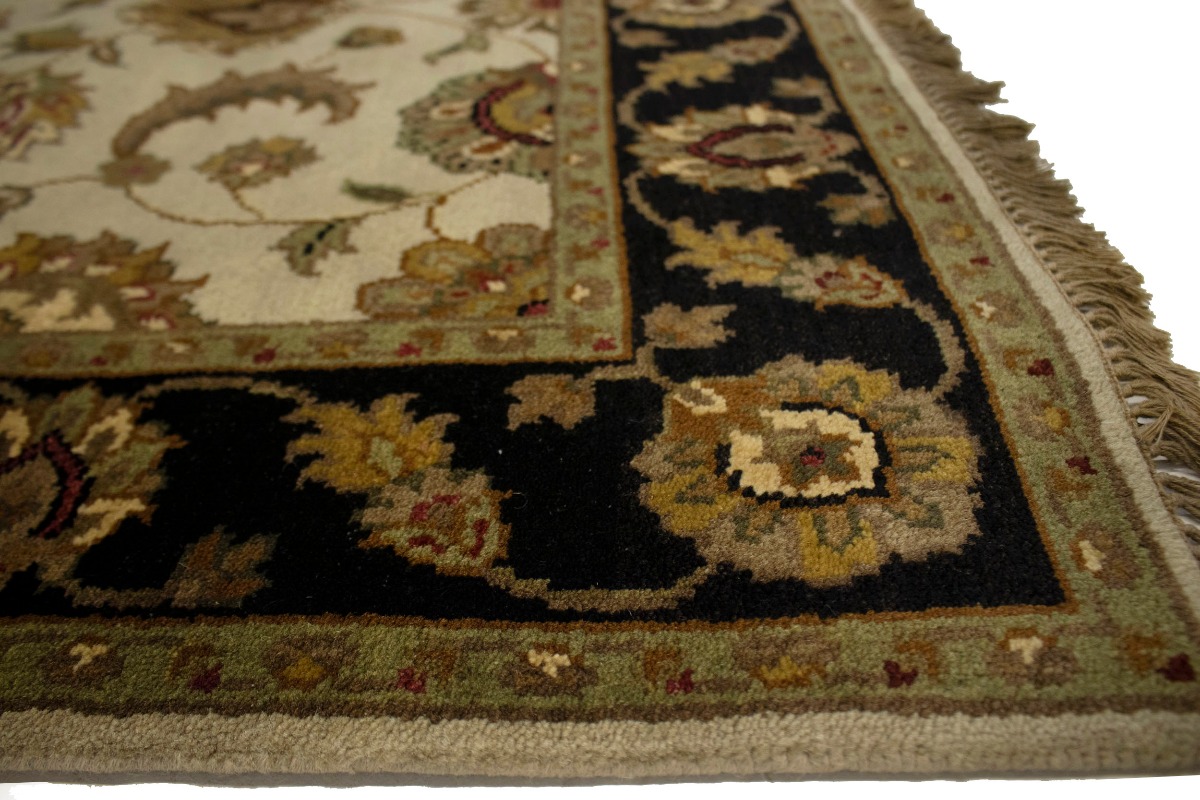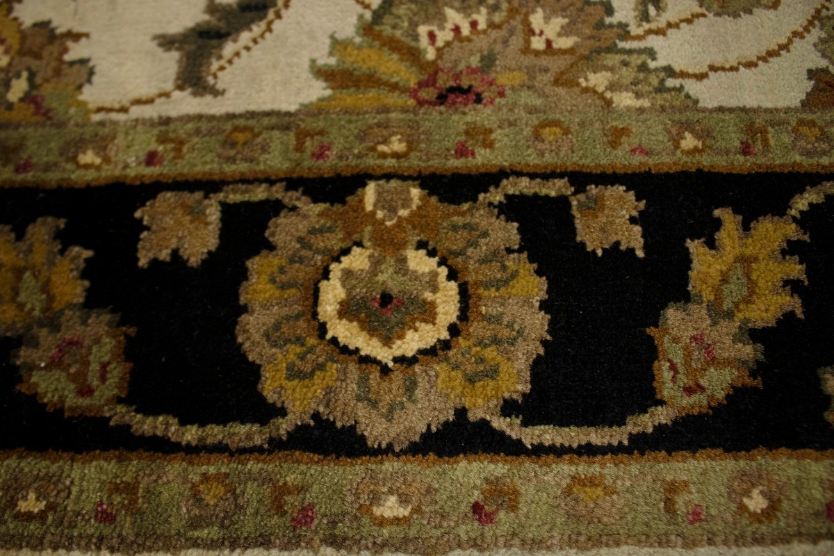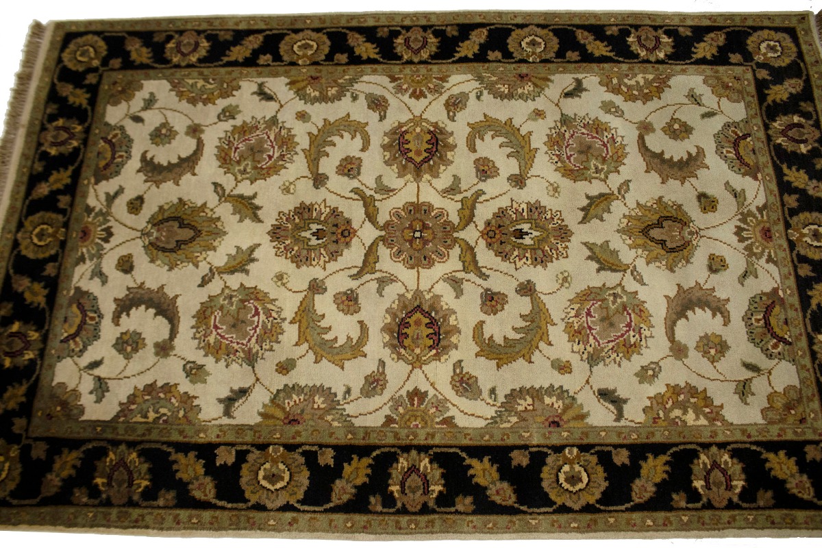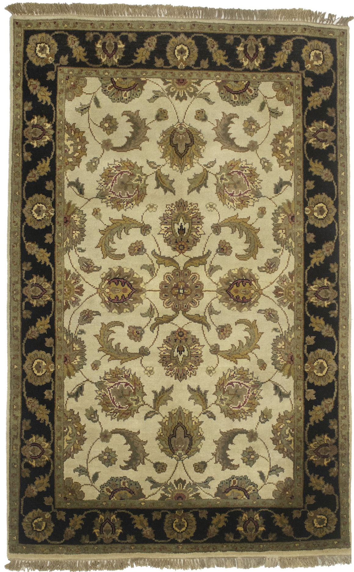 Cream & Black Floral 4X6 Indo-Kashan Oriental Rug
