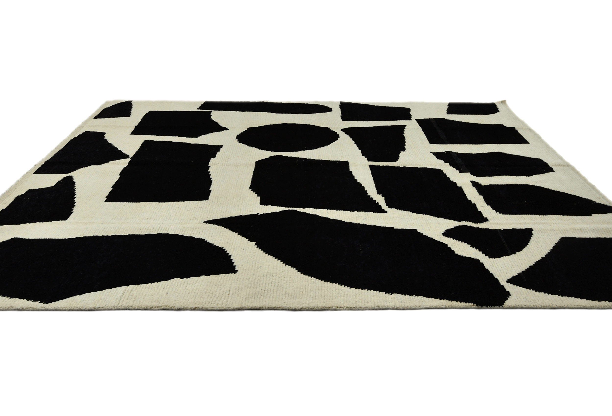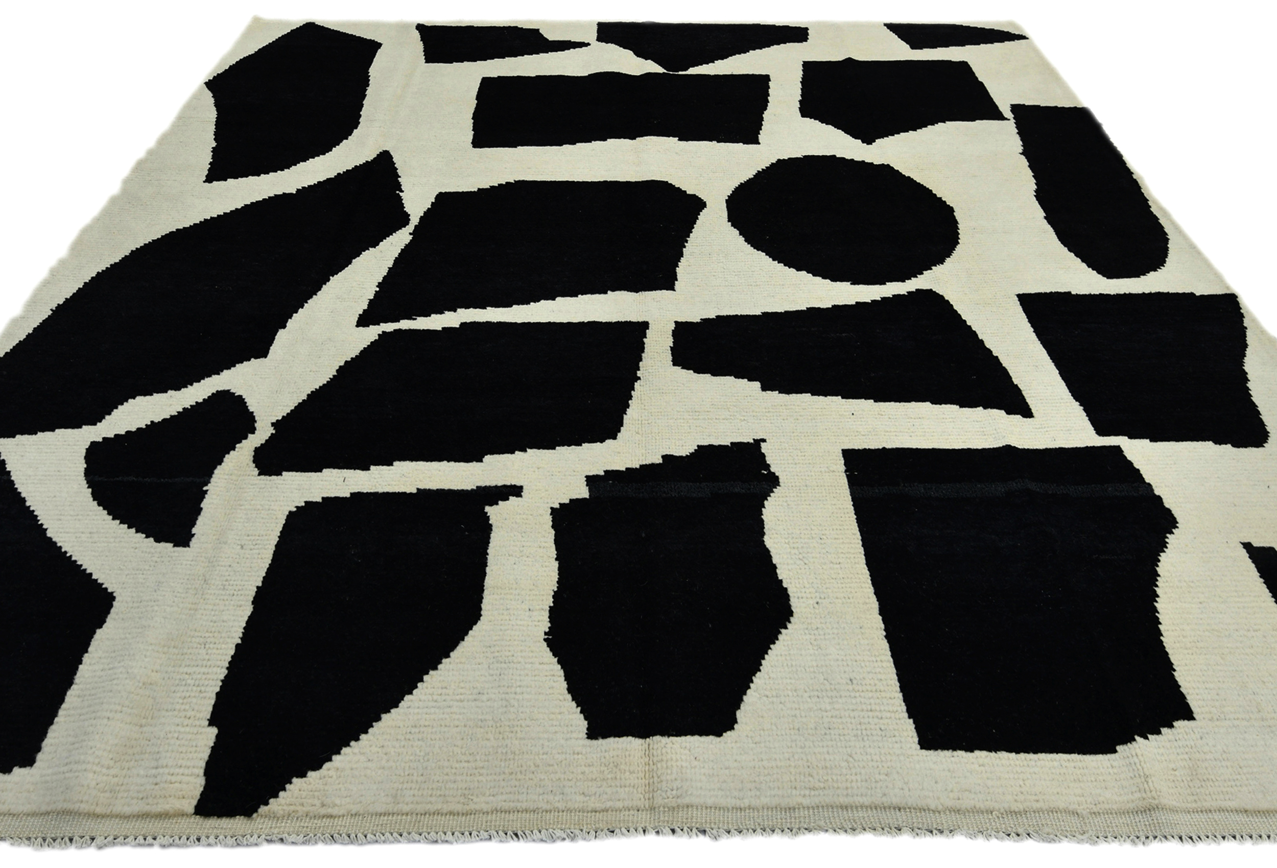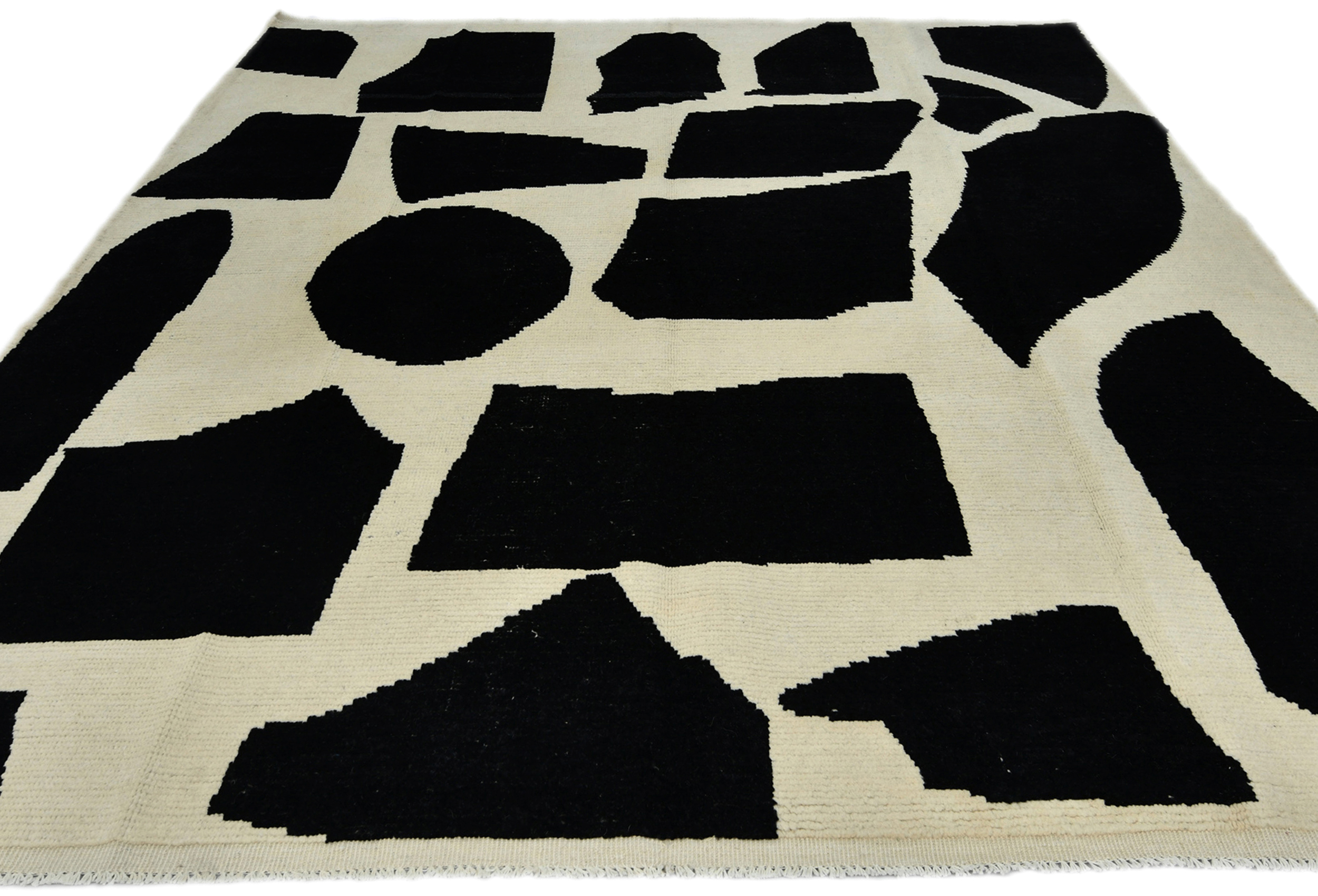 Cream & Black Tribal Modern 8X10 Moroccan Style Oriental Rug