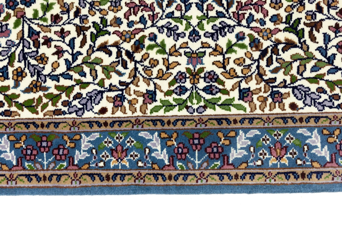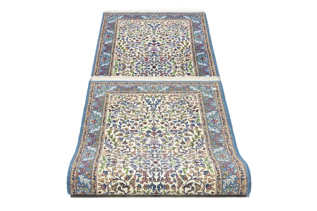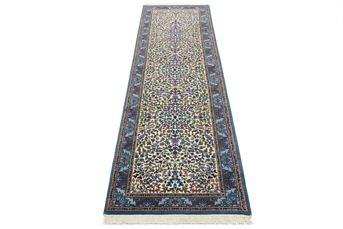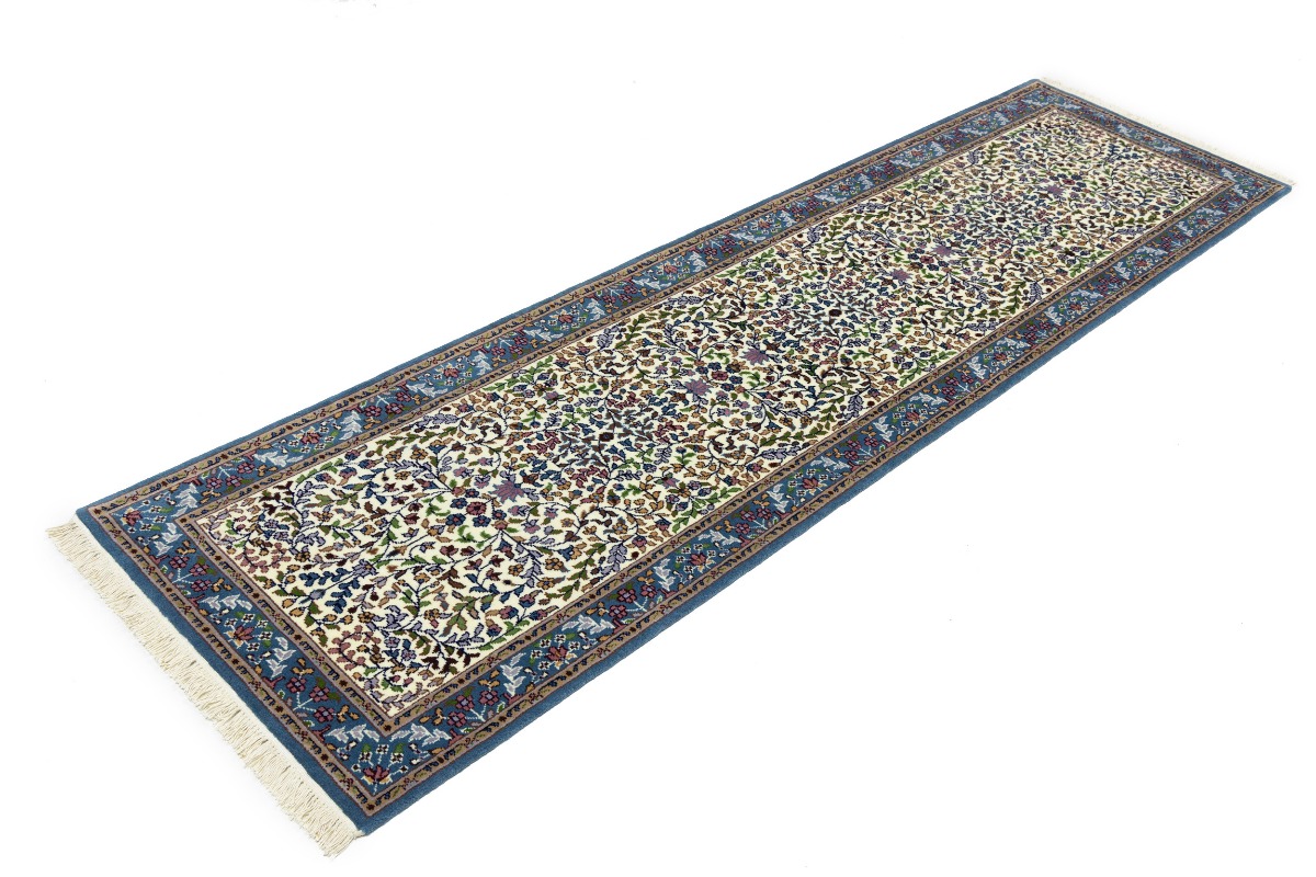 Cream & Blue Floral 3X10 Kirman Oriental Runner Rug