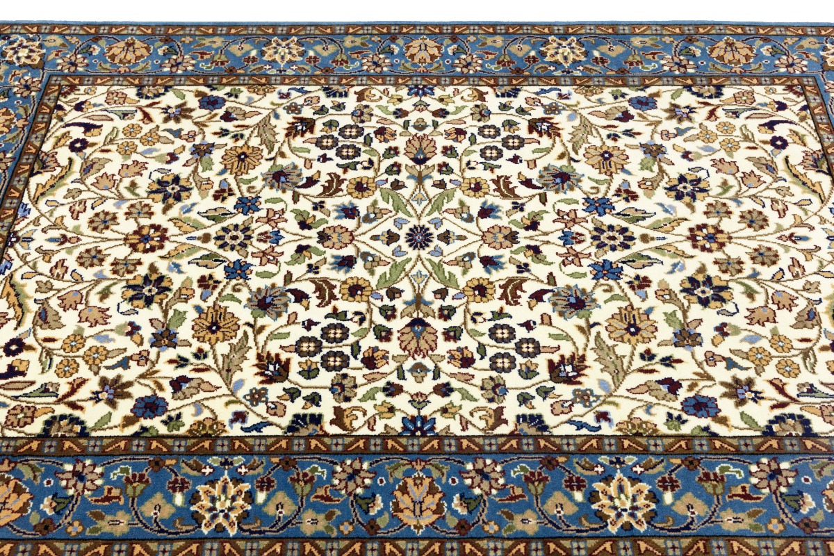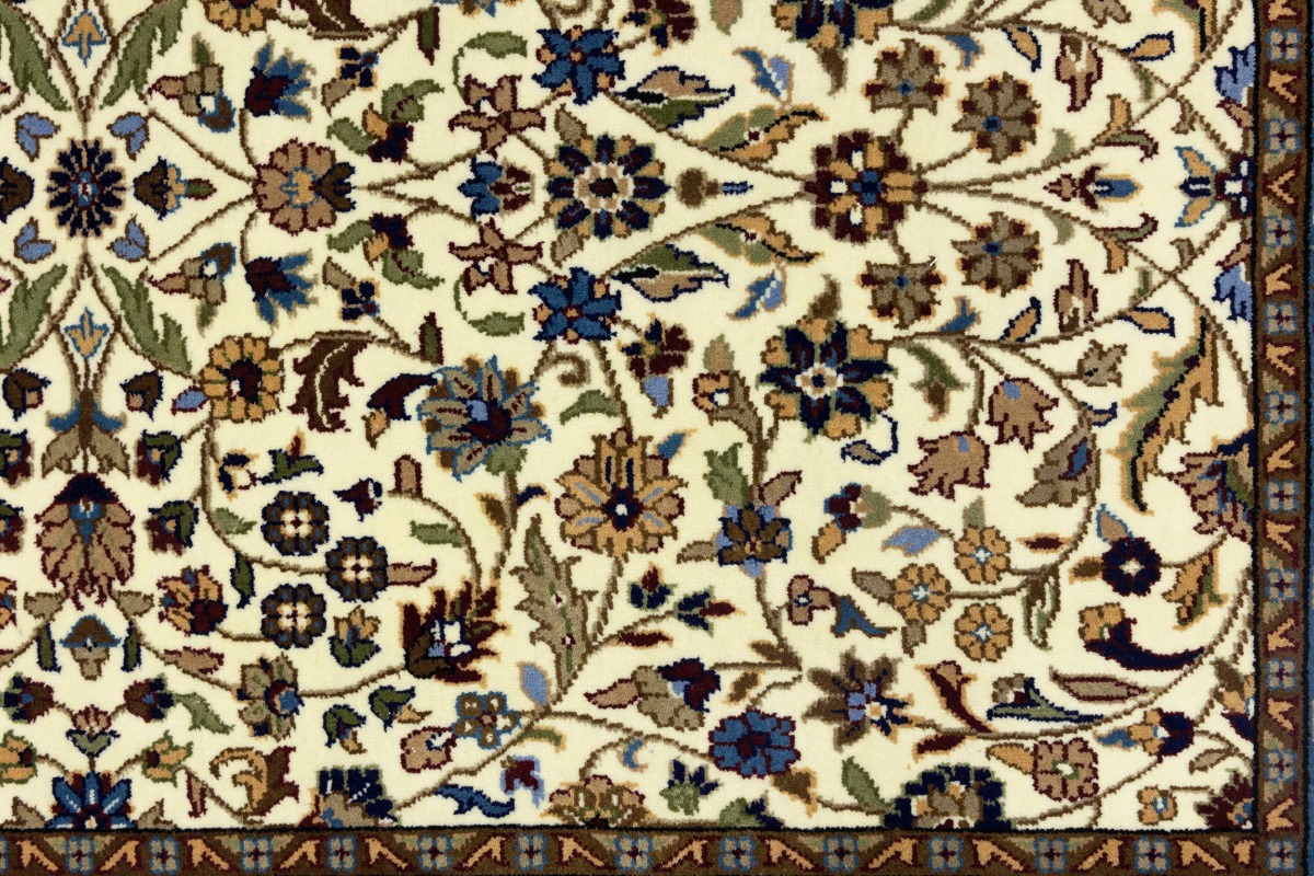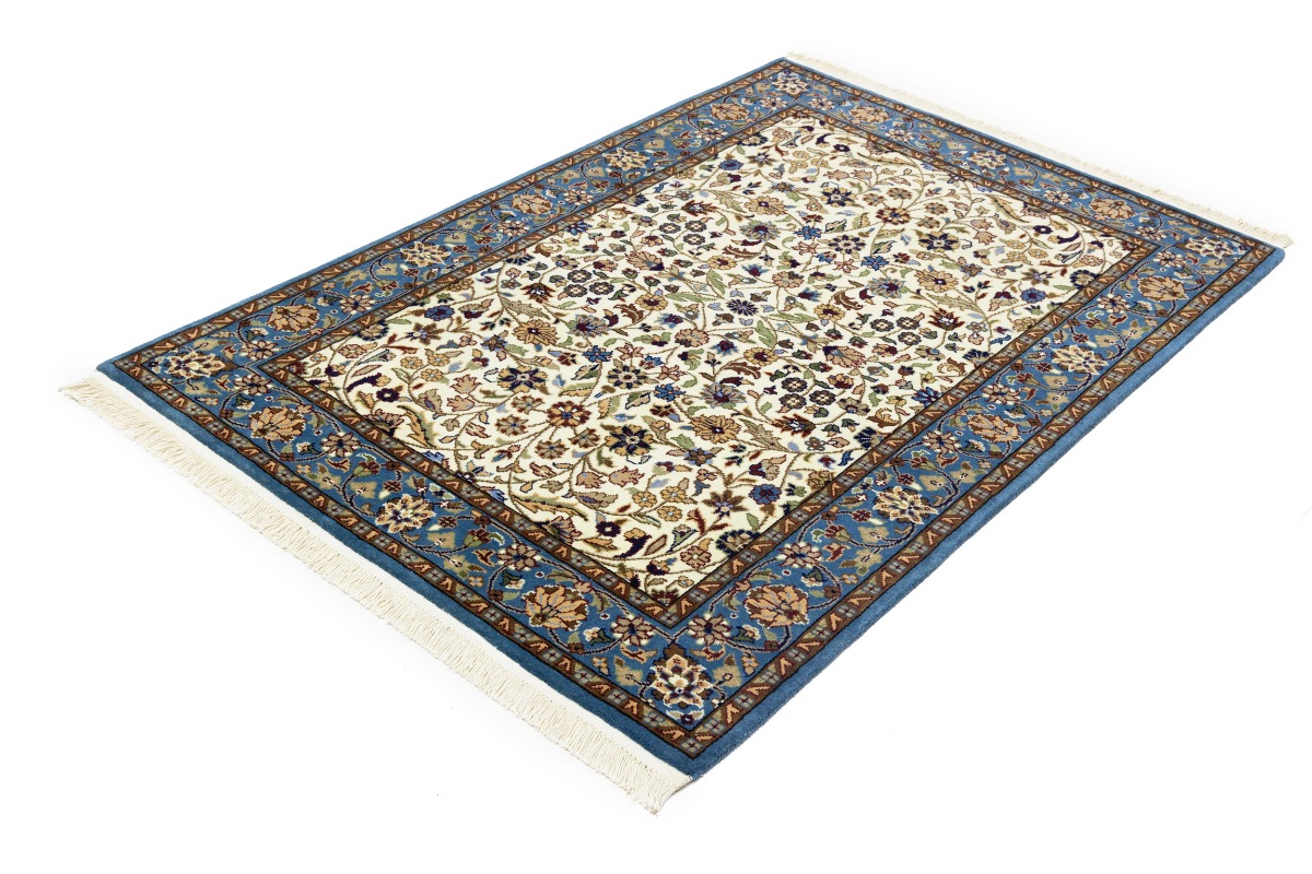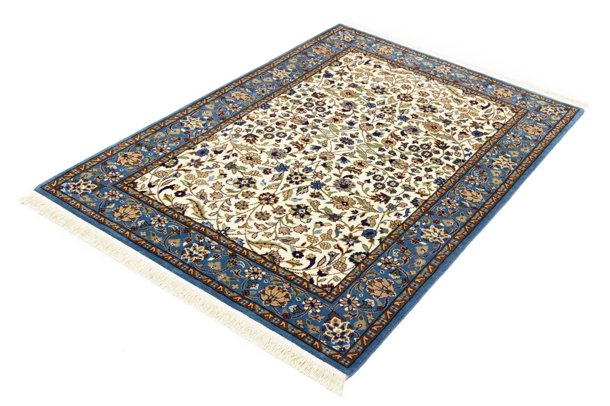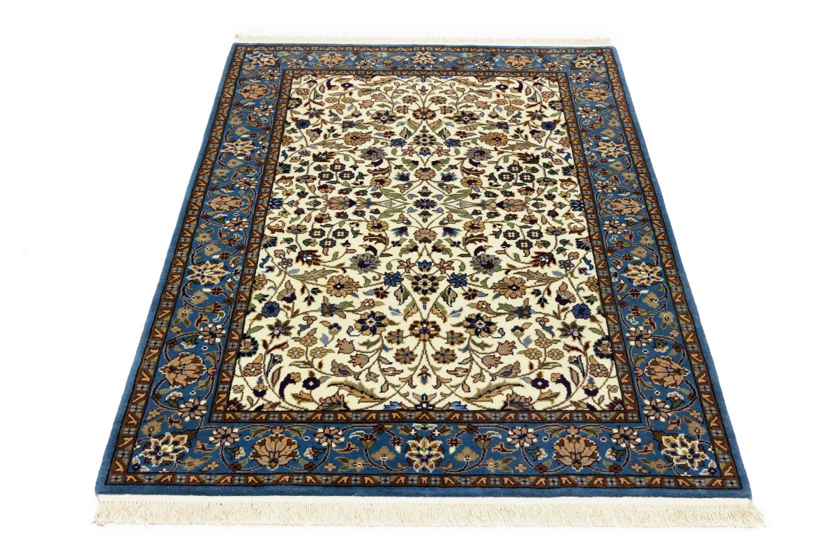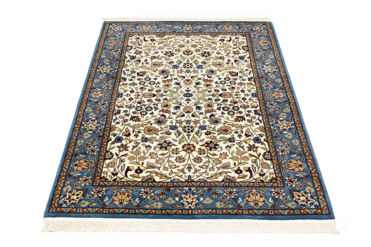 Handmade 4X6 cream Oriental rug made with natural dyes (fine wool pile and cotton foundation), superior knot count, and appealing ancient designs. This Oriental rug never will go out of style and would be among your most valuable treasures.