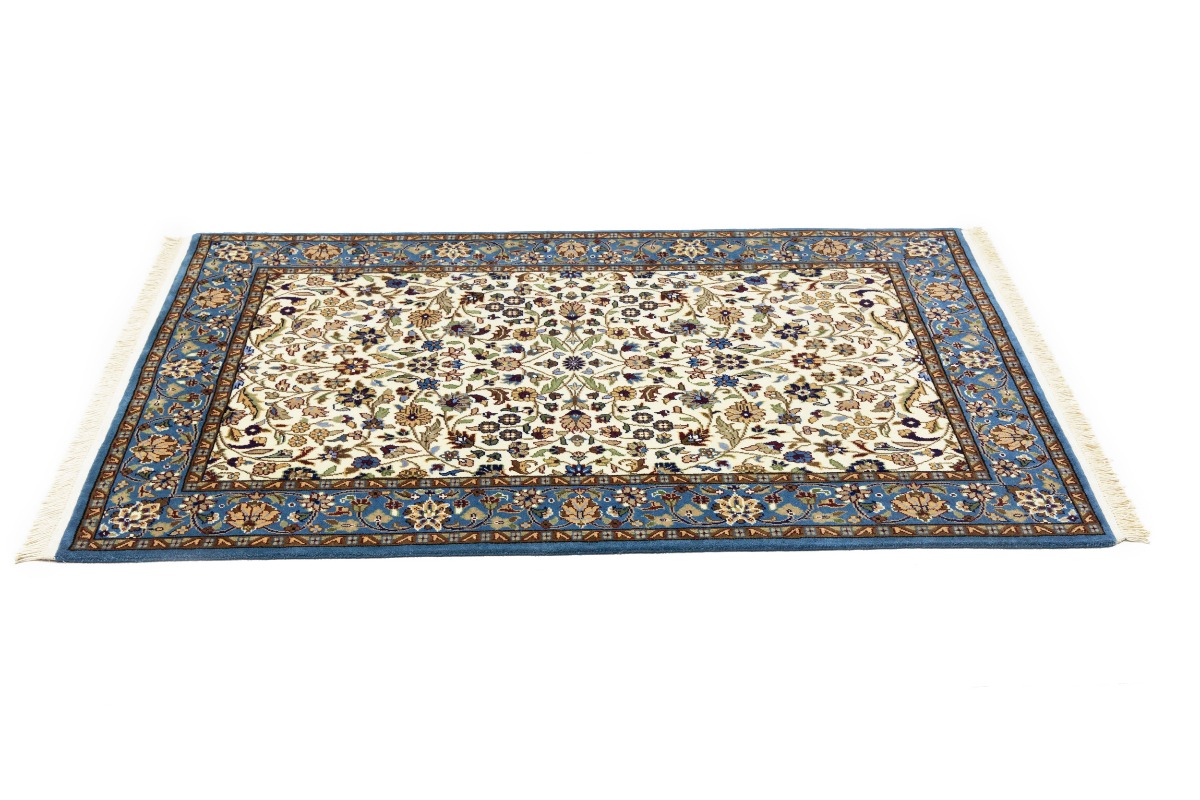 Cream Blue Floral 4X6 Kirman Oriental Rug