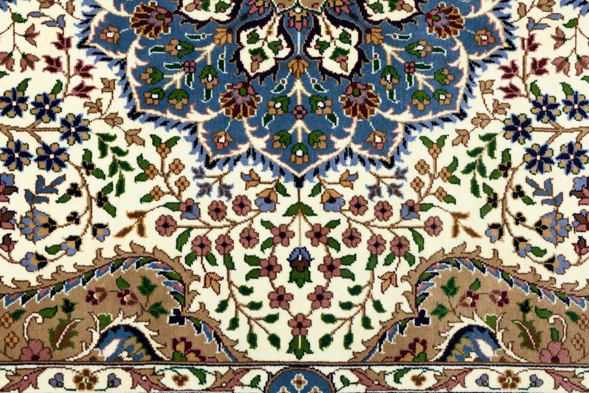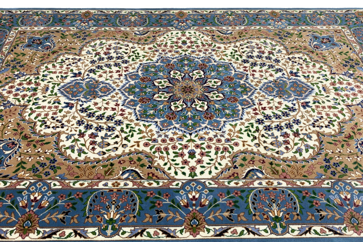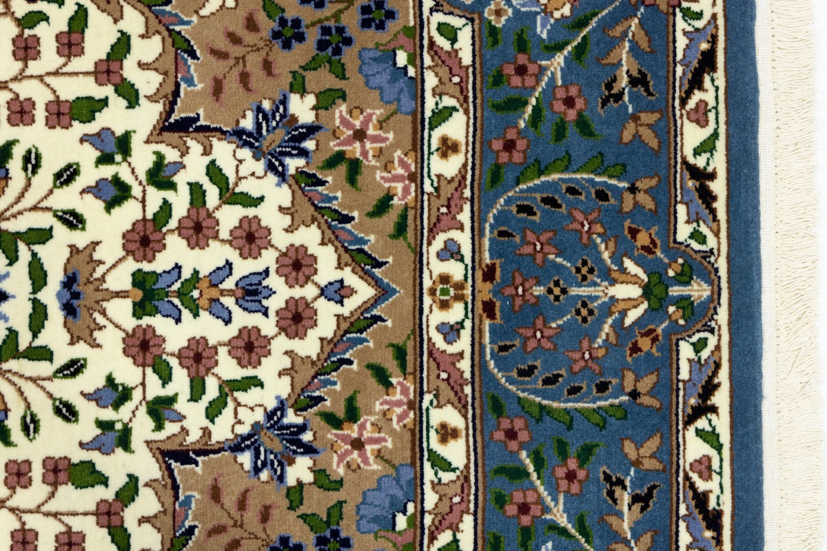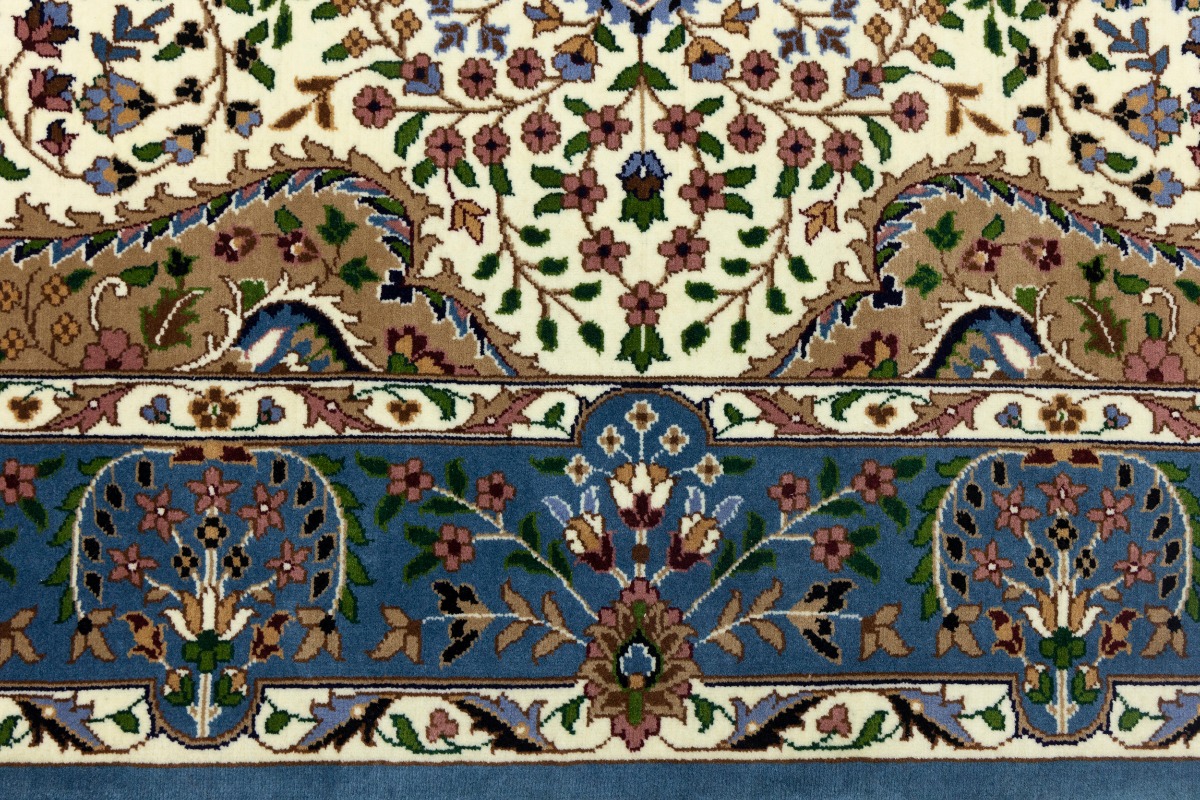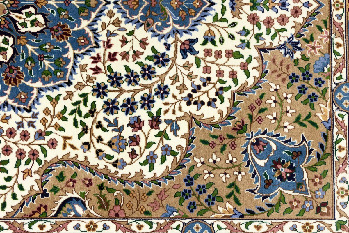 Handmade 6'4X9'1 cream Oriental rug made with natural dyes (fine wool pile and cotton foundation), superior knot count, and appealing ancient designs. This Oriental rug never will go out of style and would be among your most valuable treasures.