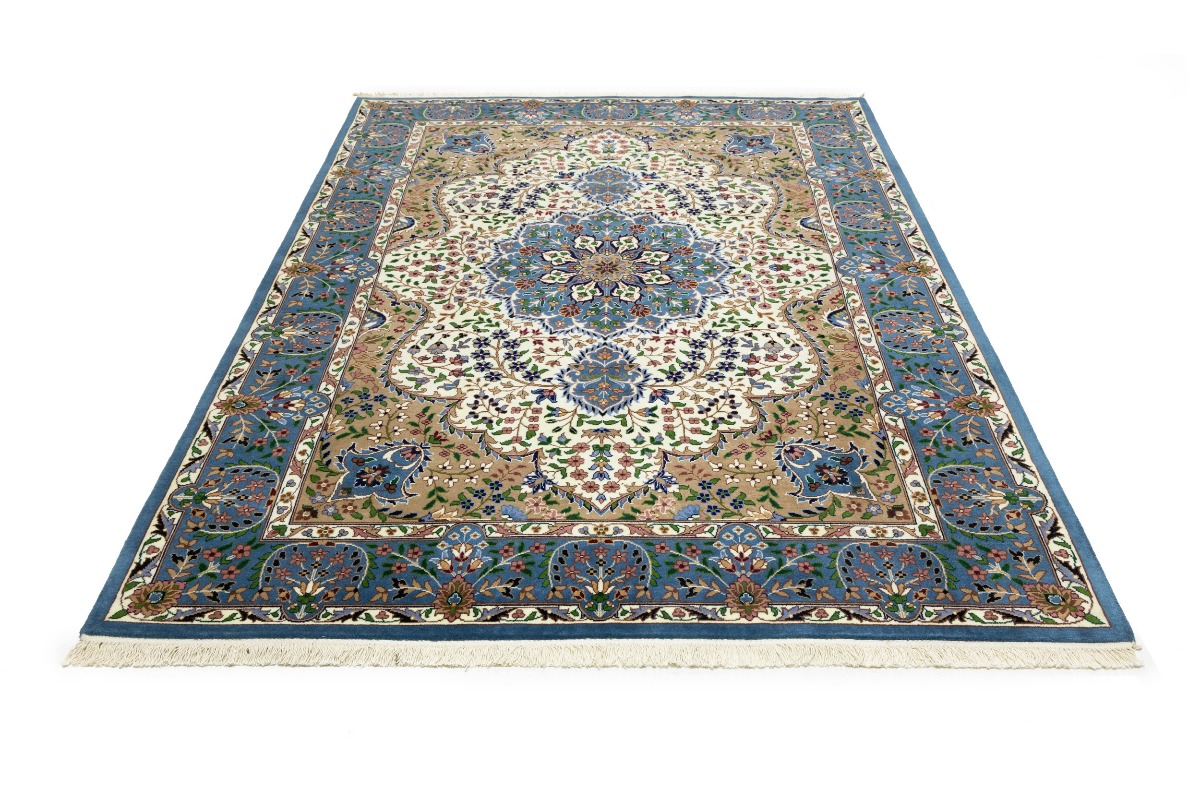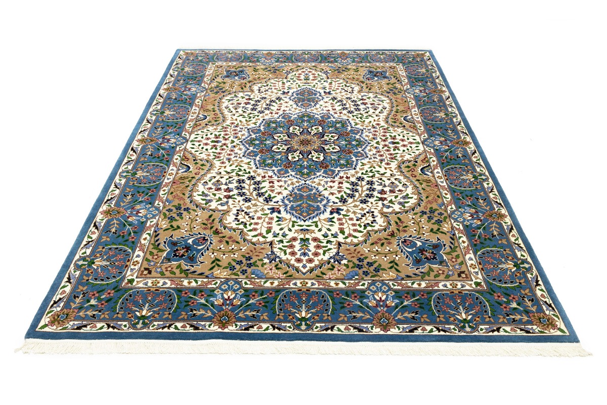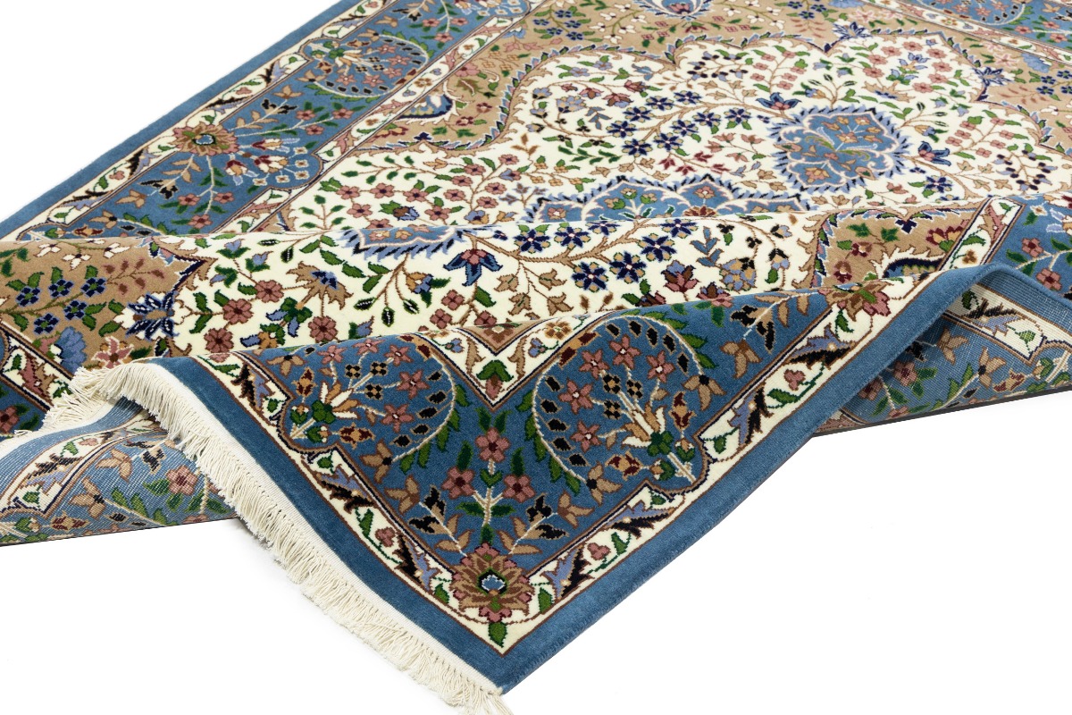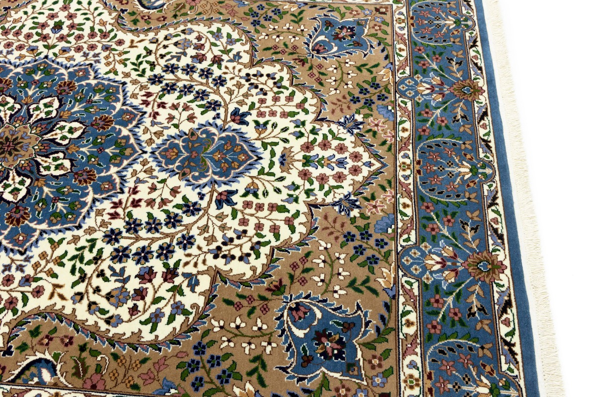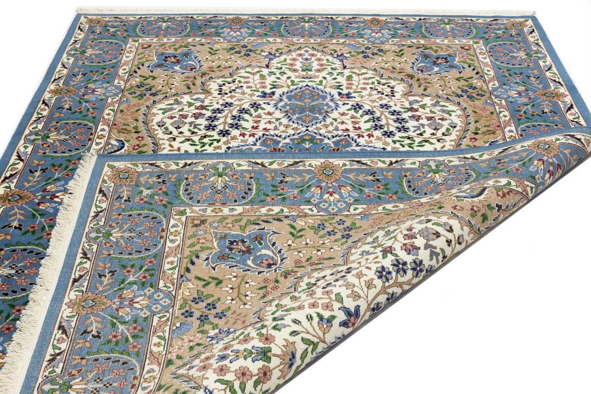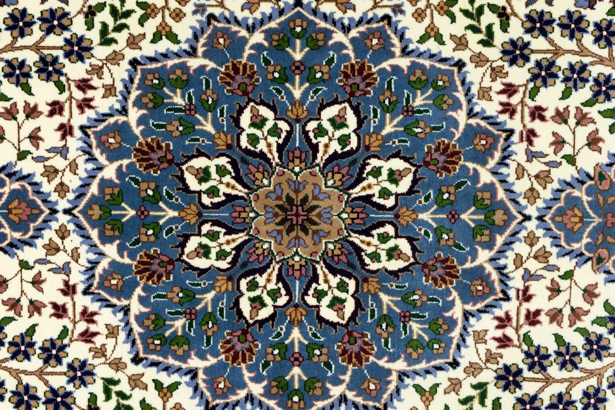 Handmade 6'4X9'1 cream Oriental rug made with natural dyes (fine wool pile and cotton foundation), superior knot count, and appealing ancient designs. This Oriental rug never will go out of style and would be among your most valuable treasures.