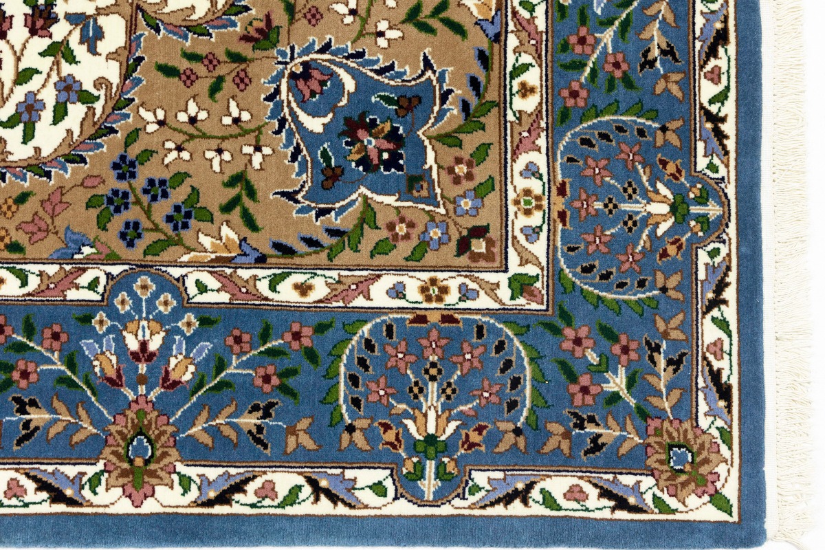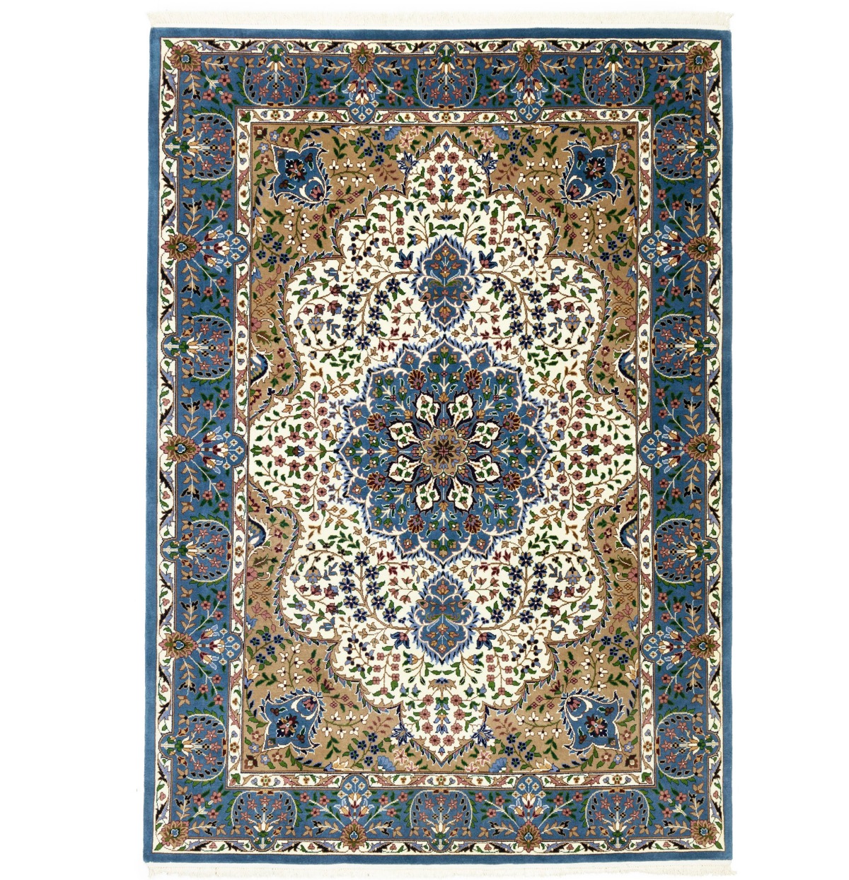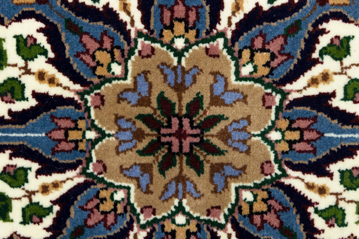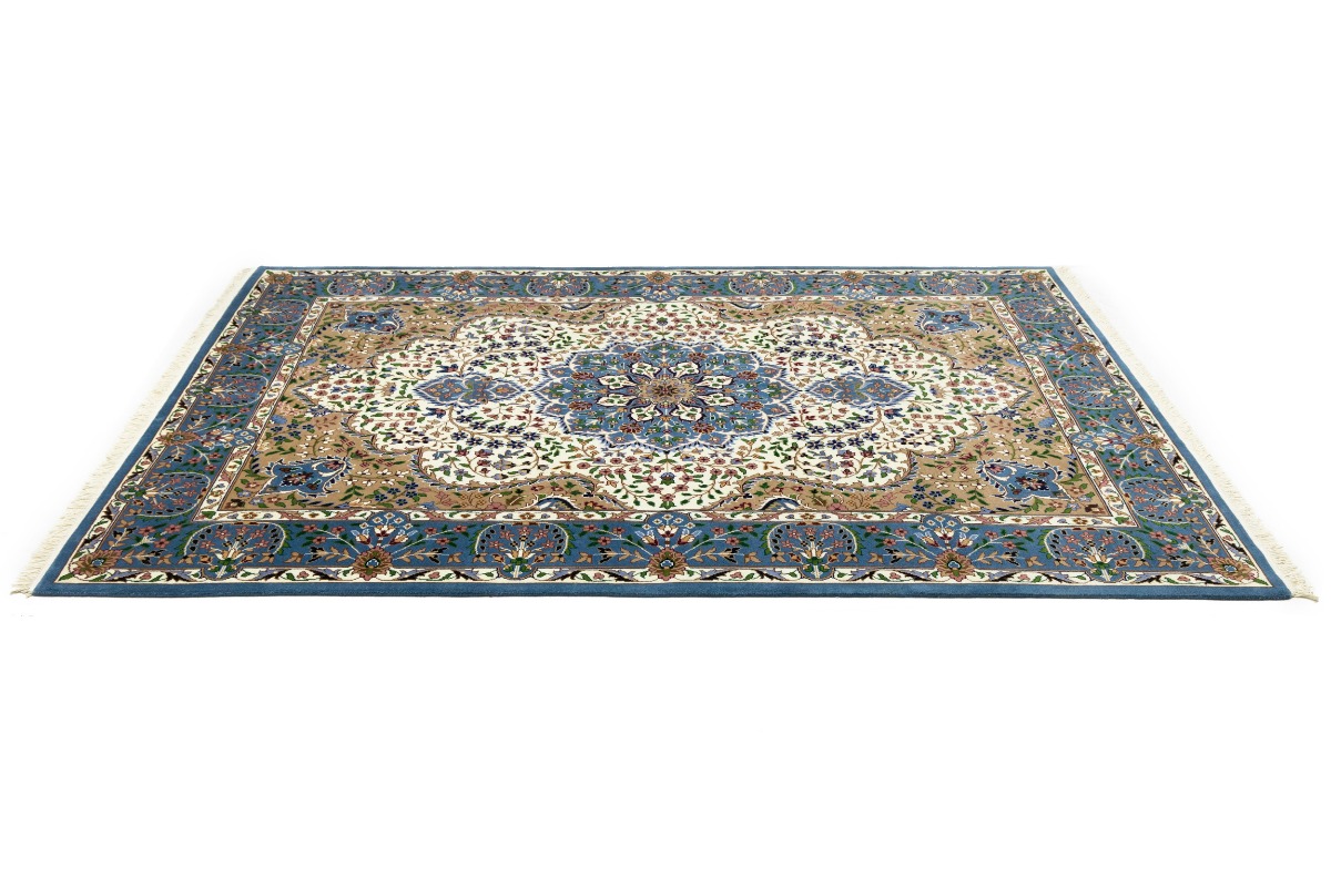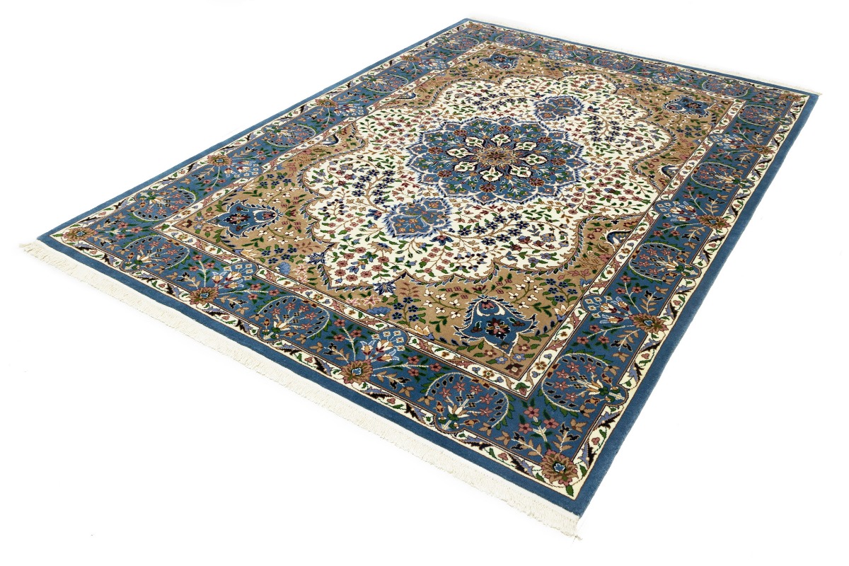 Handmade 6'4X9'1 cream Oriental rug made with natural dyes (fine wool pile and cotton foundation), superior knot count, and appealing ancient designs. This Oriental rug never will go out of style and would be among your most valuable treasures.