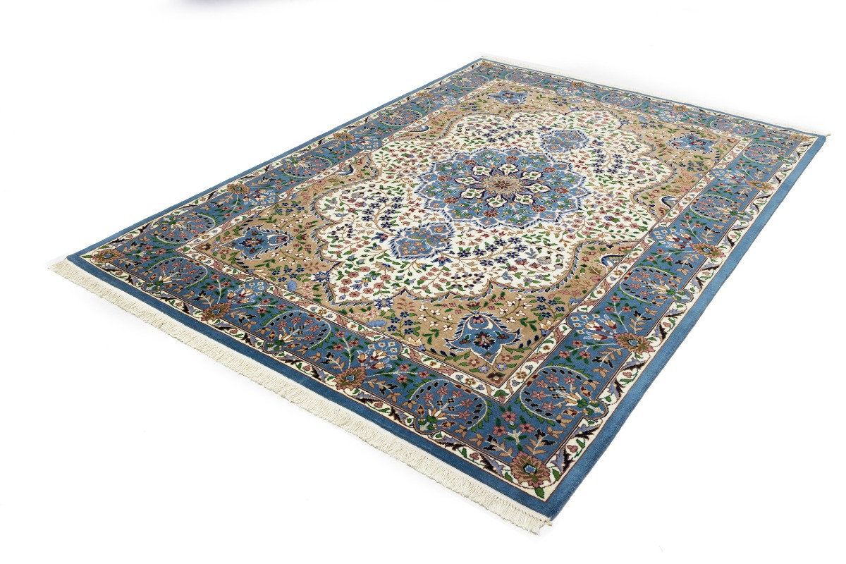 Cream & Blue Floral 6'4X9'1 Kirman Oriental Rug